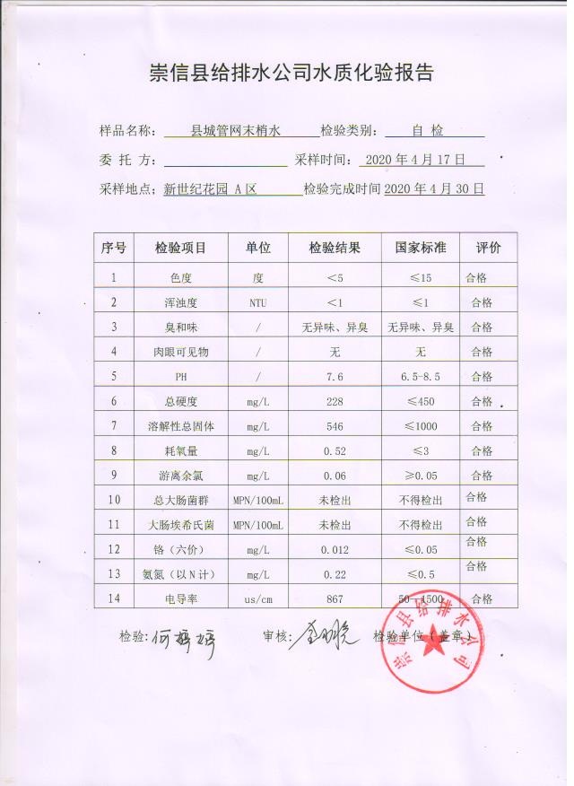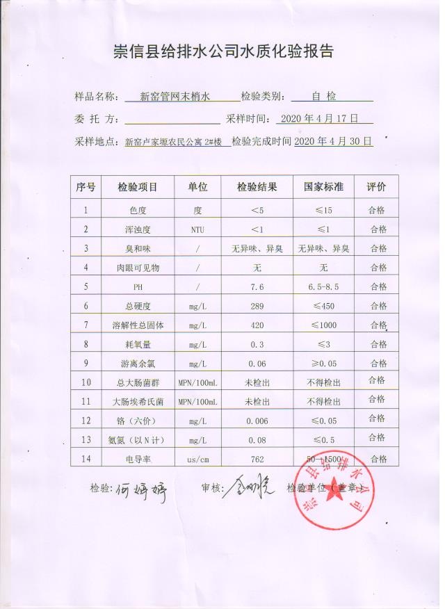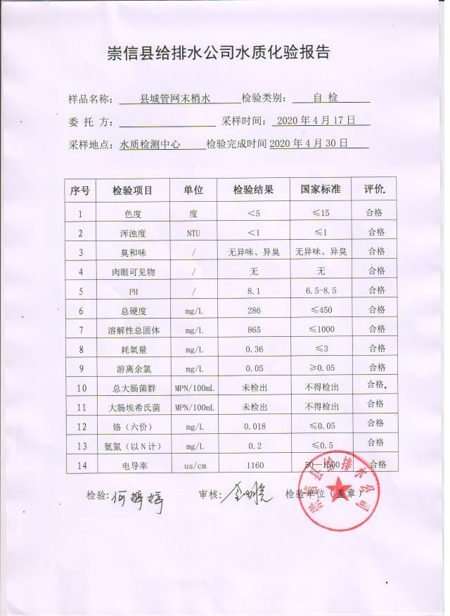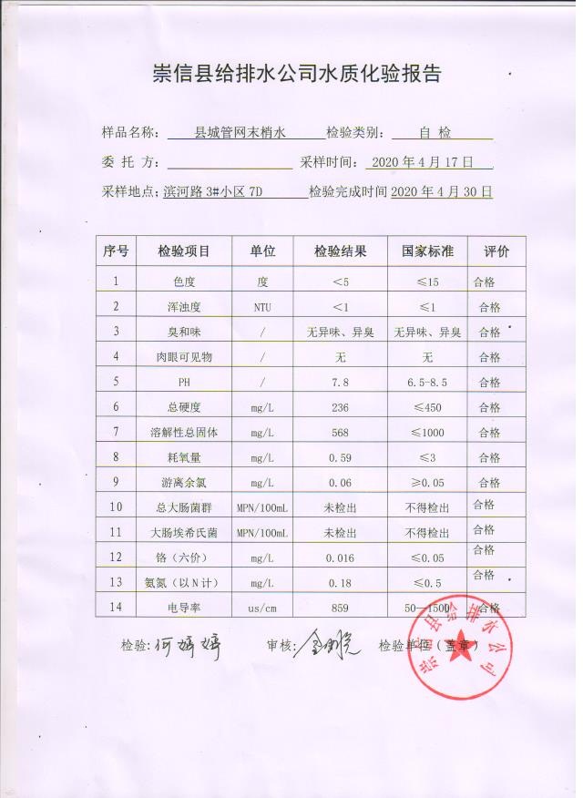 2020年4月份水质化验报告单 发文日期:2020-05-19 00:00 来源:崇信县住房和城乡建设局 作者:崇信住建局 编辑:崇信住建局 01 02 03 04 05 扫一扫在手机打开当前页 上一篇: 2020年5月水质化验报告 下一篇: 2020年3月份水质化验报告单