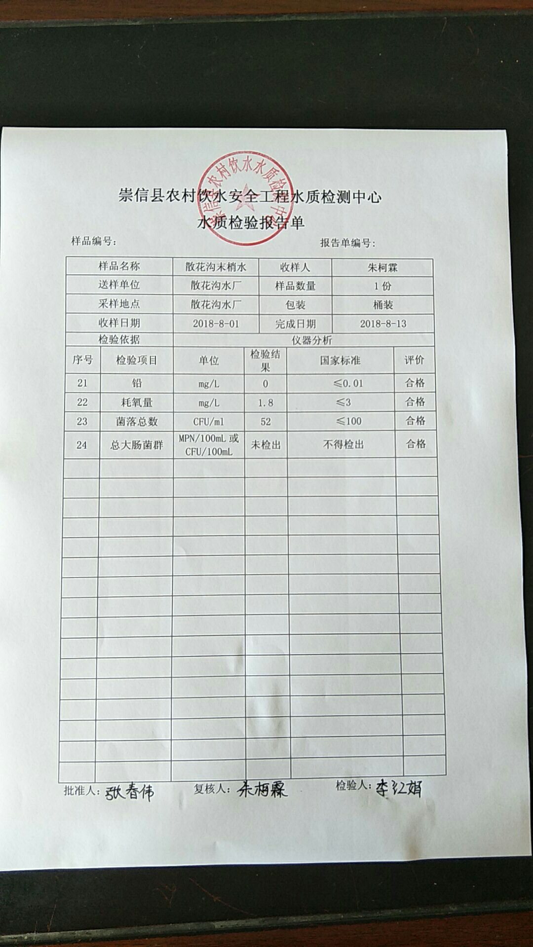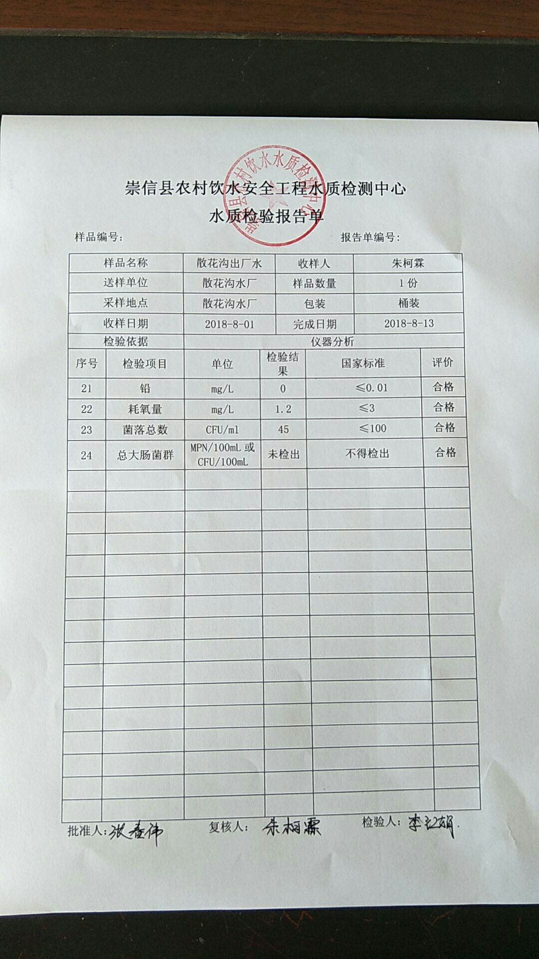 2018年8月份散花沟水厂水质检测报告单 发文日期:2018-08-29 10:57 来源:崇信县水务局 作者:崇信水务局 编辑:崇信水务局 3BA62EF87CE8941DBC8D9F197C5EDC64 368B7BE9F7152580591E71FB8E7F9012 05F07C980CCE6B2374F1D934A791ED26 87F50988C105E27D7B6254F867235E48 C28AC6F212E83F90D28FB440FAF1CF39 C0C28BF5E1F0230FB06EAFB08275FD99 扫一扫在手机打开当前页 上一篇: 2018年8月水质化验报告 下一篇: 2018年8月份杜家沟水厂水质检测报告单