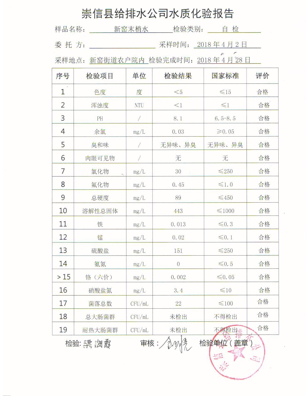 2018年5月份水质化验报告 发文日期:2018-05-30 15:19 来源:崇信县住房和城乡建设局 作者:崇信住建局 编辑:崇信住建局 01 02 03 04 05 06 扫一扫在手机打开当前页 上一篇: 崇信县工信局执法检查人员名录库 下一篇: 2018年4月份水质化验报告