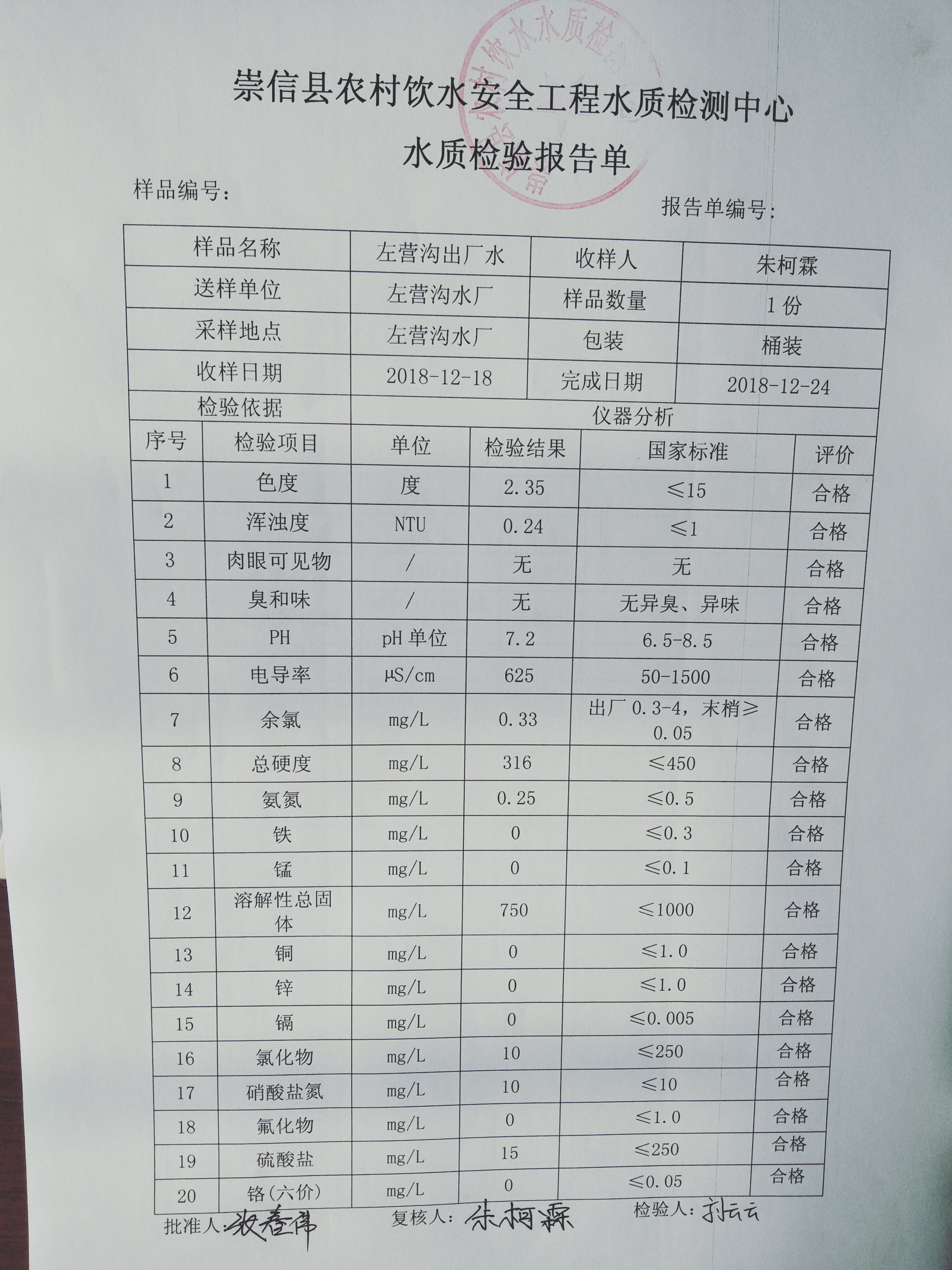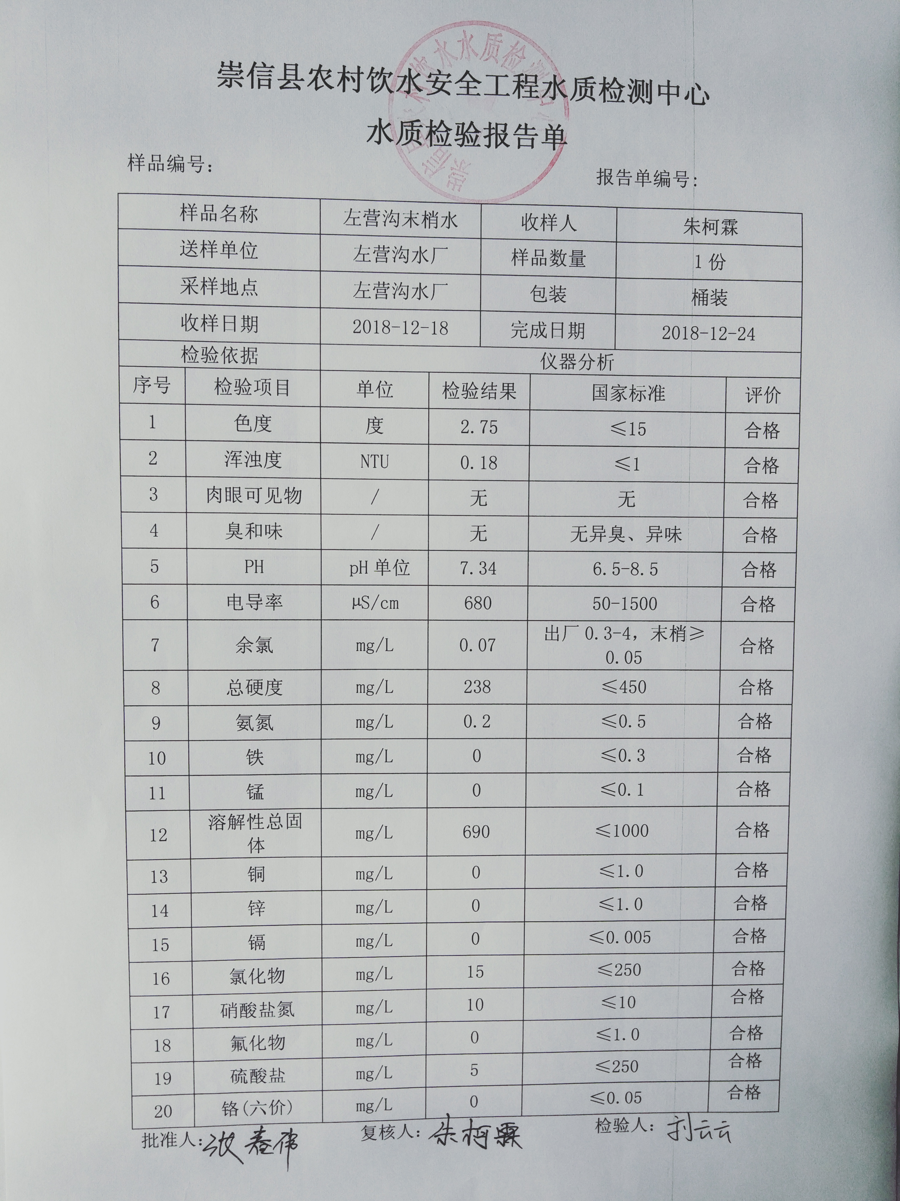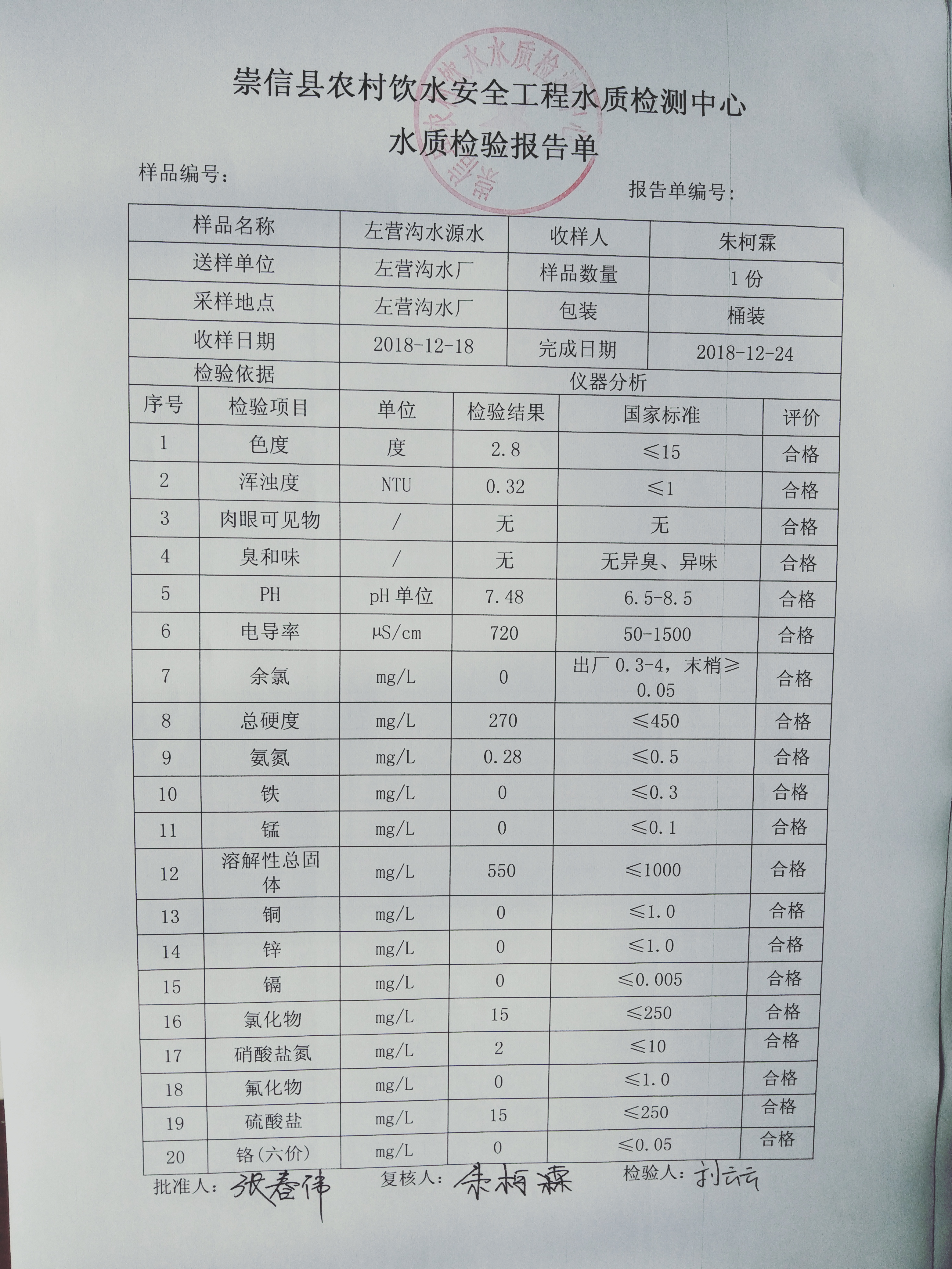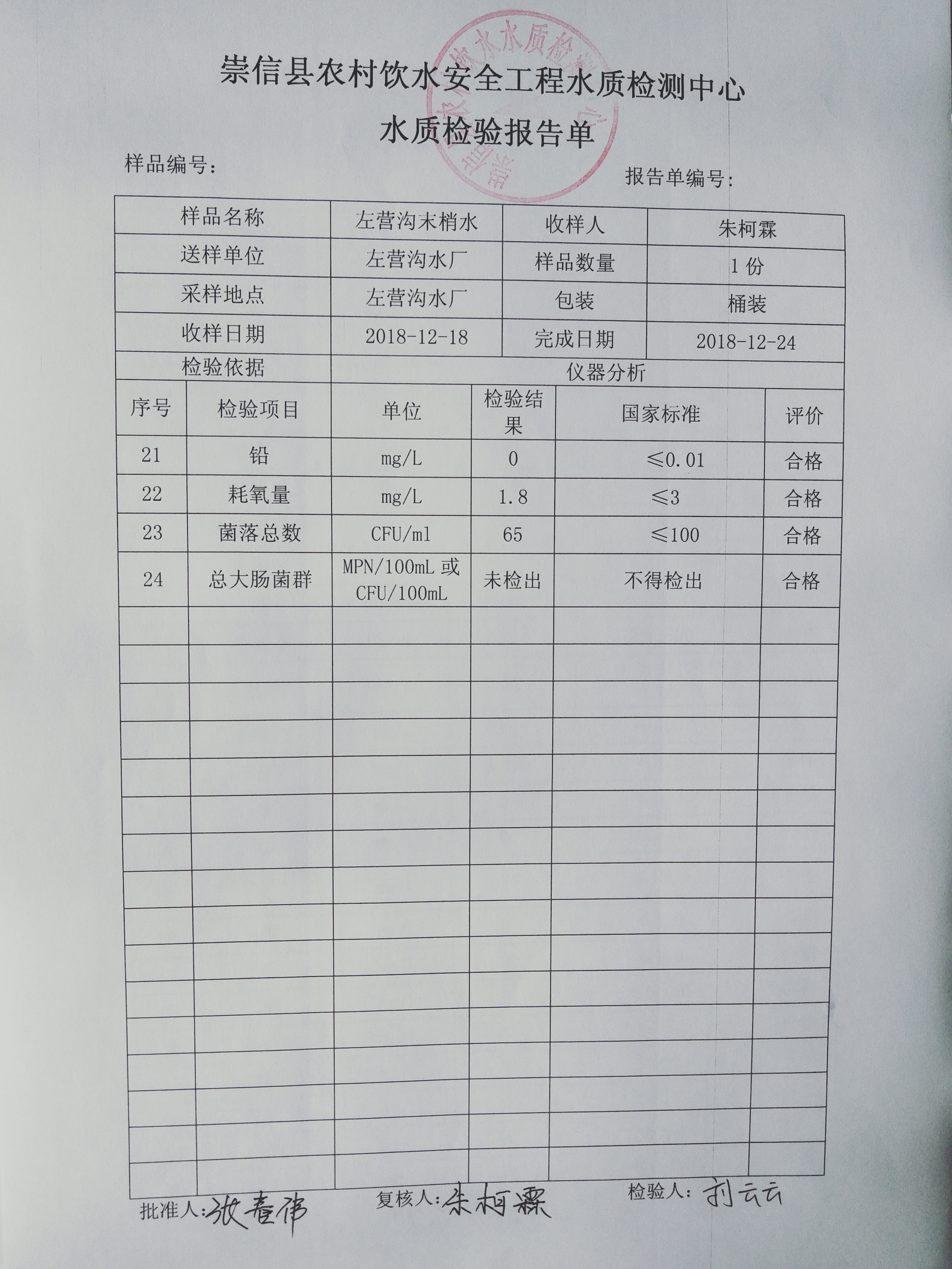 2018年左营沟水厂12月份水质检测报告单 发文日期:2018-12-27 16:36 来源:崇信县水务局 作者:崇信水务局 编辑:崇信水务局 IMG20181224114342 IMG20181224114351 IMG20181224114407 IMG20181224114423 IMG20181224114433 IMG20181224114441 扫一扫在手机打开当前页 上一篇: 2018年12月份散花沟水厂水质检测报告单 下一篇: 2018年杜家沟水厂12月份水质检测报告单