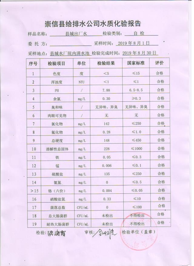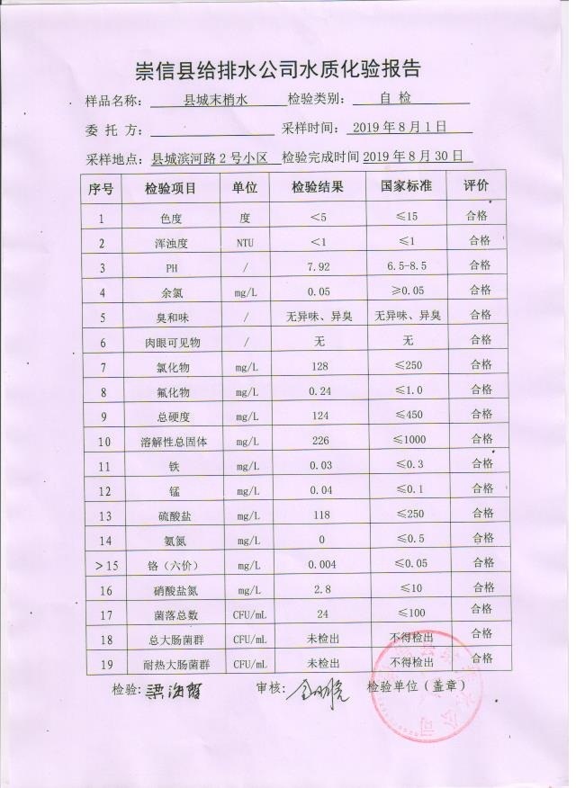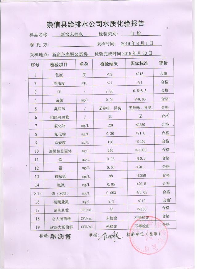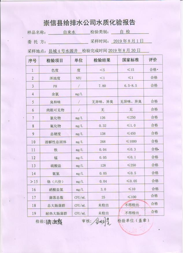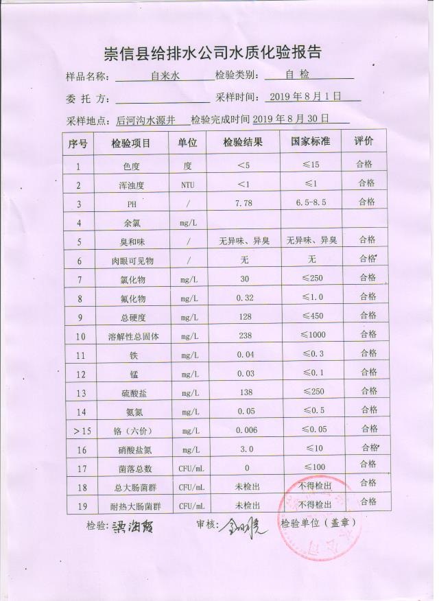 2019年8月份水质化验报告单 发文日期:2019-09-18 00:00 来源:崇信县住房和城乡建设局 作者:崇信住建局 编辑:崇信住建局 1号井 2号井 3号井 01 02 03 04 05 06 扫一扫在手机打开当前页 上一篇: 2019年9月份水质化验报告单 下一篇: 崇信县市场监督管理局双随机抽查事项清单