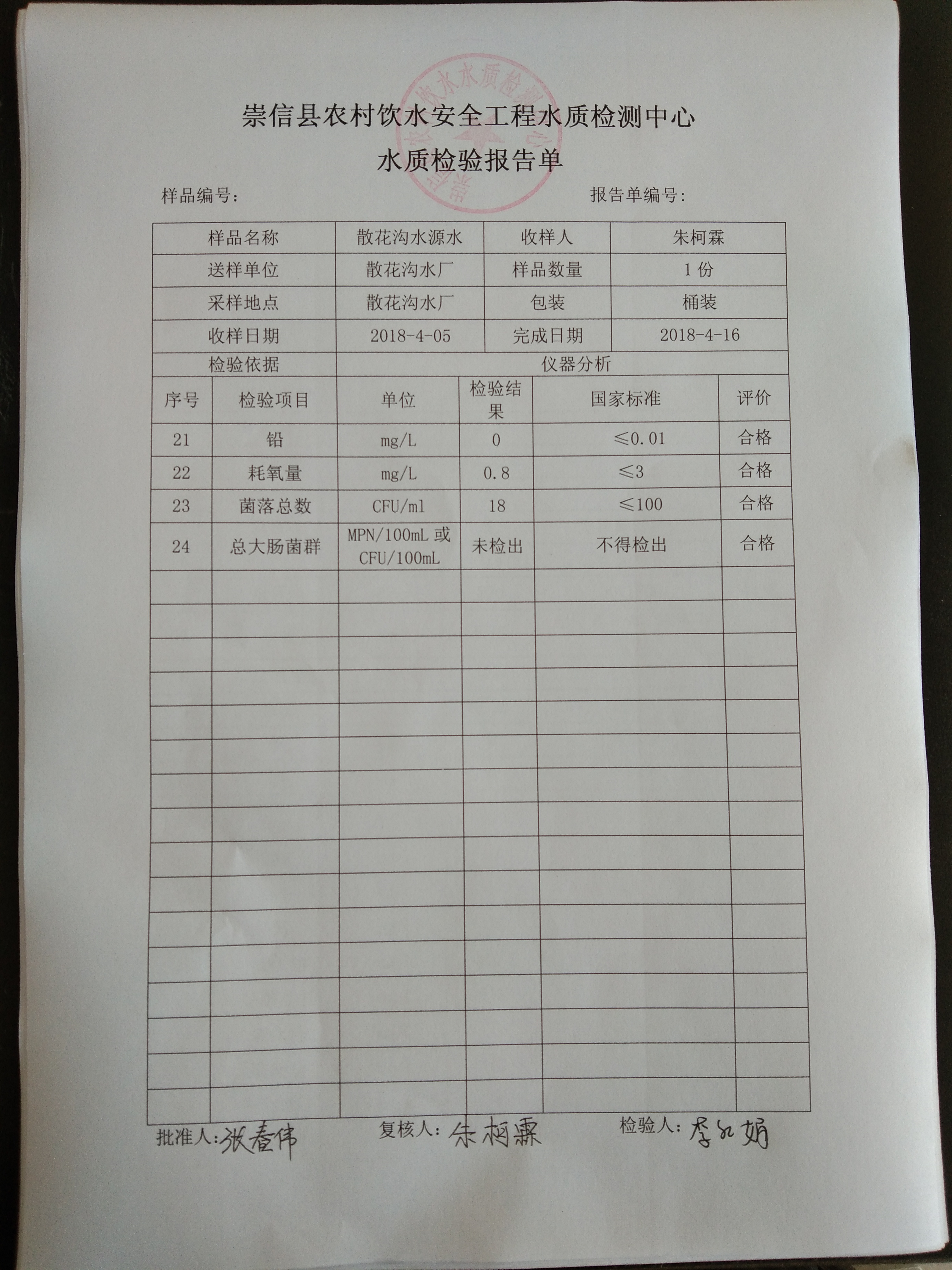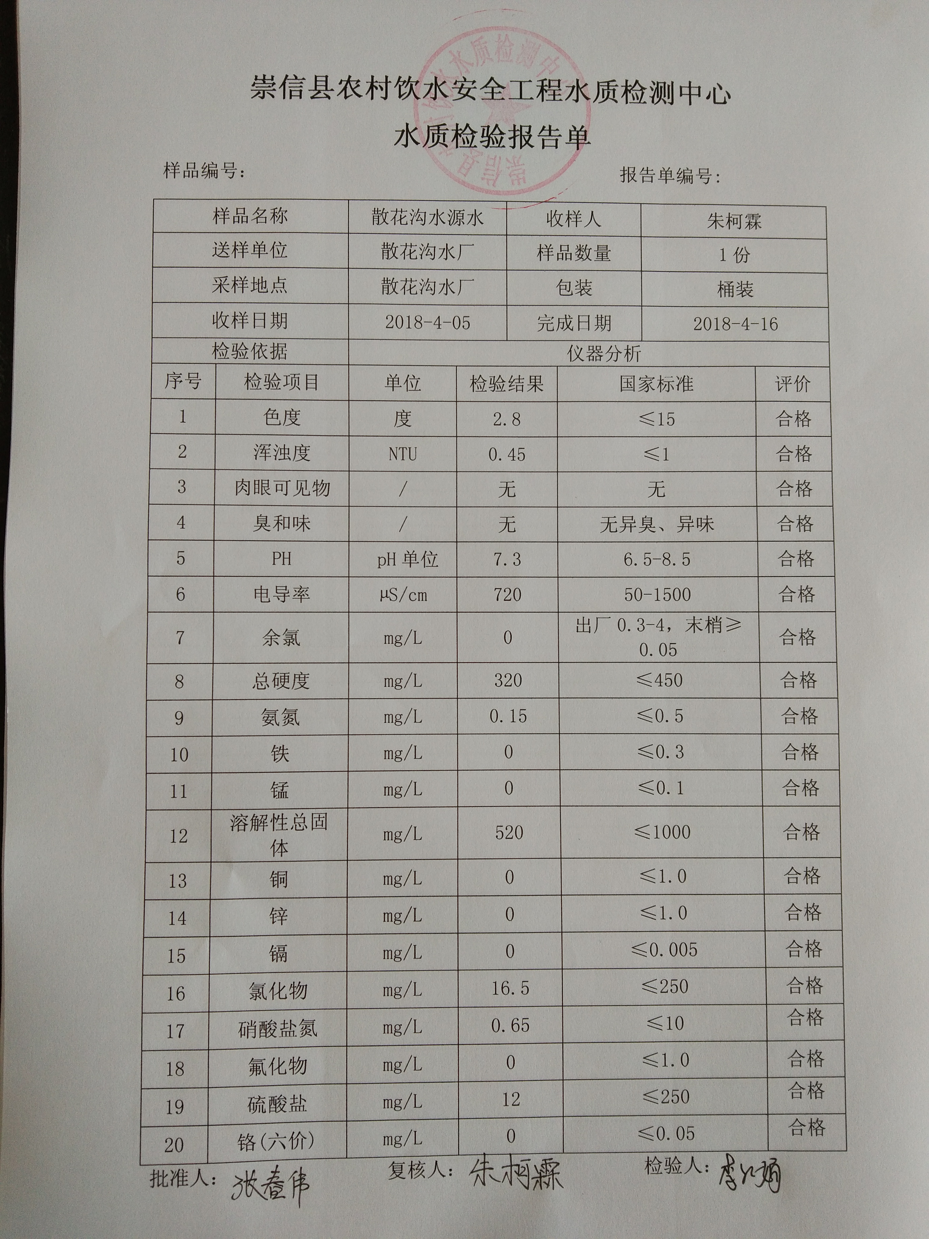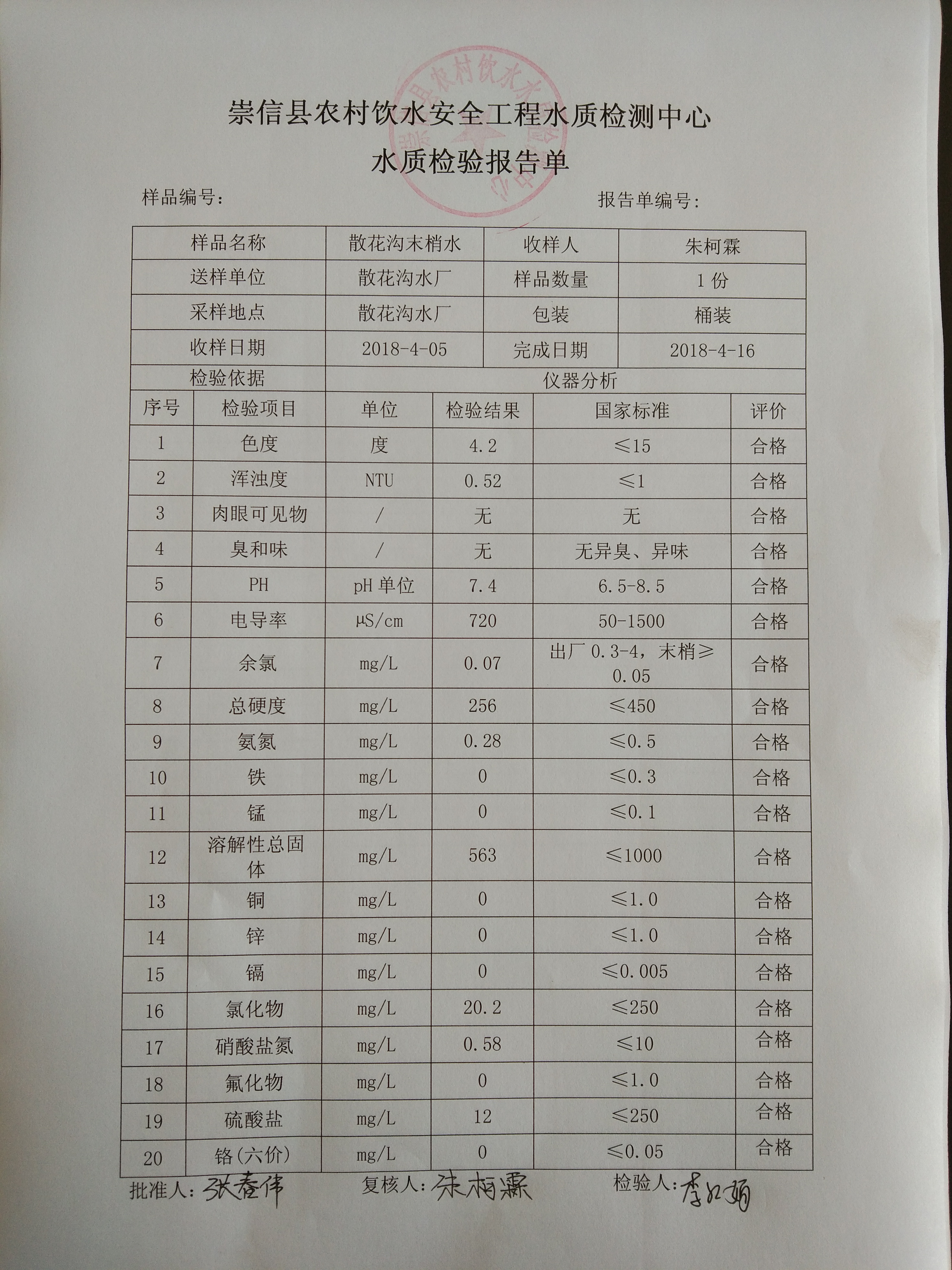 2018年4月份散花沟水厂水质检测报告单 发文日期:2018-05-25 16:01 来源:崇信县水务局 作者:崇信水务局 编辑:崇信水务局 1525320022381 1525320051858 1525320097987 1525320128015 1525320172526 IMG_20180503_115955 扫一扫在手机打开当前页 上一篇: 2018年5月份散花沟水厂水质检测报告单 下一篇: 2018年3月份散花沟水厂水质检测报告单