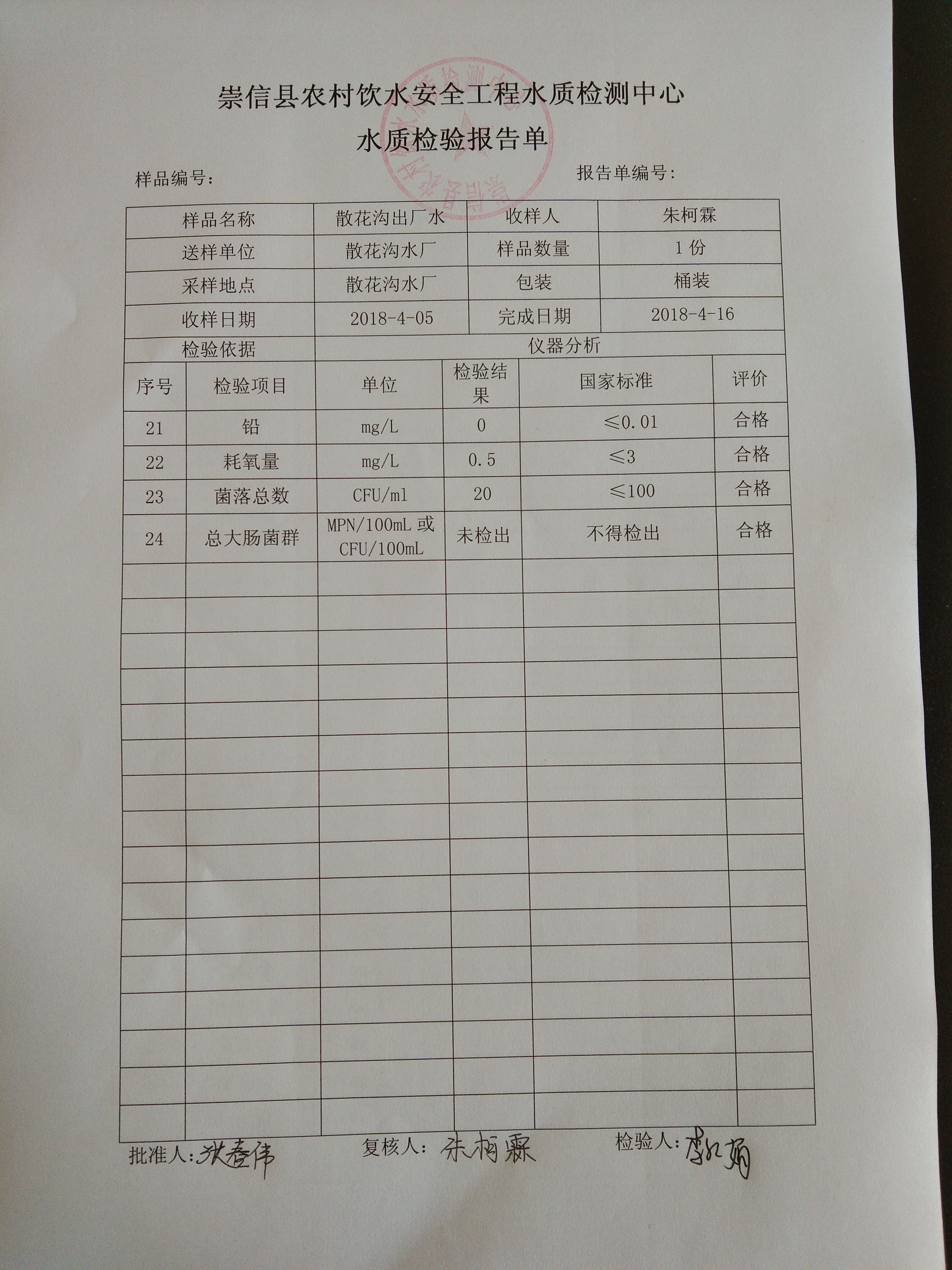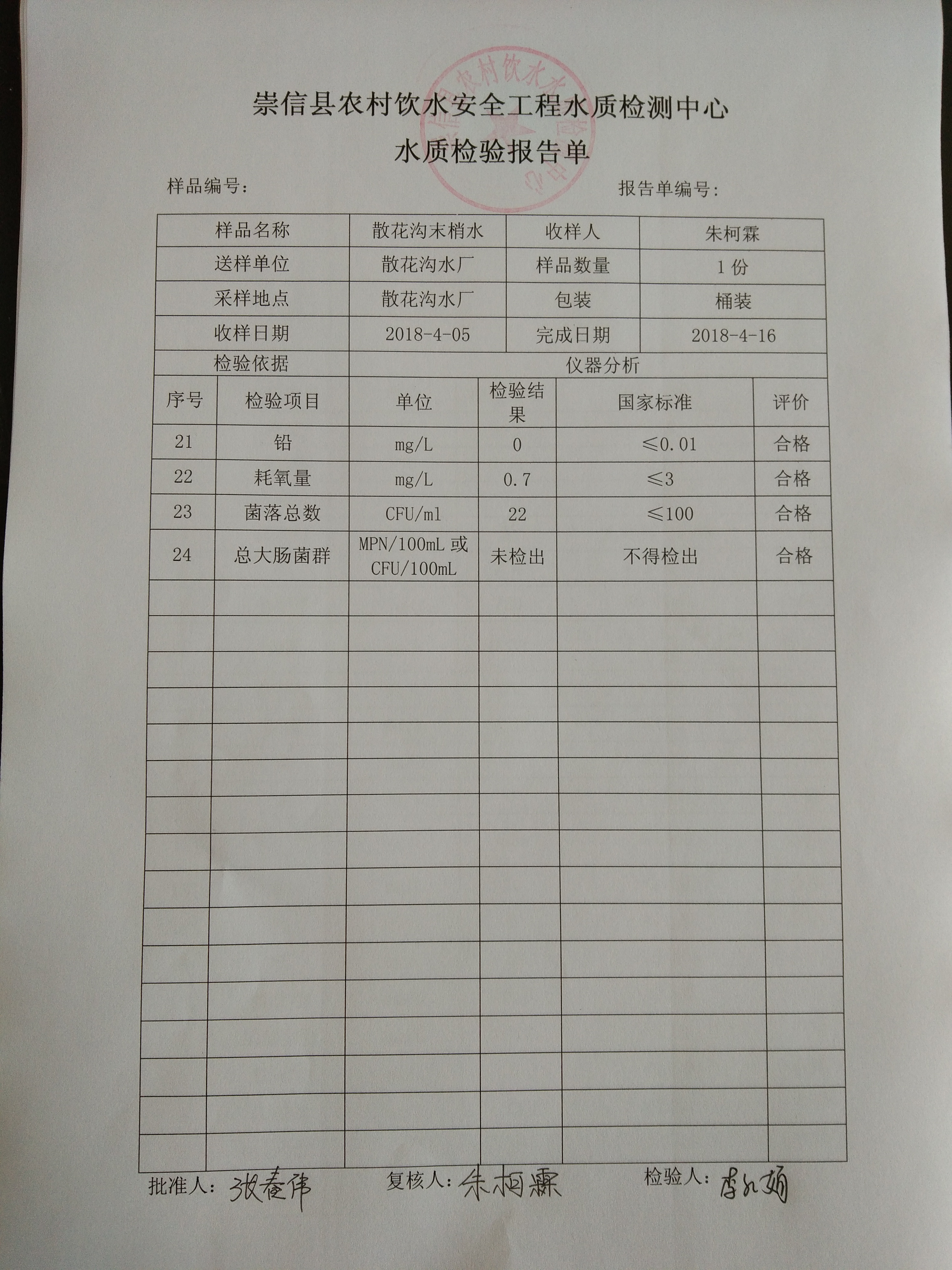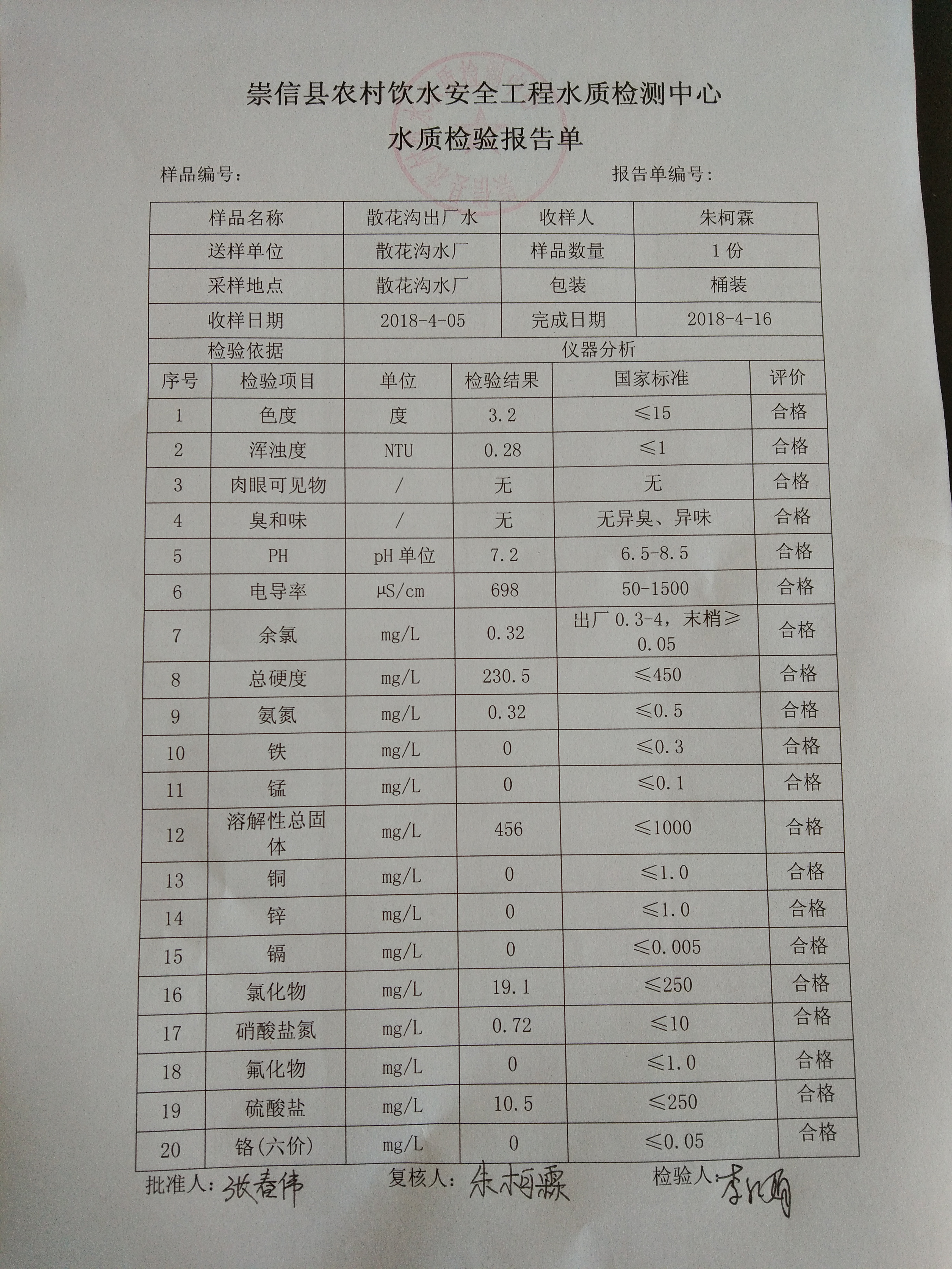 2018年4月份散花沟水厂水质检测报告单 发文日期:2018-05-25 16:01 来源:崇信县水务局 作者:崇信水务局 编辑:崇信水务局 1525320022381 1525320051858 1525320097987 1525320128015 1525320172526 IMG_20180503_115955 扫一扫在手机打开当前页 上一篇: 2018年5月份散花沟水厂水质检测报告单 下一篇: 2018年3月份散花沟水厂水质检测报告单