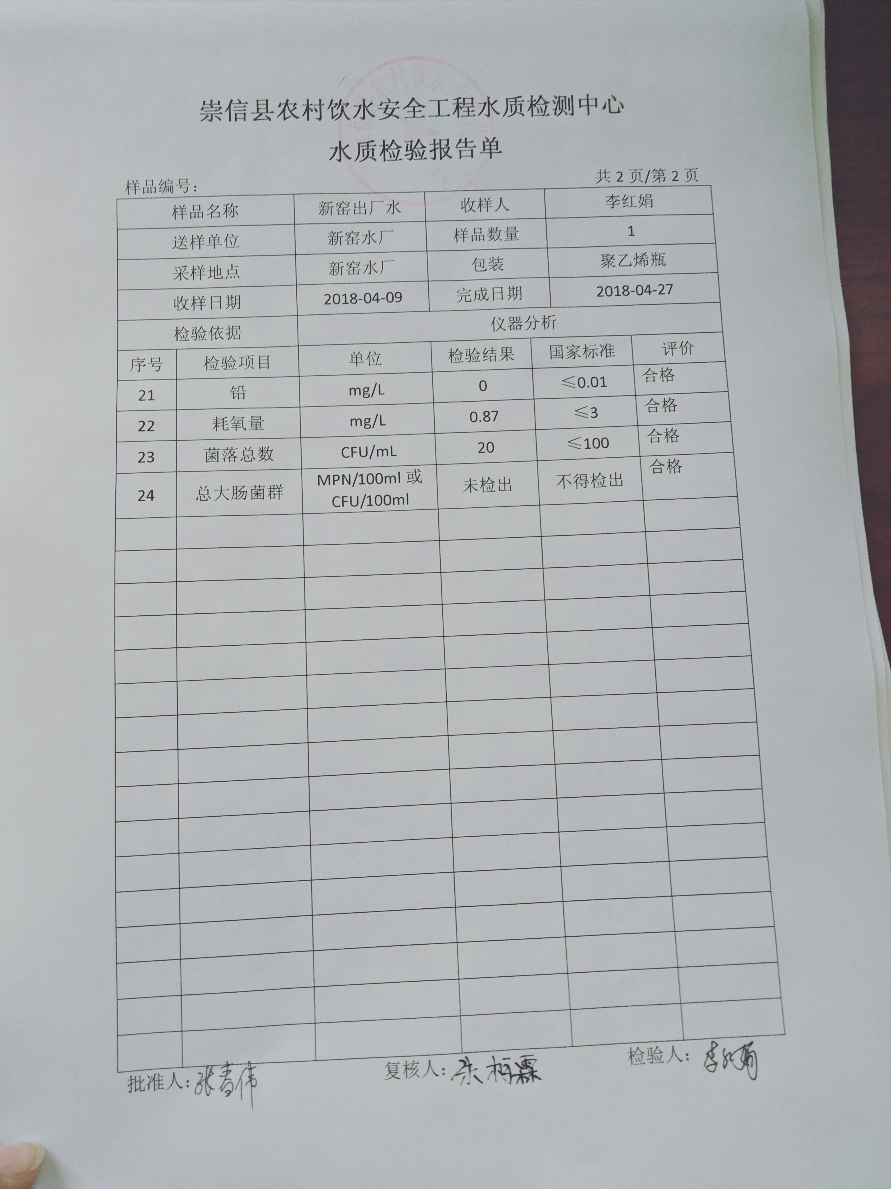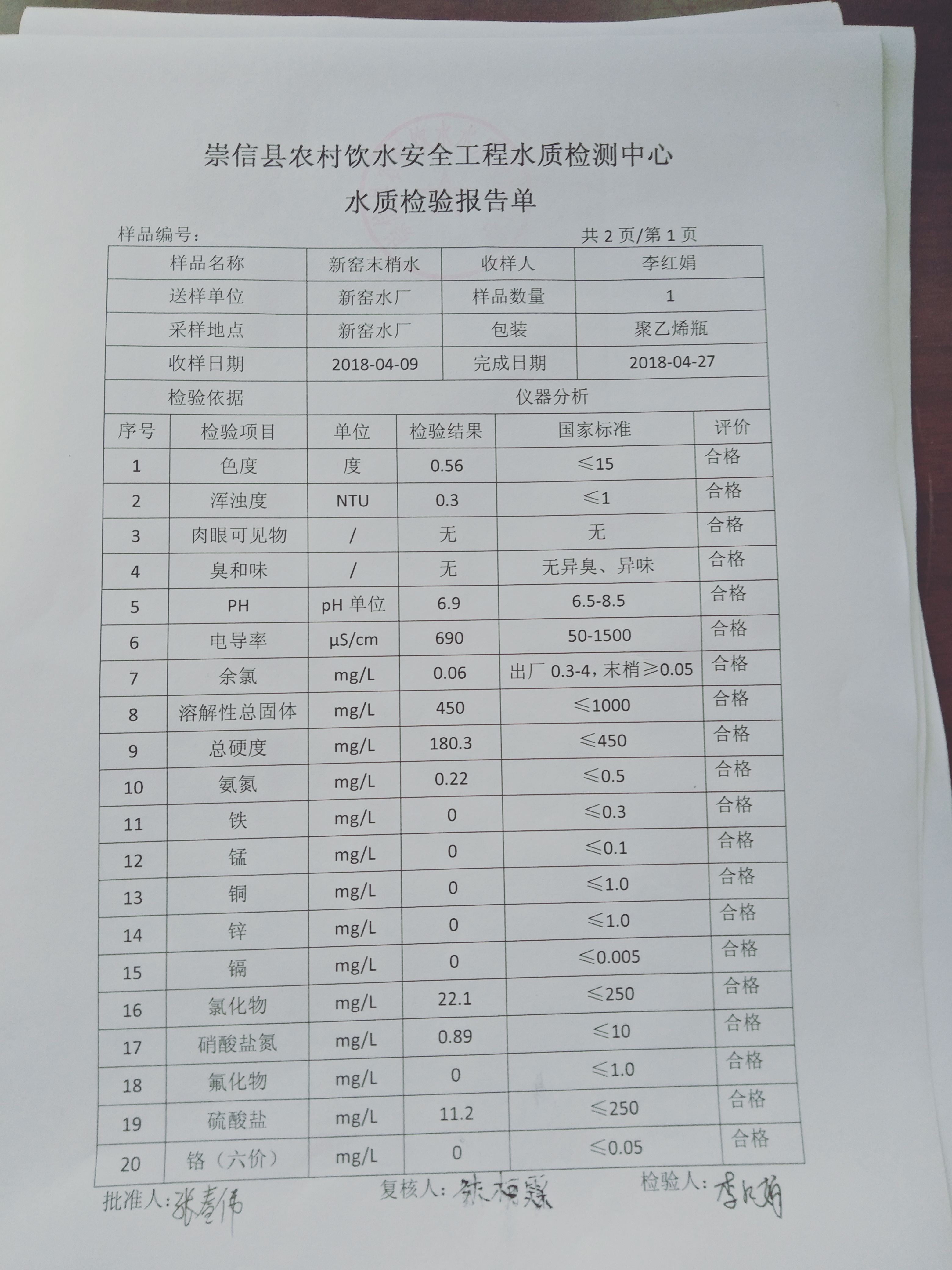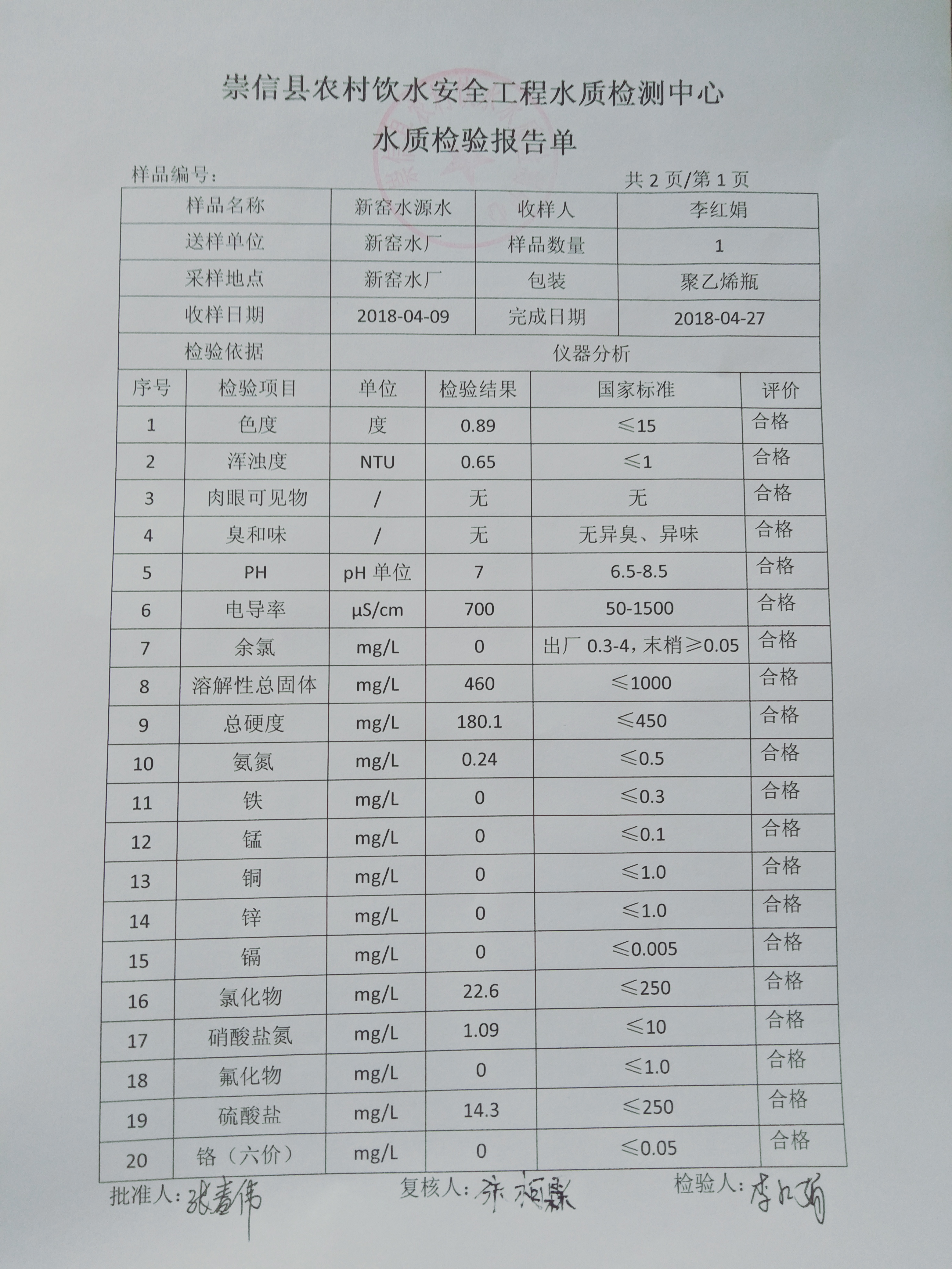 2018年4月份新窑水厂水质检测报告单 发文日期:2018-05-25 16:11 来源:崇信县水务局 作者:崇信水务局 编辑:崇信水务局 IMG20180502155552 IMG20180502155557 IMG20180502155604 IMG20180502155610 IMG20180502155630 IMG20180502155635 扫一扫在手机打开当前页 上一篇: 2018年新窑水厂5月份水质检测报告单 下一篇: 2018年3月份新窑水厂水质检测报告单