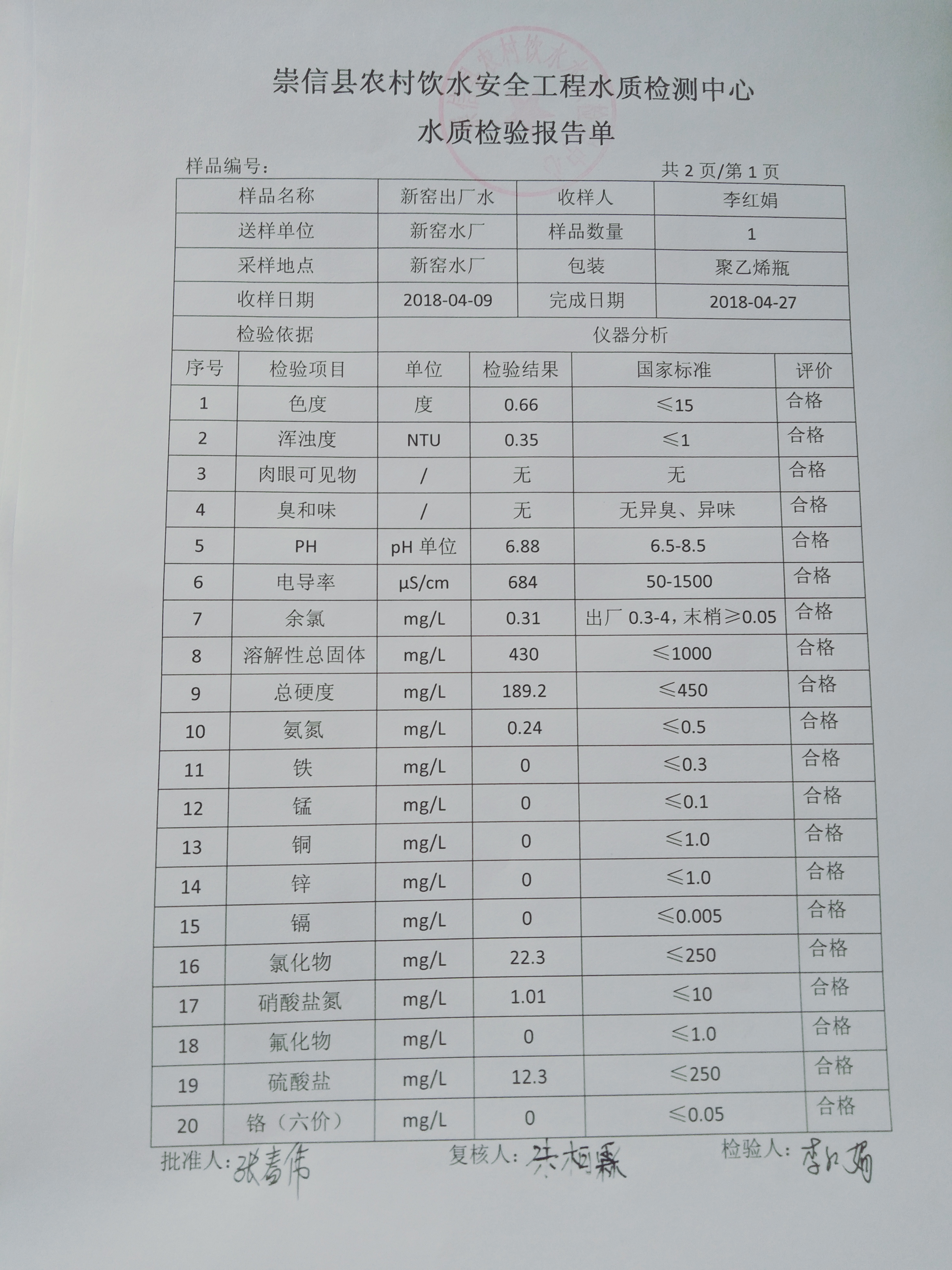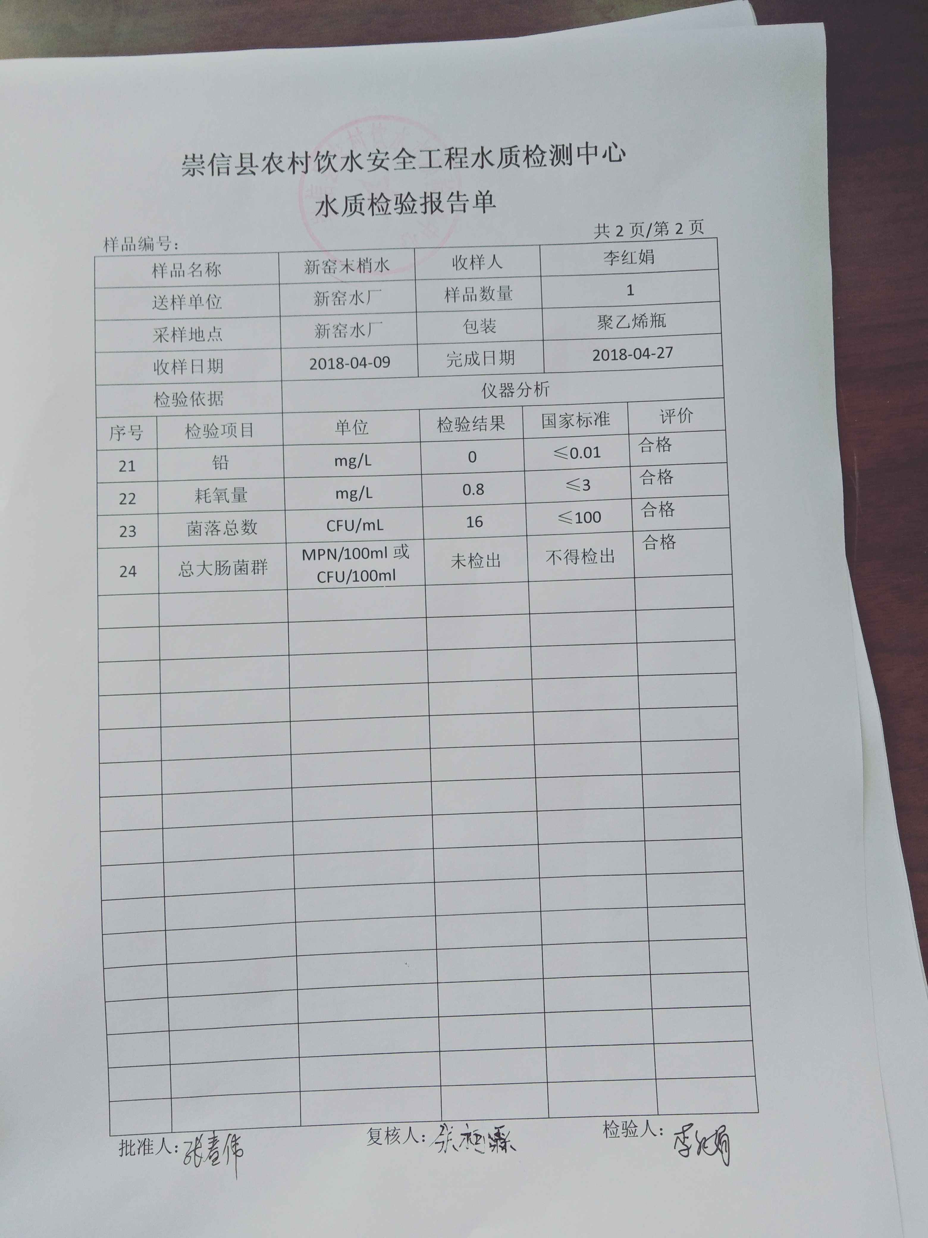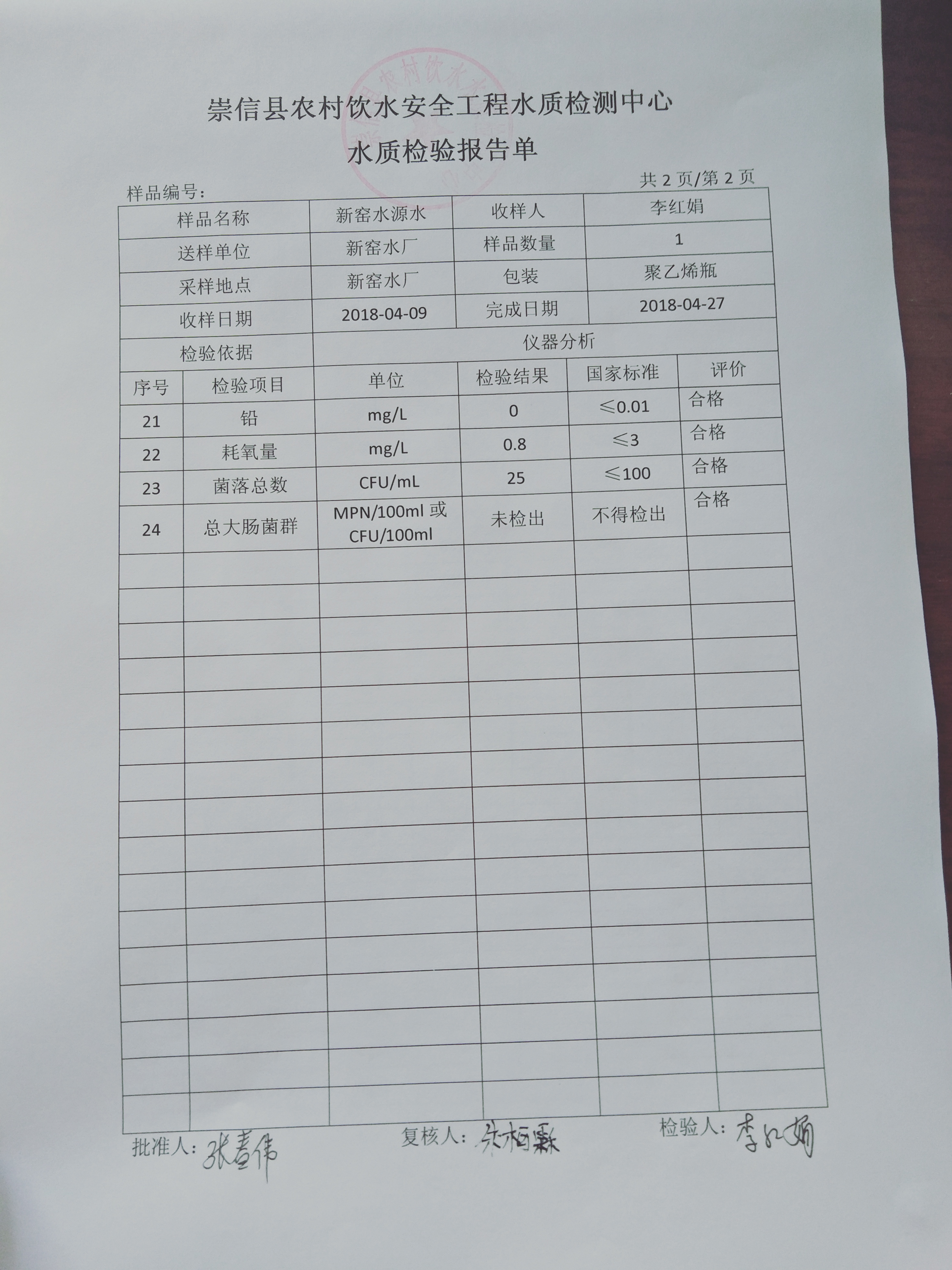 2018年4月份新窑水厂水质检测报告单 发文日期:2018-05-25 16:11 来源:崇信县水务局 作者:崇信水务局 编辑:崇信水务局 IMG20180502155552 IMG20180502155557 IMG20180502155604 IMG20180502155610 IMG20180502155630 IMG20180502155635 扫一扫在手机打开当前页 上一篇: 2018年新窑水厂5月份水质检测报告单 下一篇: 2018年3月份新窑水厂水质检测报告单