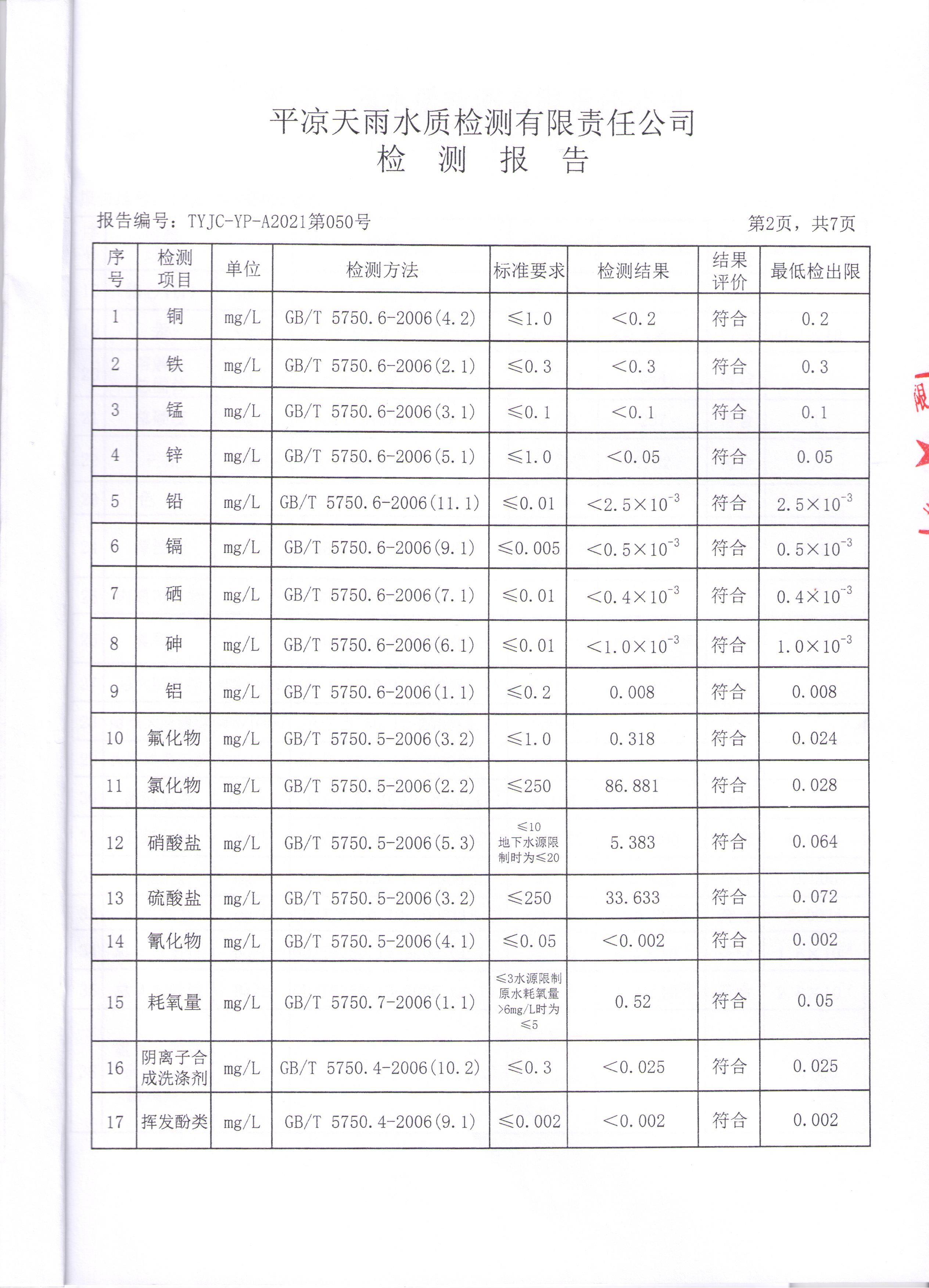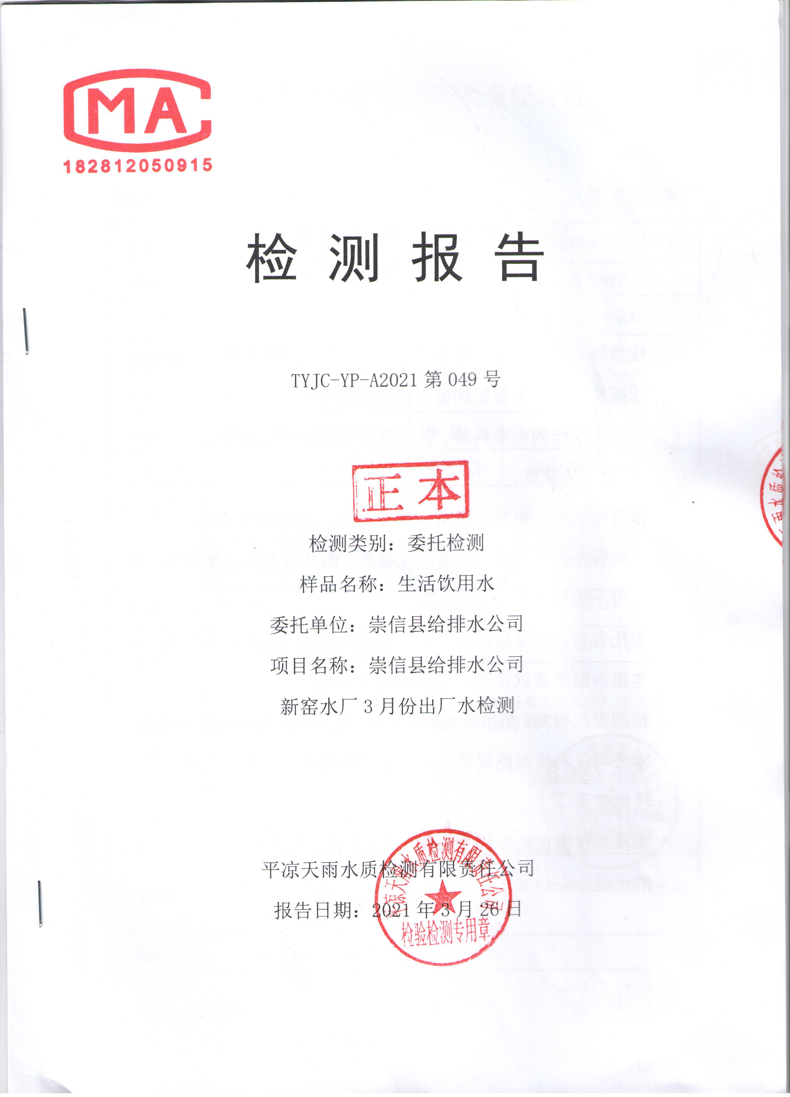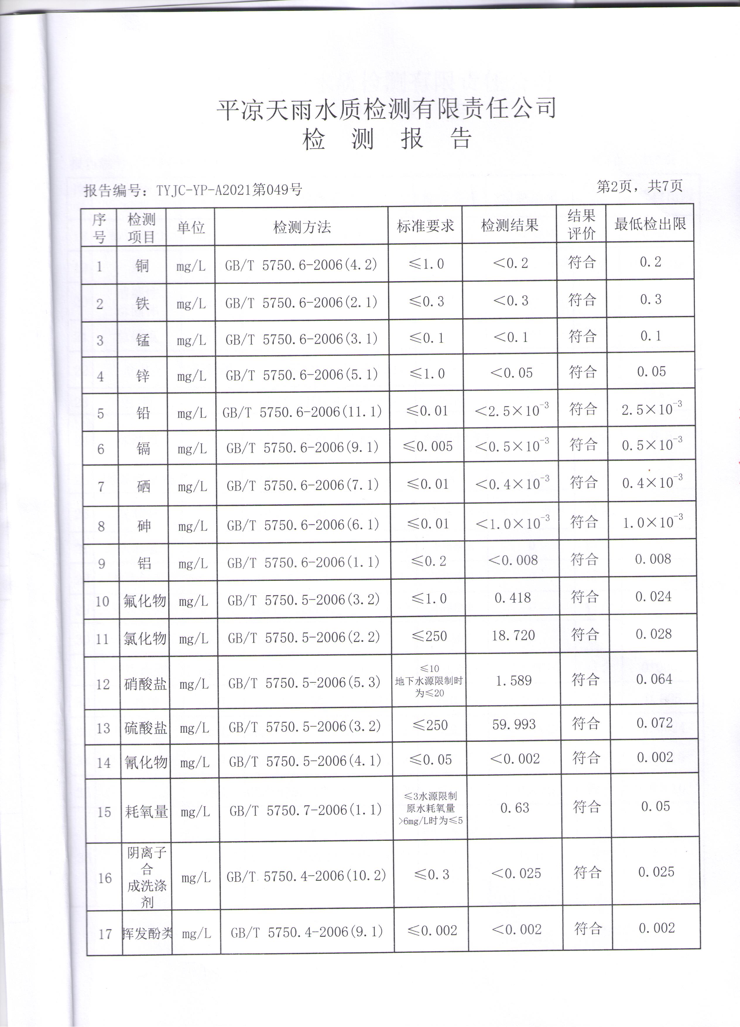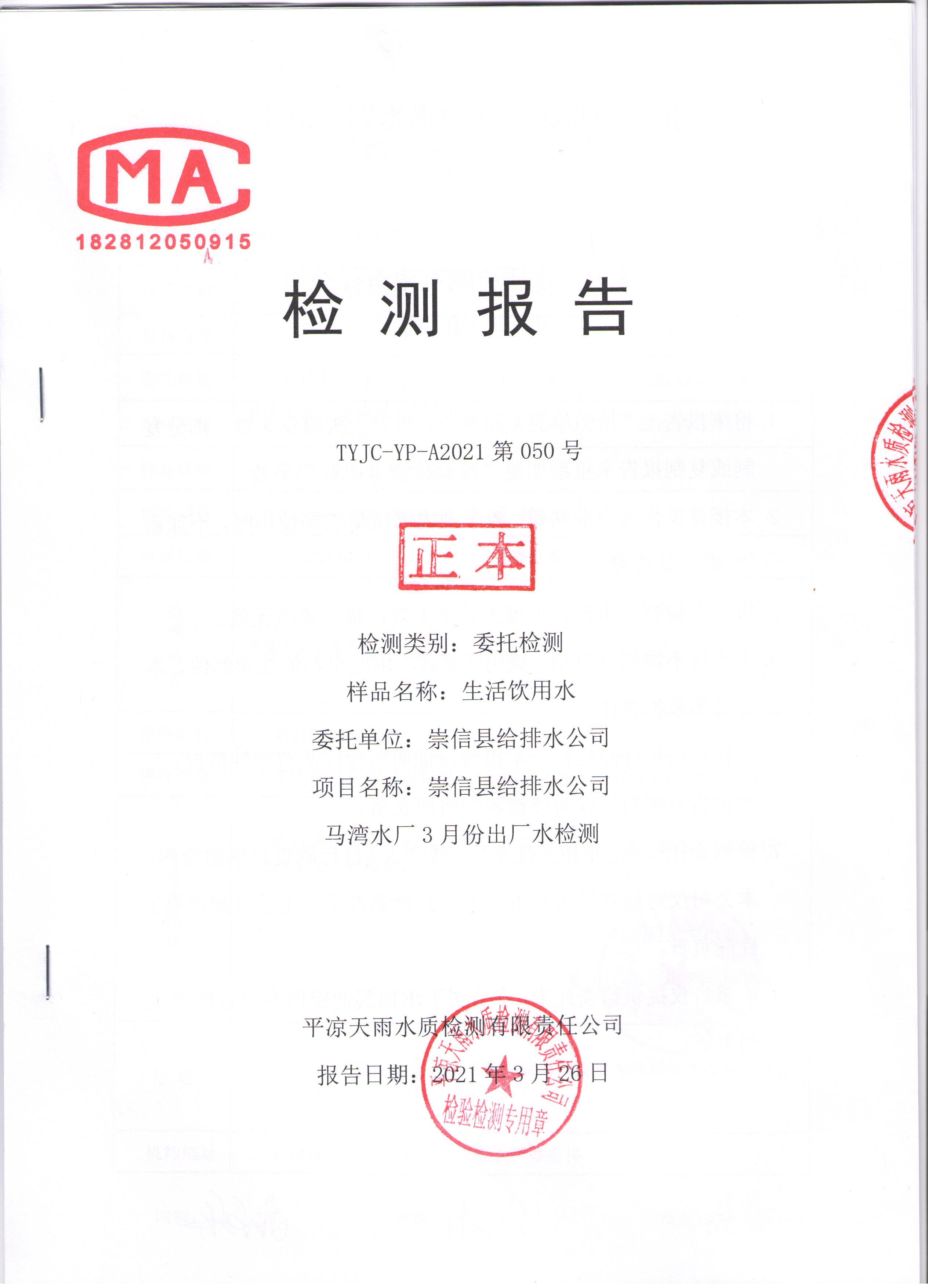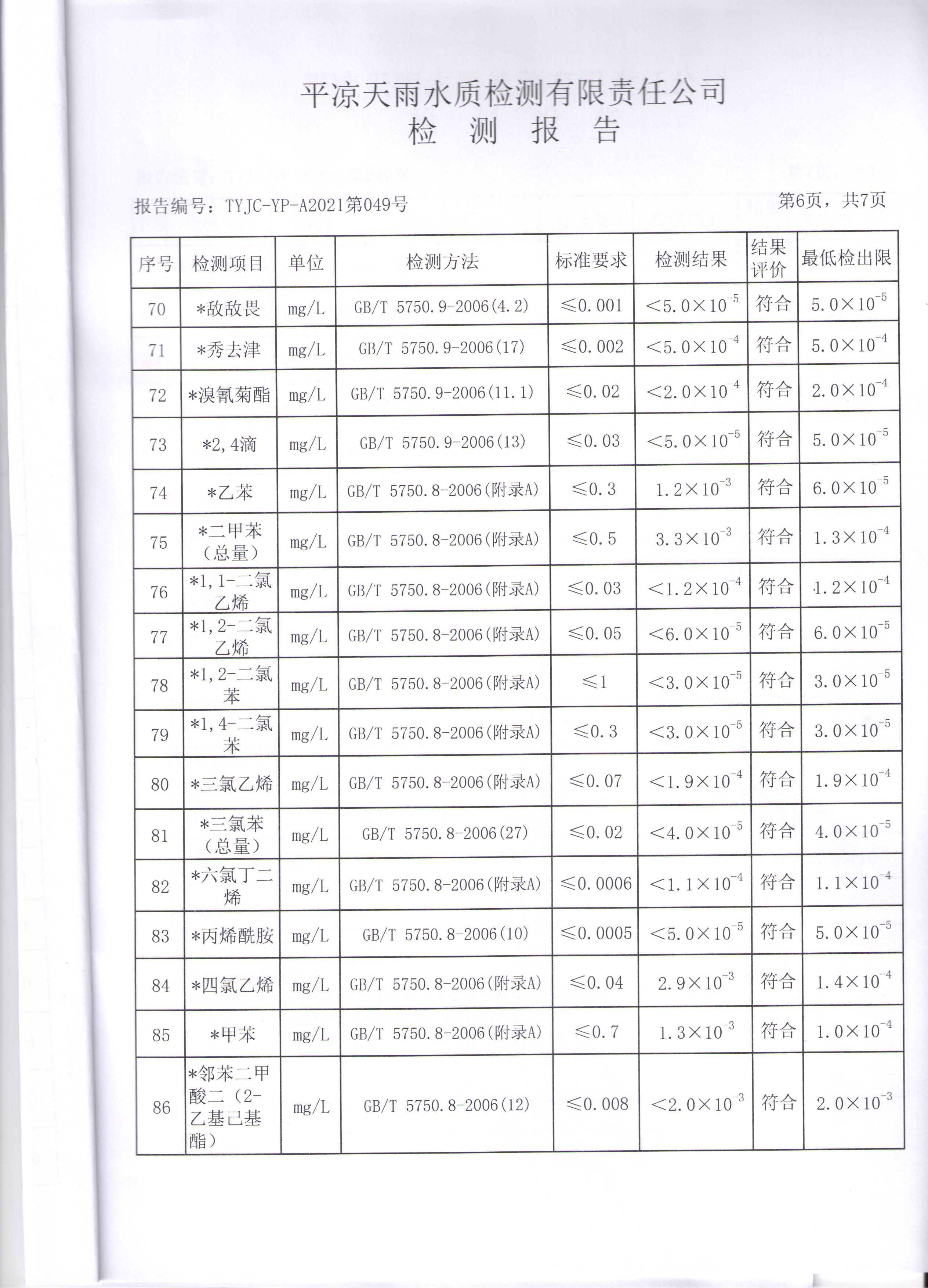 2021年第三方水质监测情况表 发文日期:2021-05-17 00:00 来源:崇信县住房和城乡建设局 作者:崇信住建局 编辑:崇信住建局 马湾出厂水1 马湾出厂水2 马湾出厂水3 马湾出厂水4 马湾出厂水5 马湾出厂水6 马湾出厂水7 马湾出厂水8 新窑出厂水01 新窑出厂水02 新窑出厂水03 新窑出厂水04 新窑出厂水05 新窑出厂水06 新窑出厂水07 新窑出厂水08 扫一扫在手机打开当前页 上一篇: 2021年4月水质化验报告单 下一篇: 崇信县市场监督管理局执法人员名录