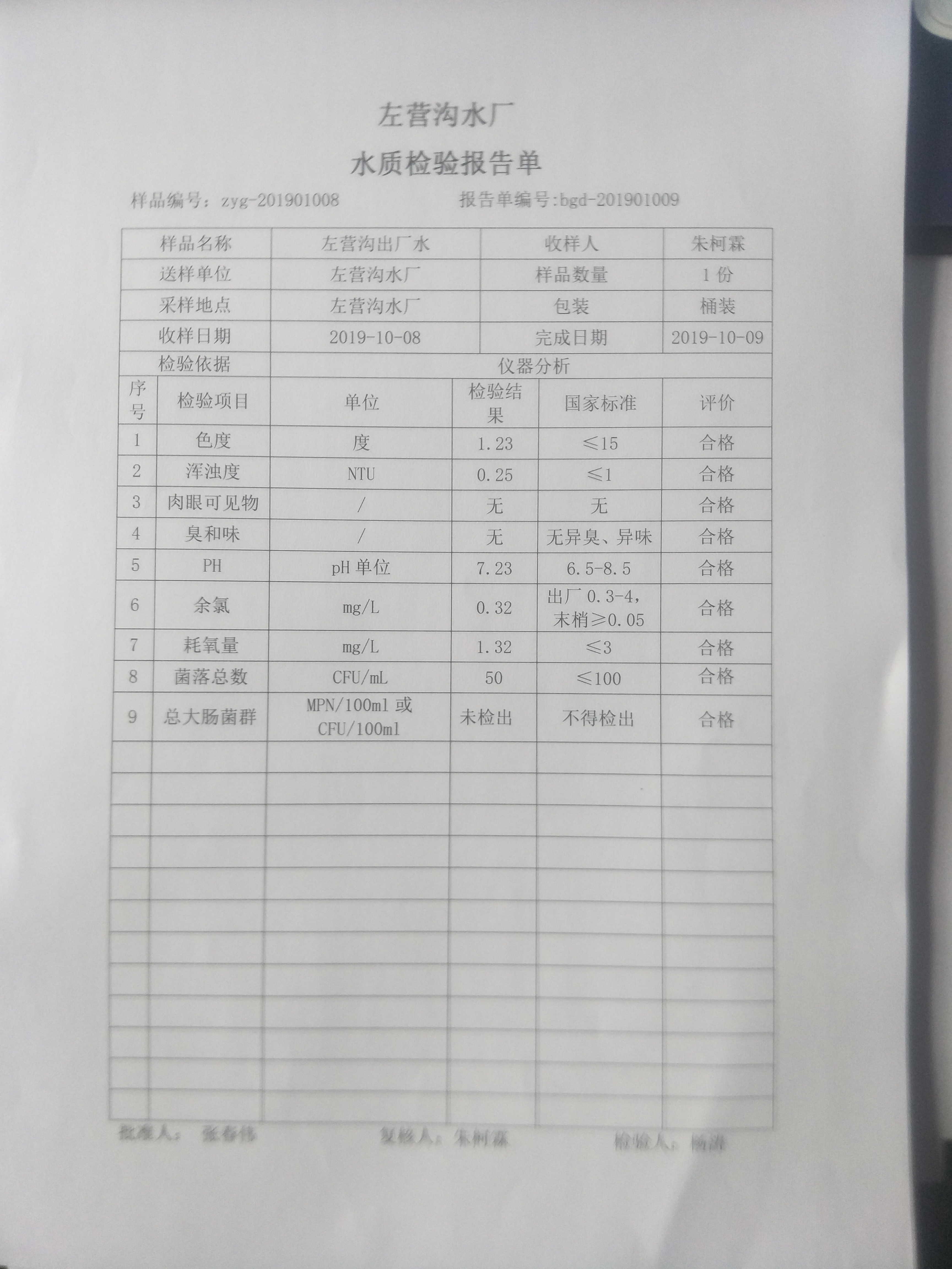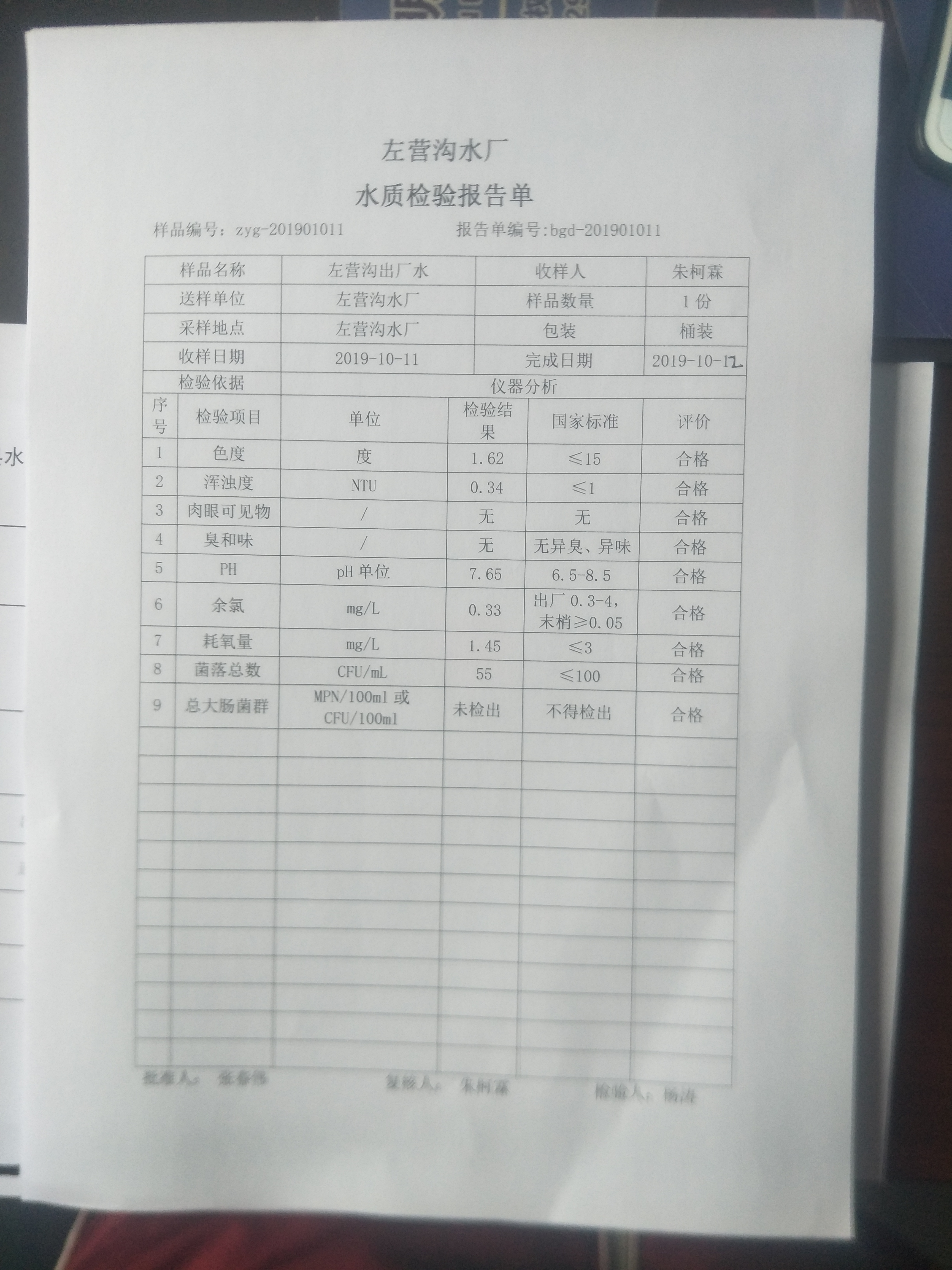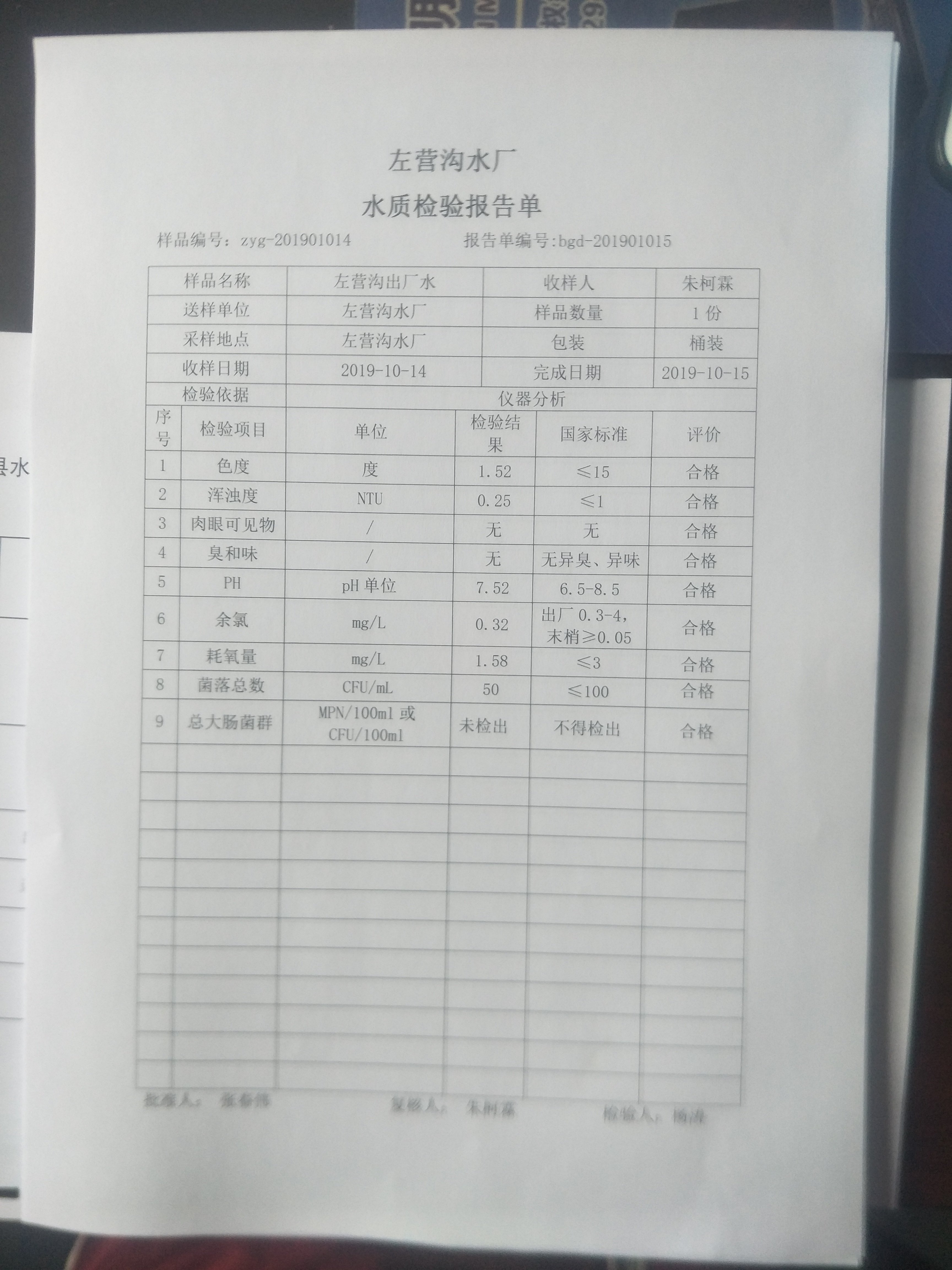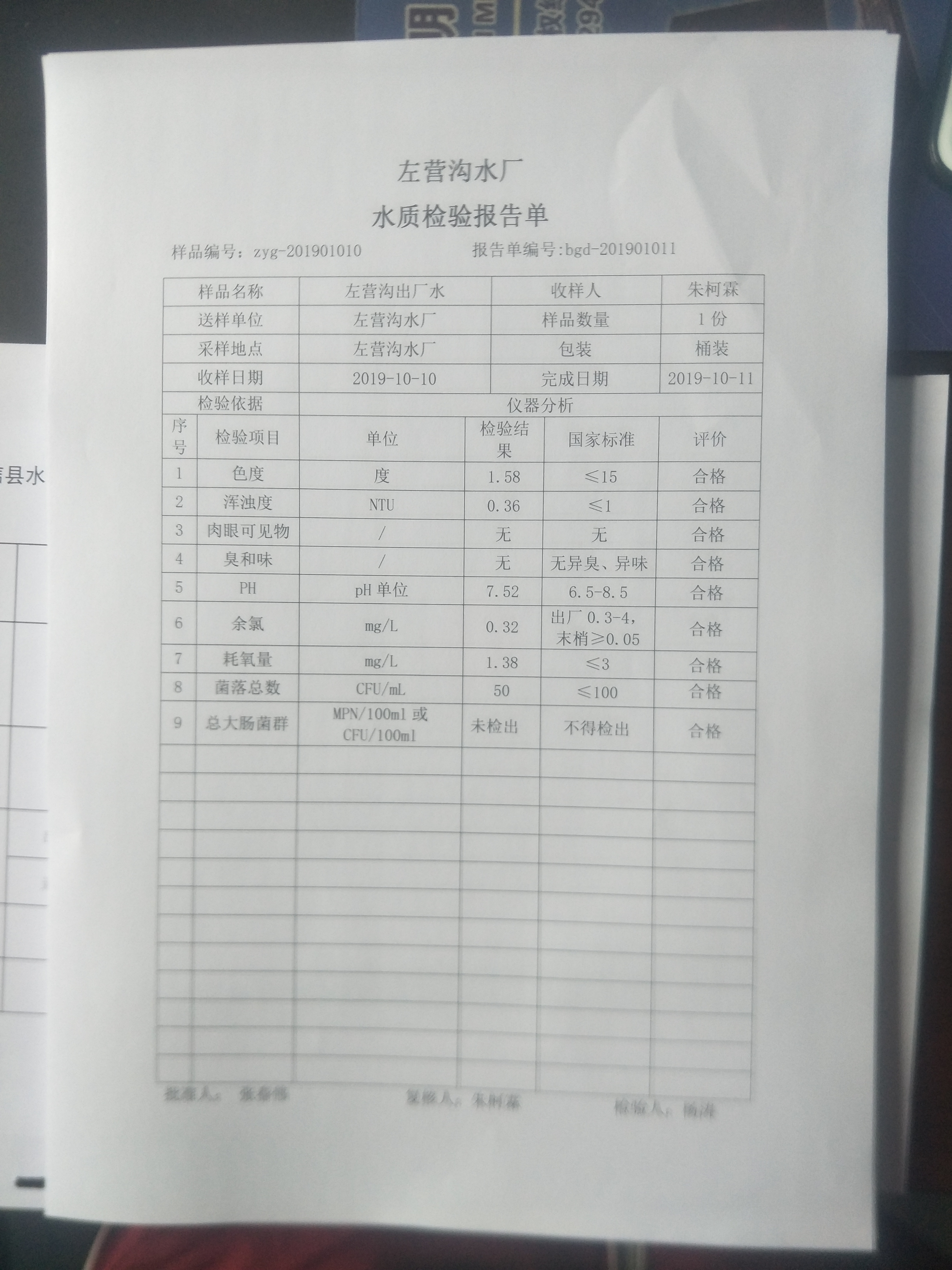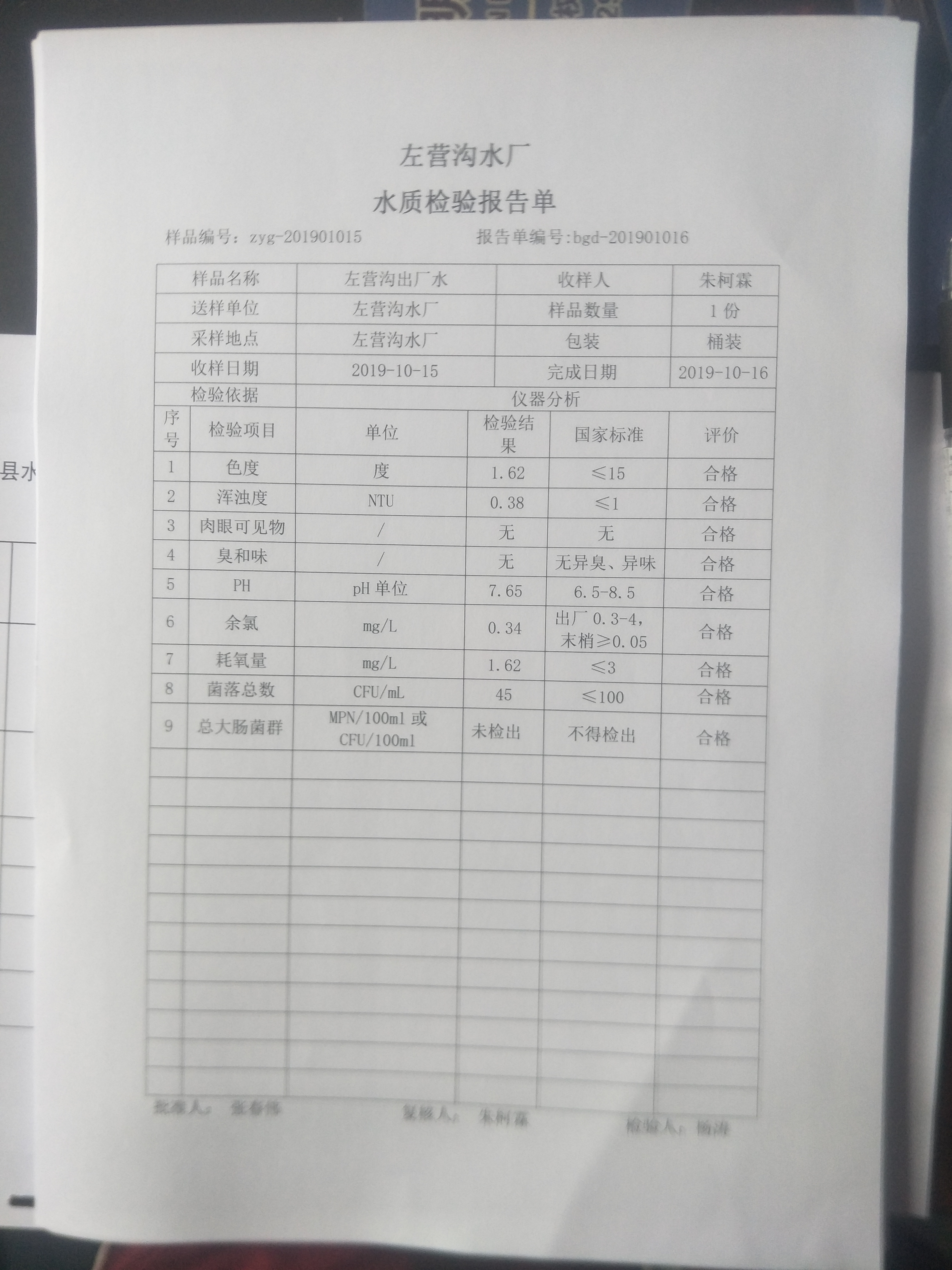 2019年10月份上半月左营沟水厂日检九项报告单 发文日期:2019-12-24 00:00 来源:崇信县水务局 作者:崇信水务局 编辑:崇信水务局 IMG20191224150006 IMG20191224150041 IMG20191224150050 IMG20191224150058 QQ图片20191224150450 QQ图片20191224150618 扫一扫在手机打开当前页 上一篇: 2019年杜家沟水厂10月份下半月水质日检报告单 下一篇: 2019年左营沟水厂11月份下半月日检报告单