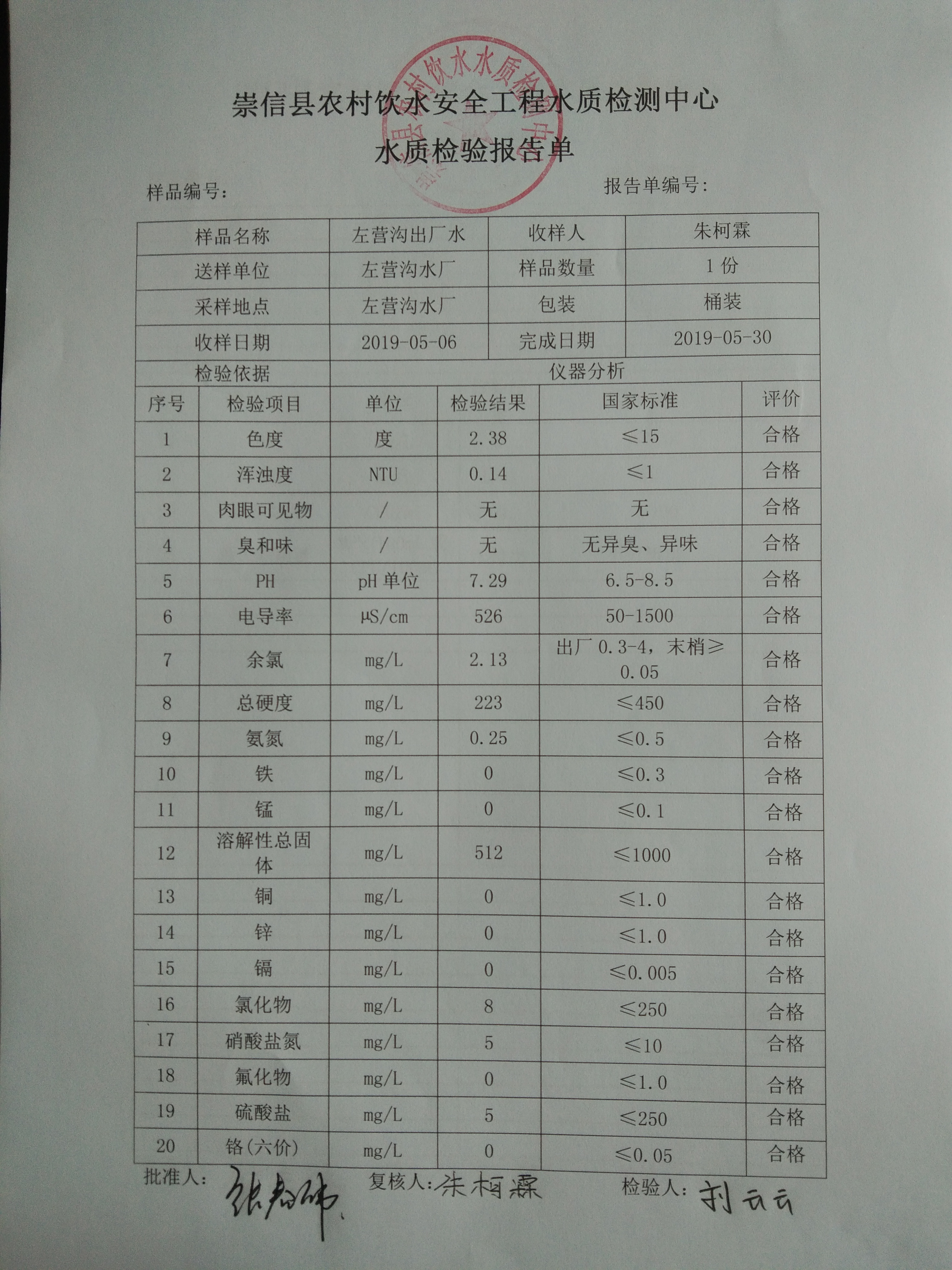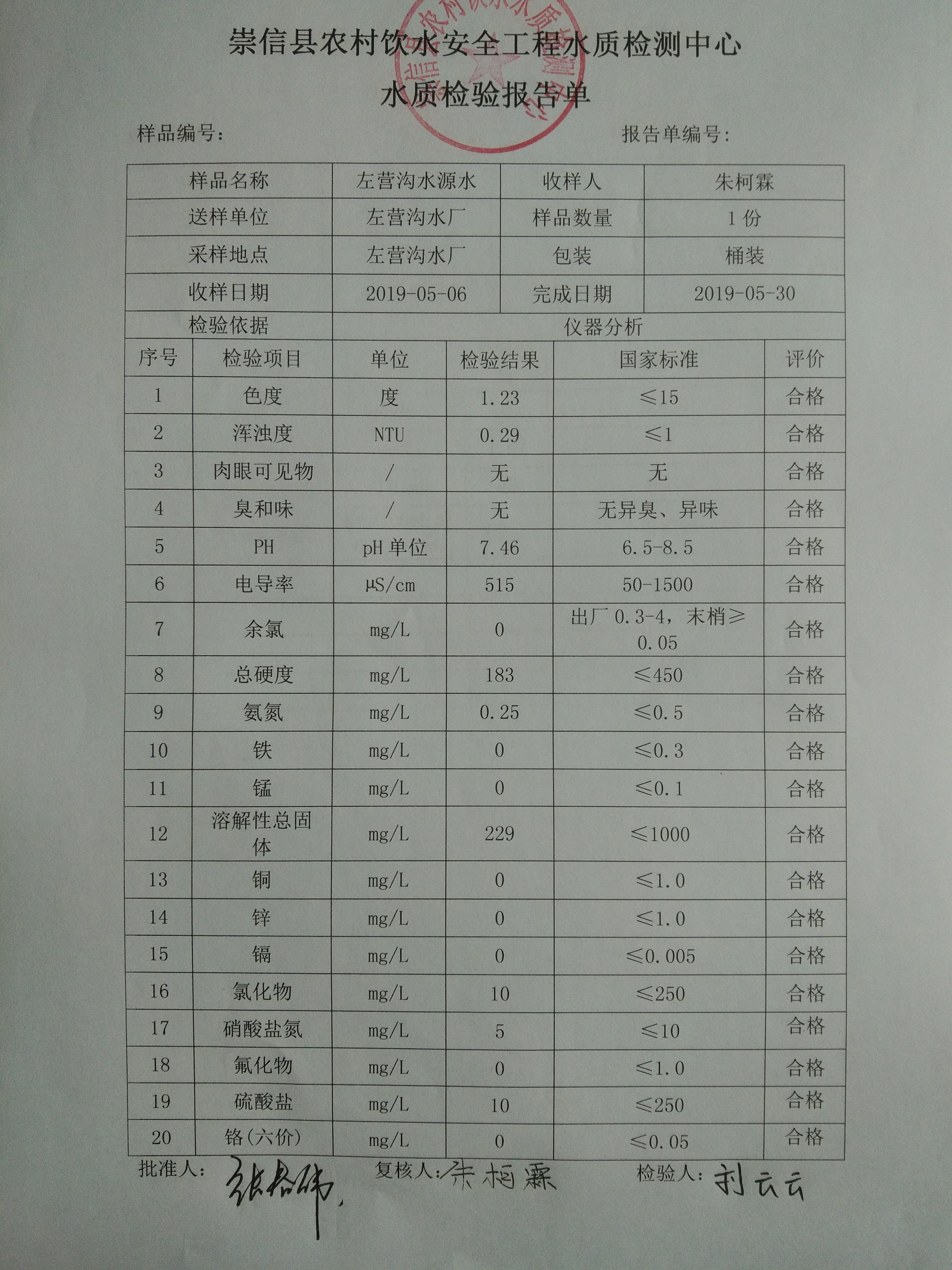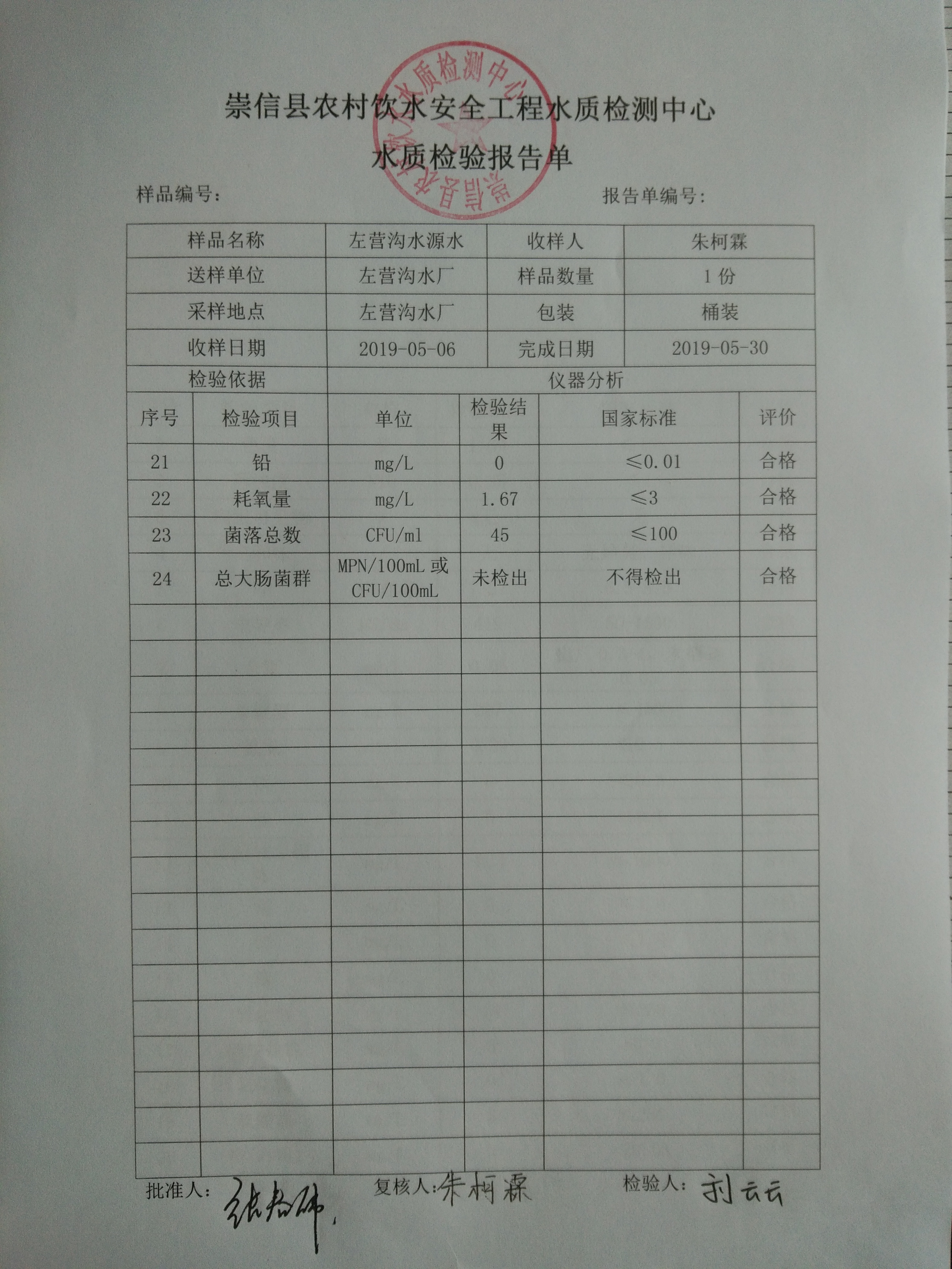 2019年左营沟水厂水质检测报告 发文日期:2019-05-28 00:00 来源:崇信县水务局 作者:崇信水务局 编辑:崇信水务局 IMG_20190528_145051 IMG_20190528_145058 IMG_20190528_145108 IMG_20190528_145136 IMG_20190528_145152 IMG_20190528_145201 扫一扫在手机打开当前页 上一篇: 2019年5月份新窑水厂水质检测报告 下一篇: 2019年5月份杜家沟水厂水质检测报告