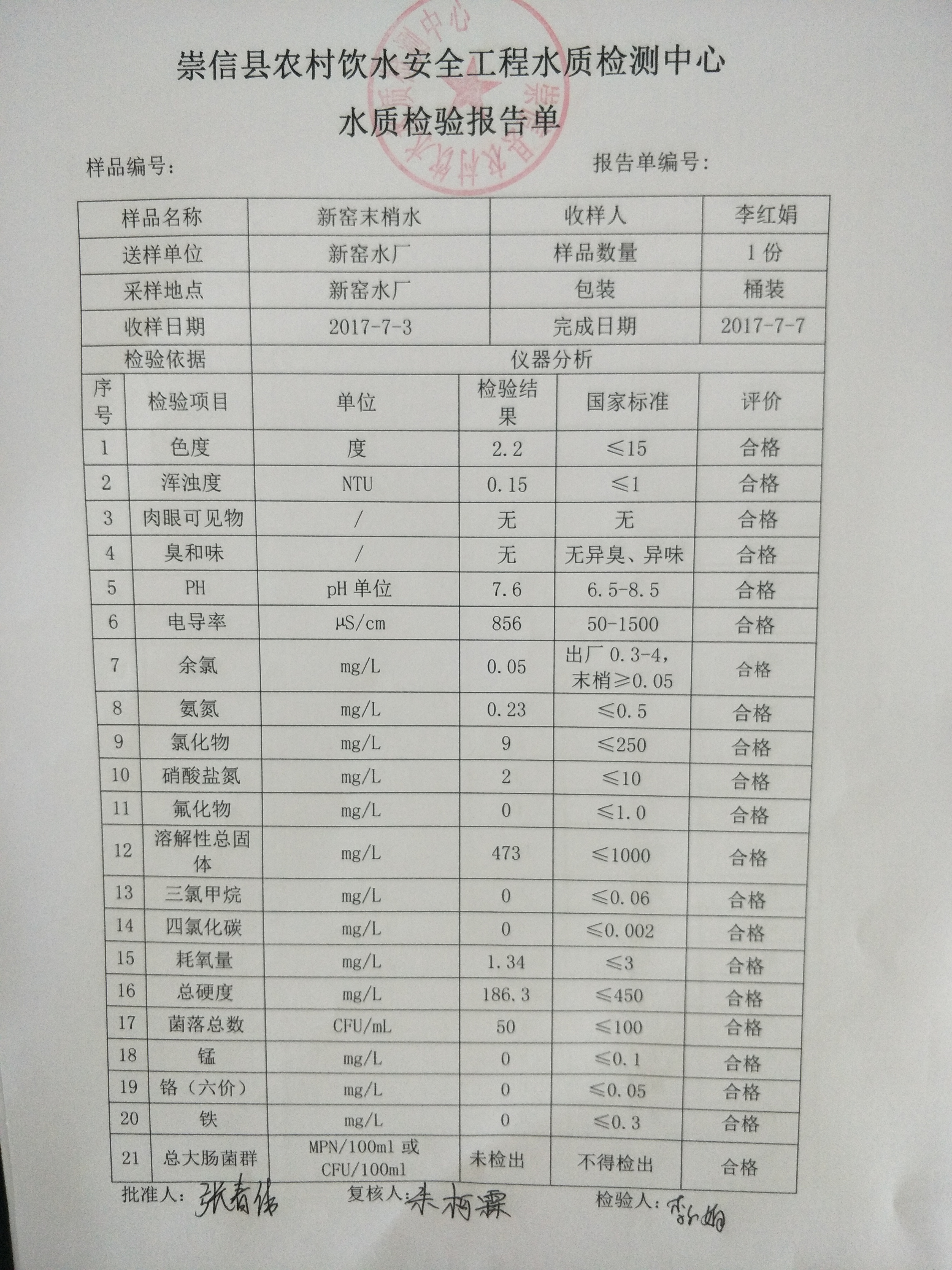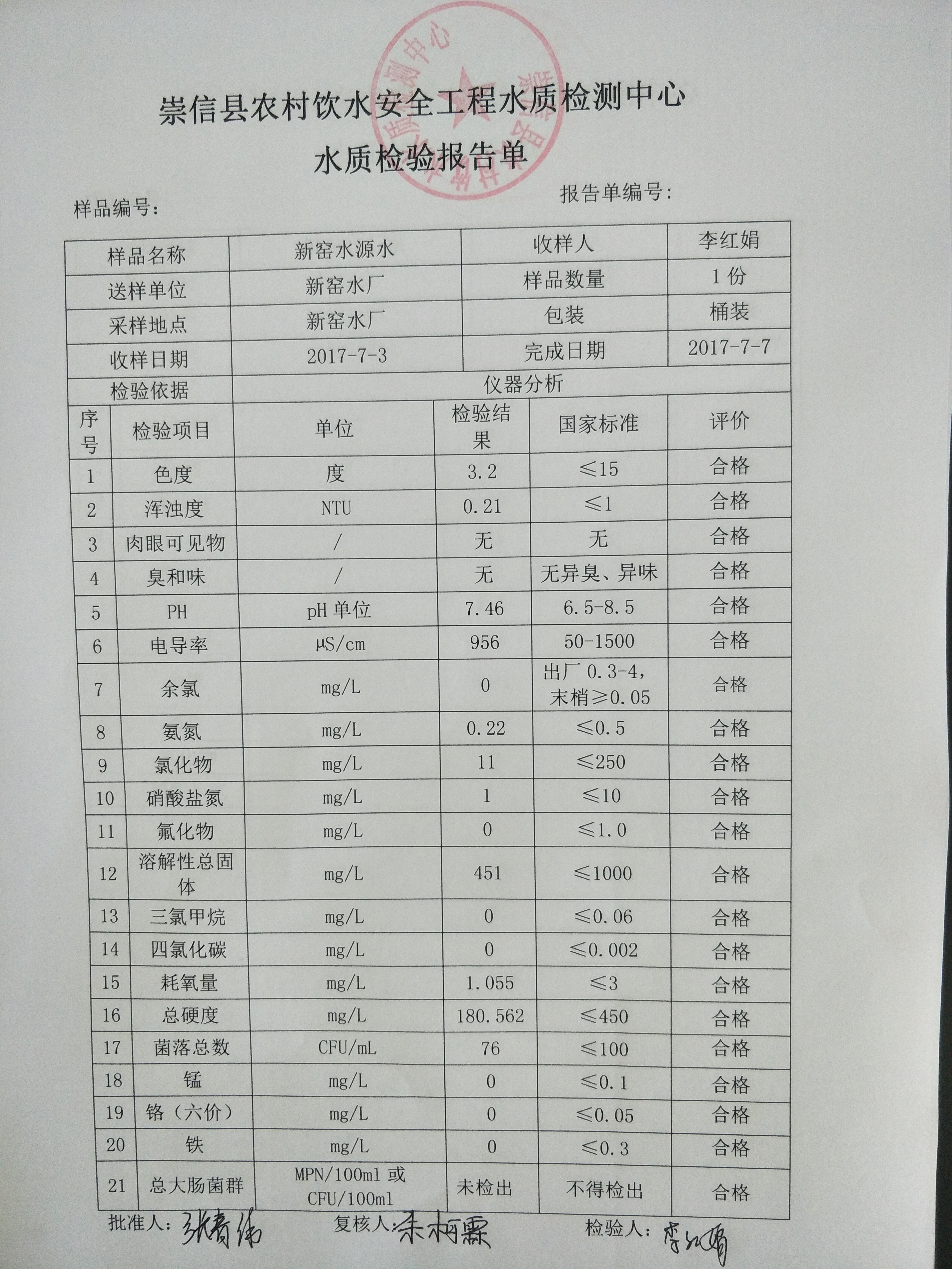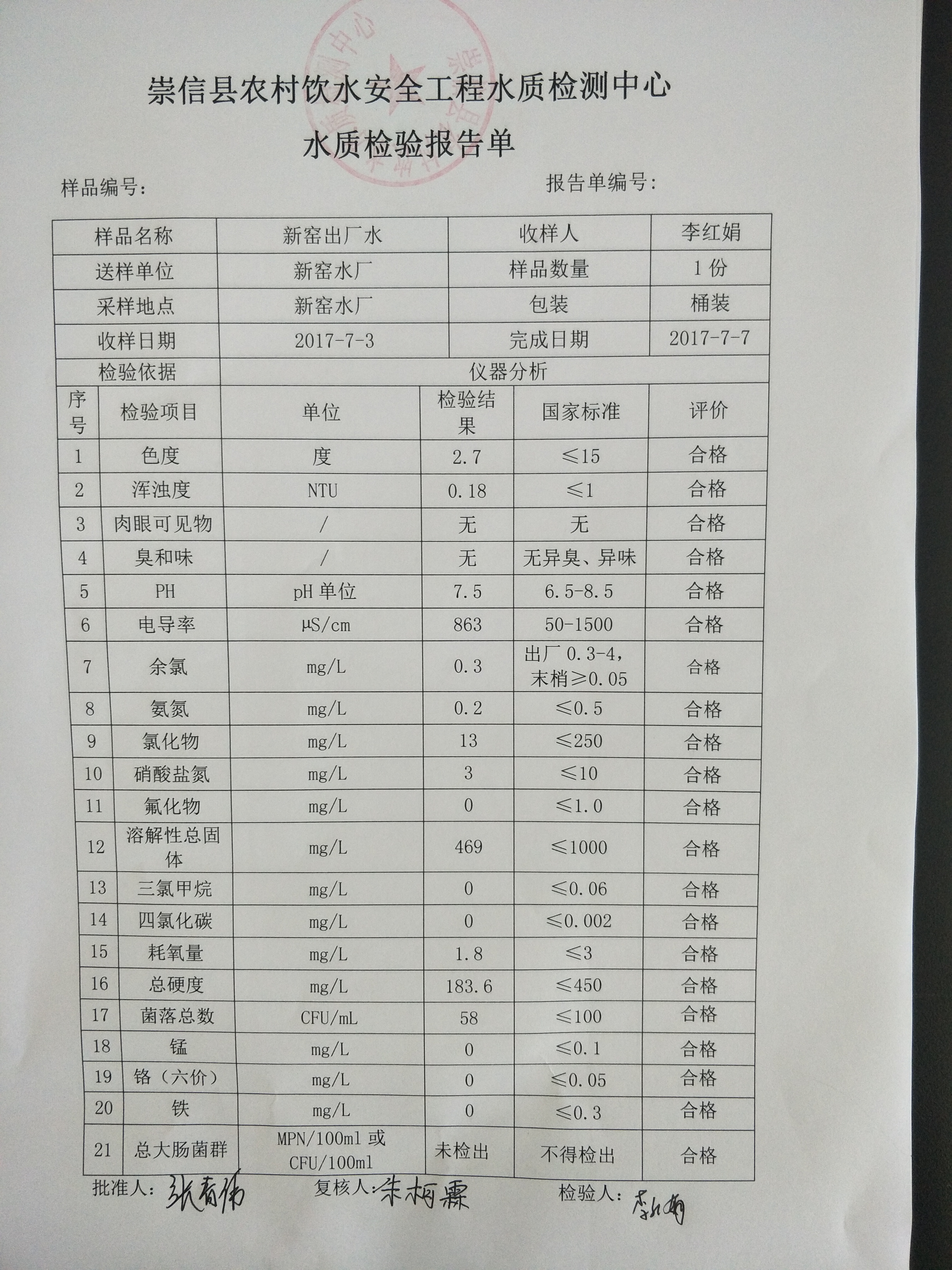 2017年7月份新窑水厂水质检测报告单 发文日期:2017-09-29 17:19 来源:崇信县水务局 作者:崇信水务局 编辑:崇信水务局 1506676455968 1506676473223 1506676490538 扫一扫在手机打开当前页 上一篇: 2017年8月份新窑水厂水质检测报告单 下一篇: 2016年12月份杜家沟水厂水质检测报告单