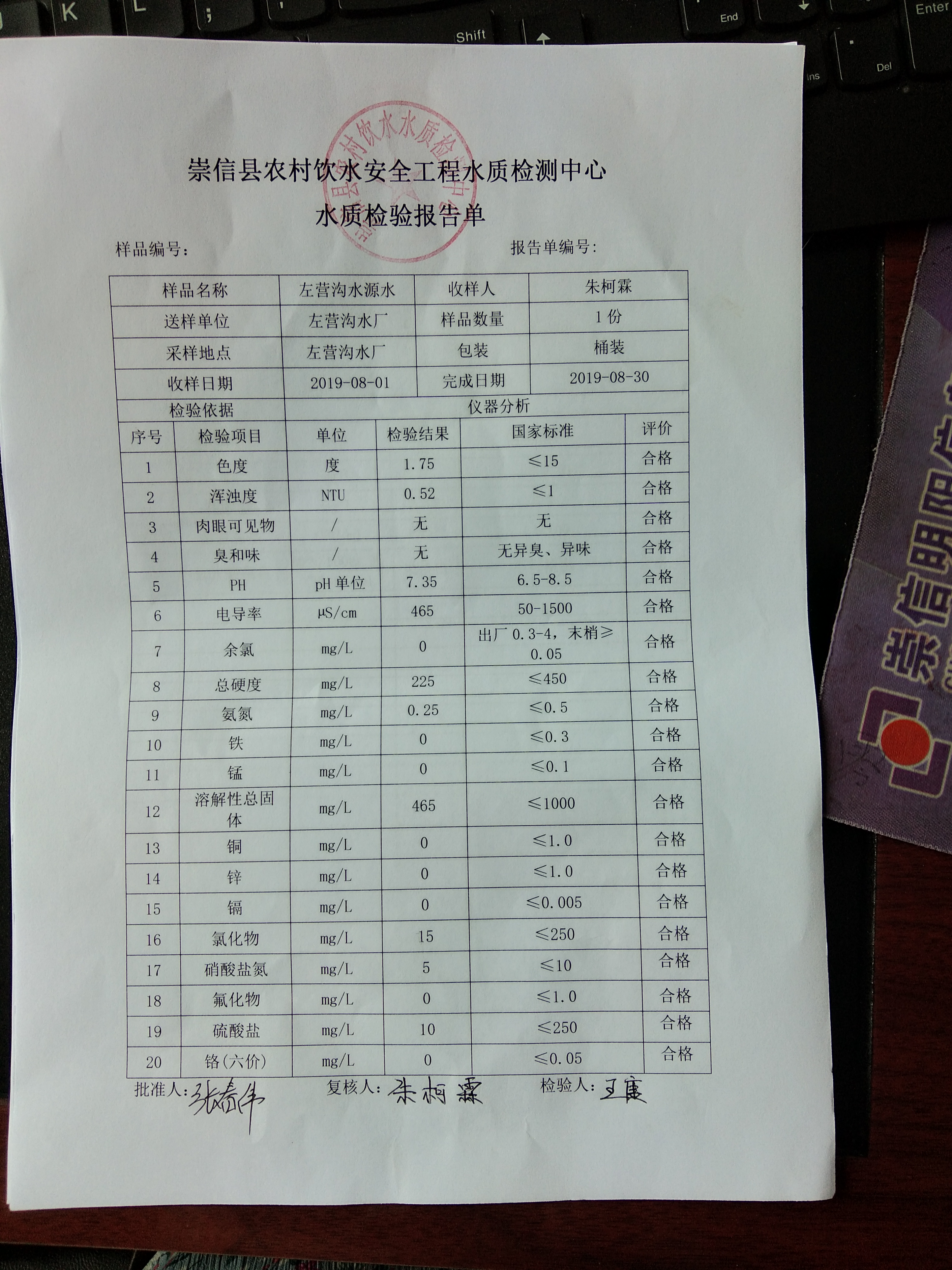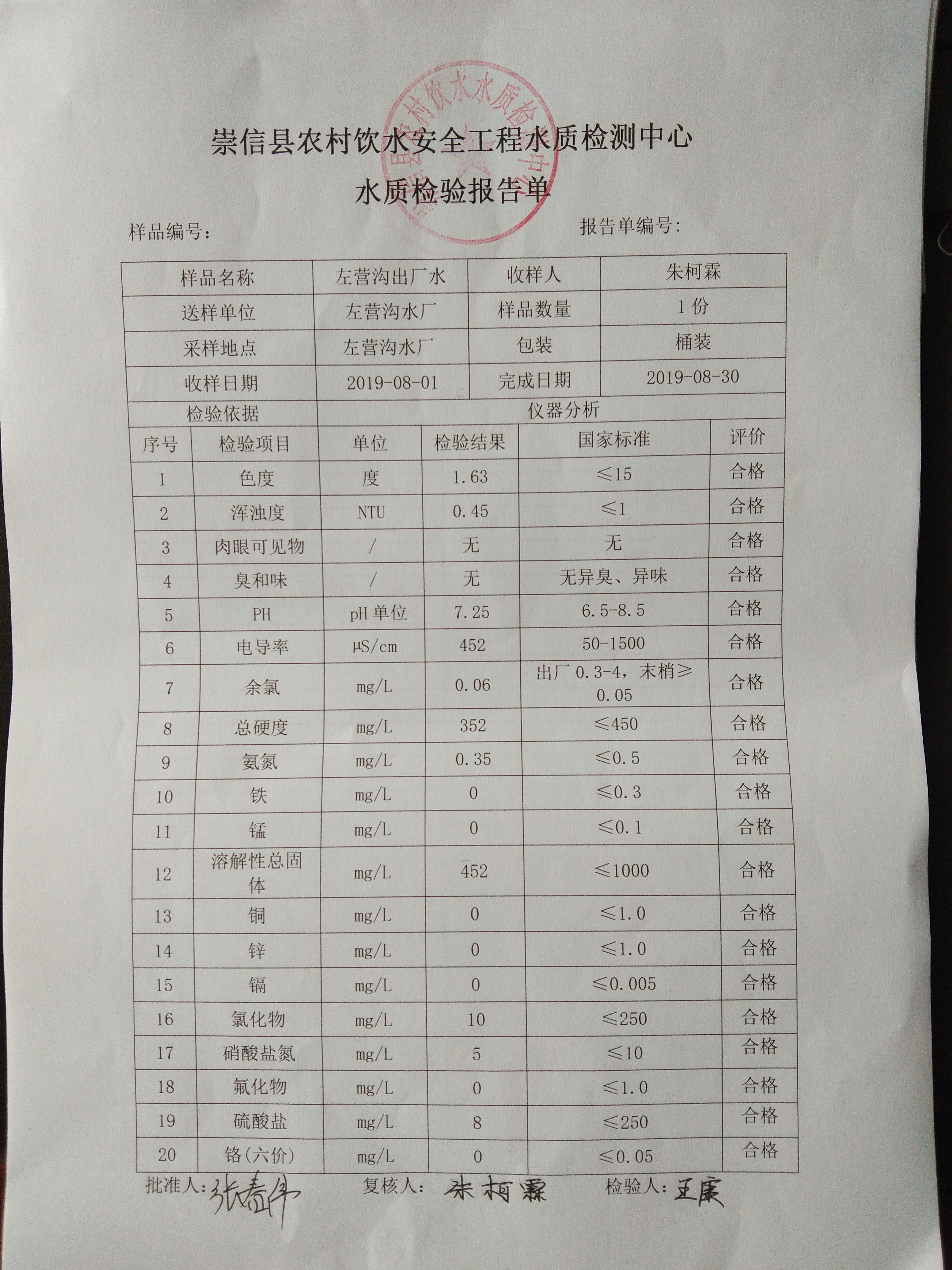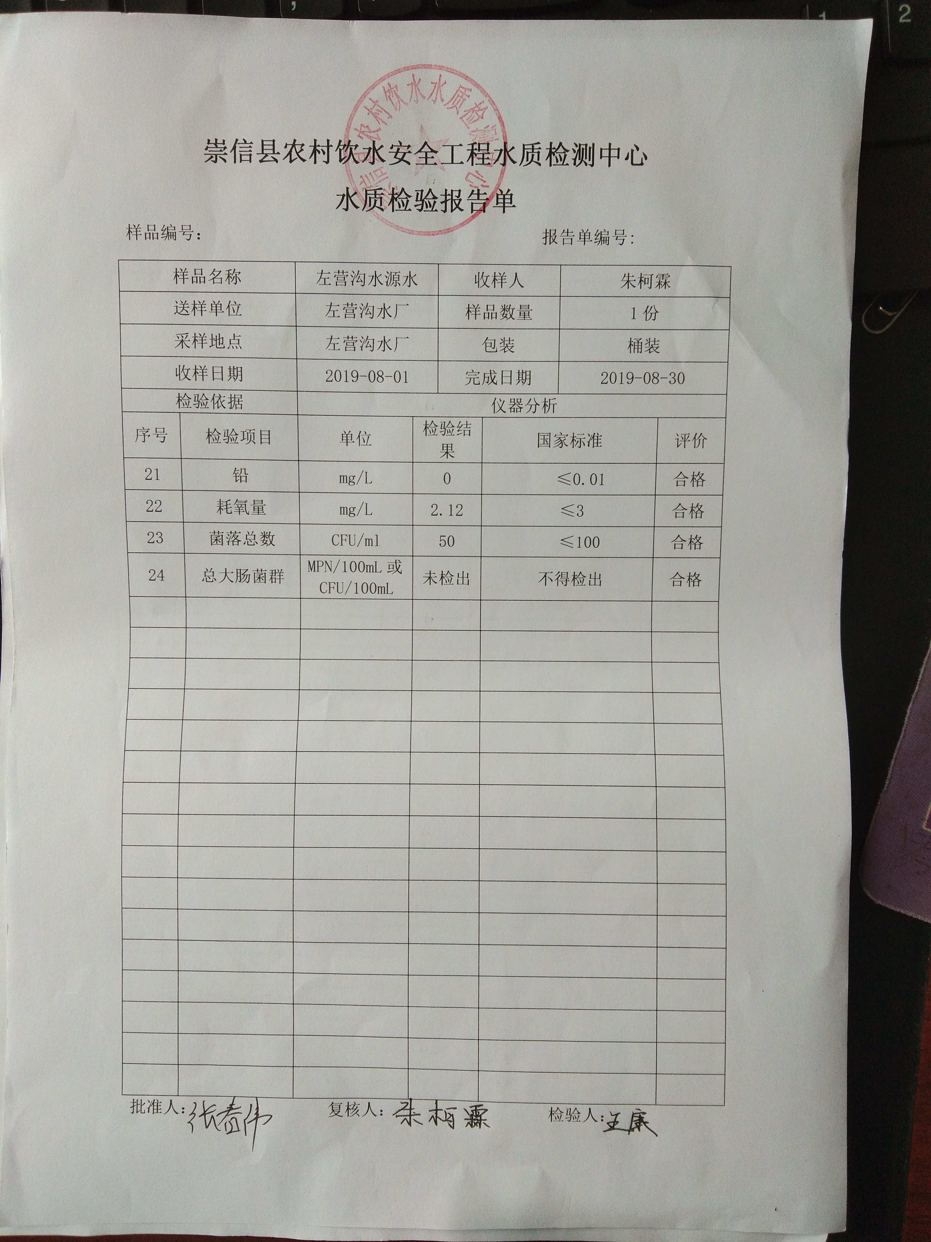 2019年8月份左营沟水厂水质检测报告单 发文日期:2019-09-05 00:00 来源:崇信县水务局 作者:崇信水务局 编辑:崇信水务局 IMG_20190905_150220 IMG_20190905_150227 IMG_20190905_150233 IMG_20190905_150243 IMG_20190905_150255 IMG_20190905_150302 扫一扫在手机打开当前页 上一篇: 2019年8月份散花沟水厂水质检测报告单 下一篇: 2019年8月份杜家沟水厂水质检测报告单