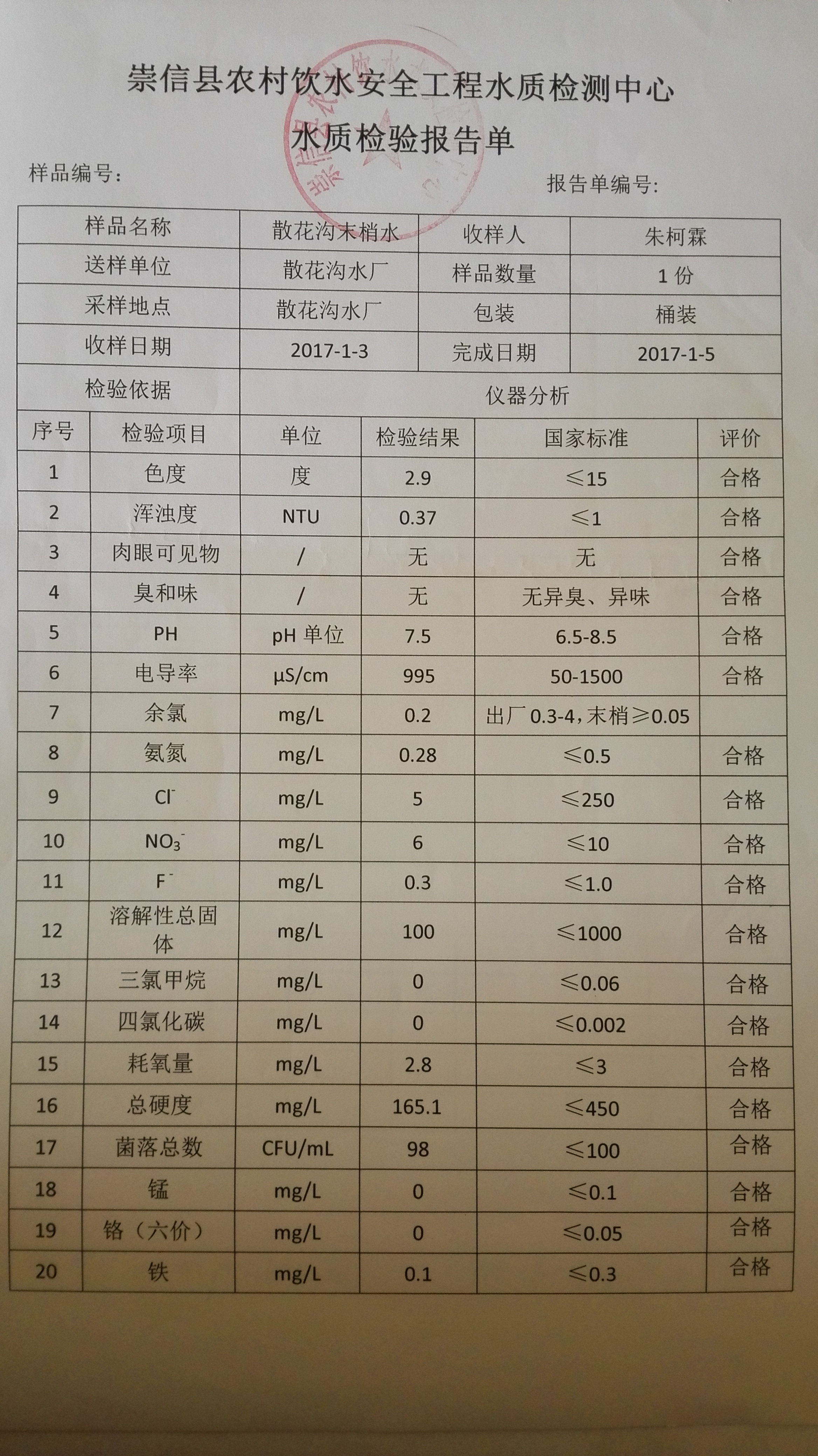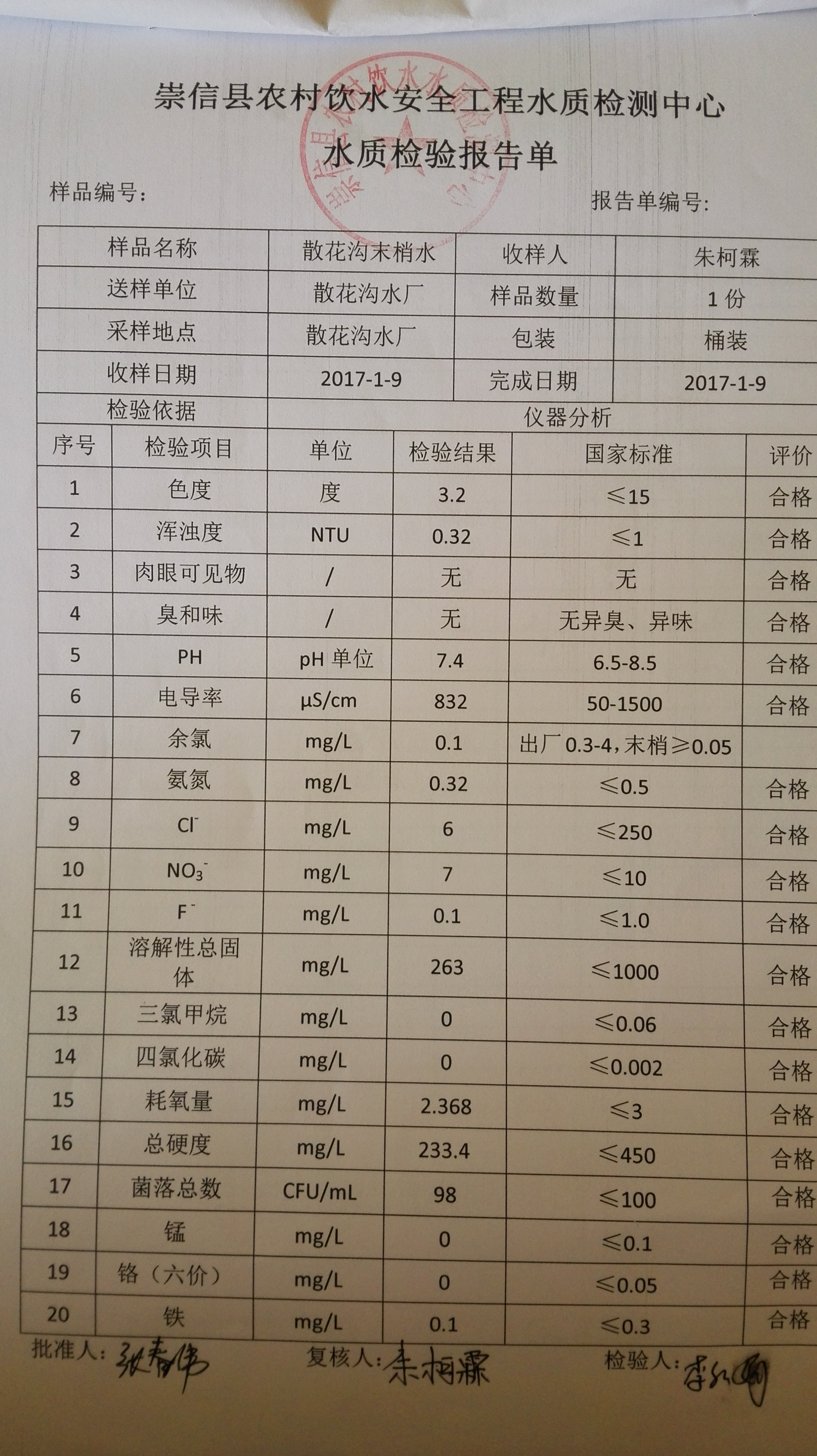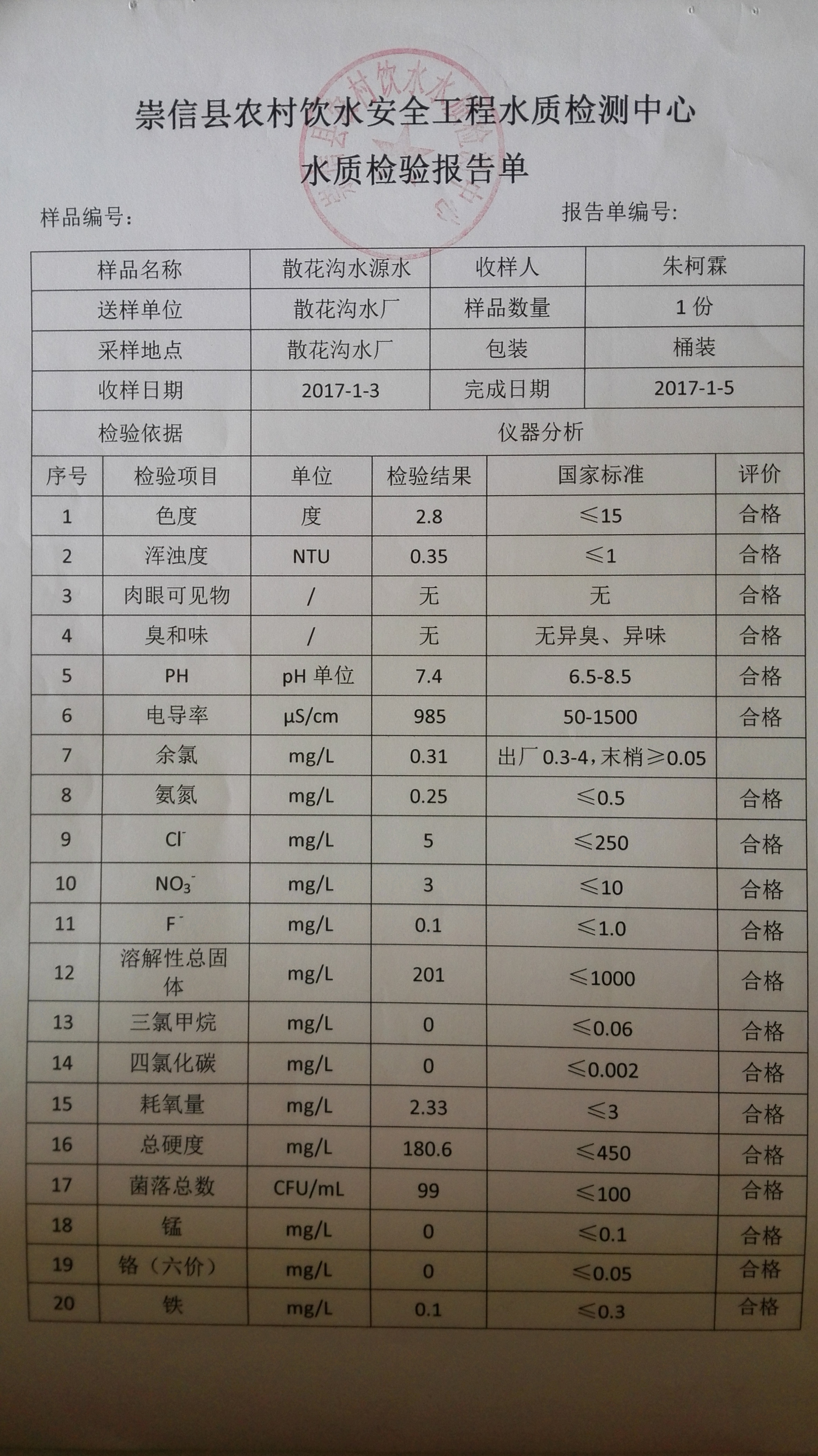 2017年1月散花沟水厂水质检测报告单 发文日期:2017-09-28 16:04 来源:崇信县水务局 作者:崇信水务局 编辑:崇信水务局 1506584508876 1506584554968 1506584589430 1506584614848 1506584635369 1506584647973 1506584674792 1506584693884 1506584713188 扫一扫在手机打开当前页 上一篇: 2017年2月份散花沟水厂水质检测报告单 下一篇: 2017年6月份左营沟水厂水质检测报告单