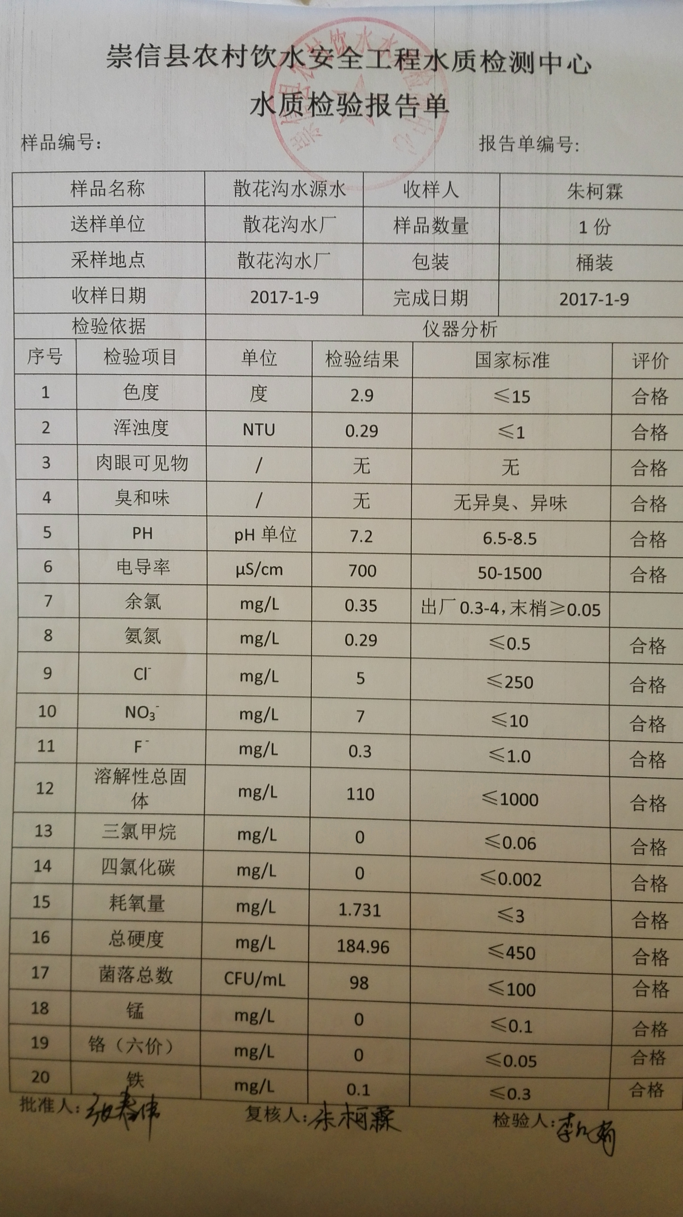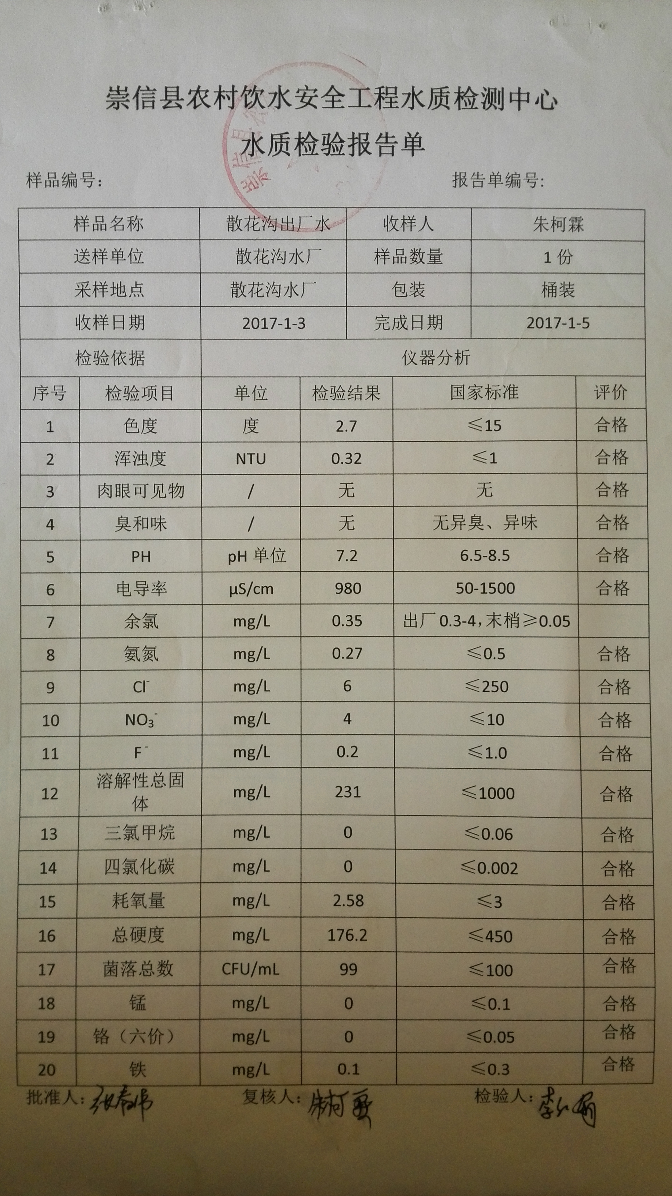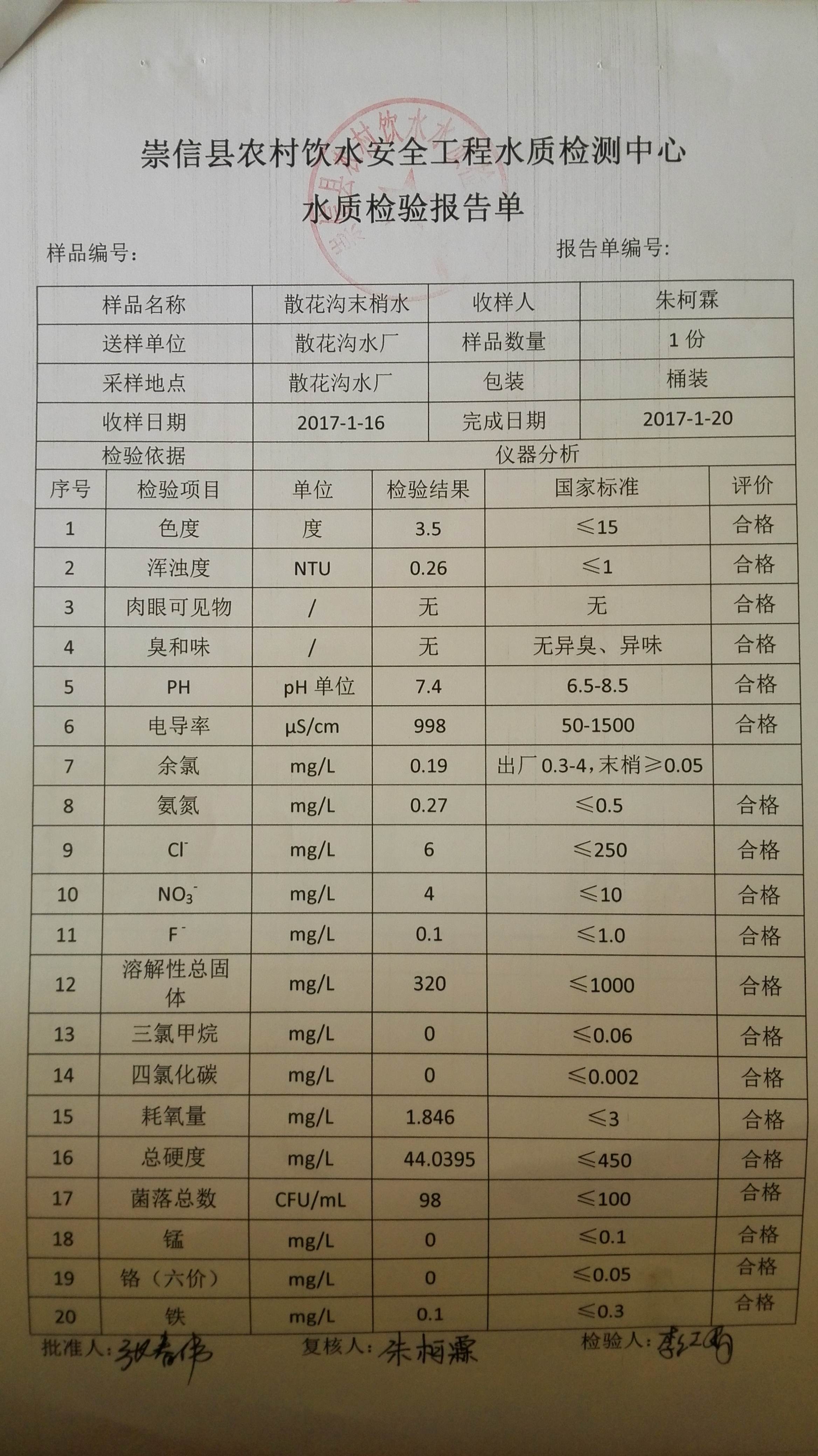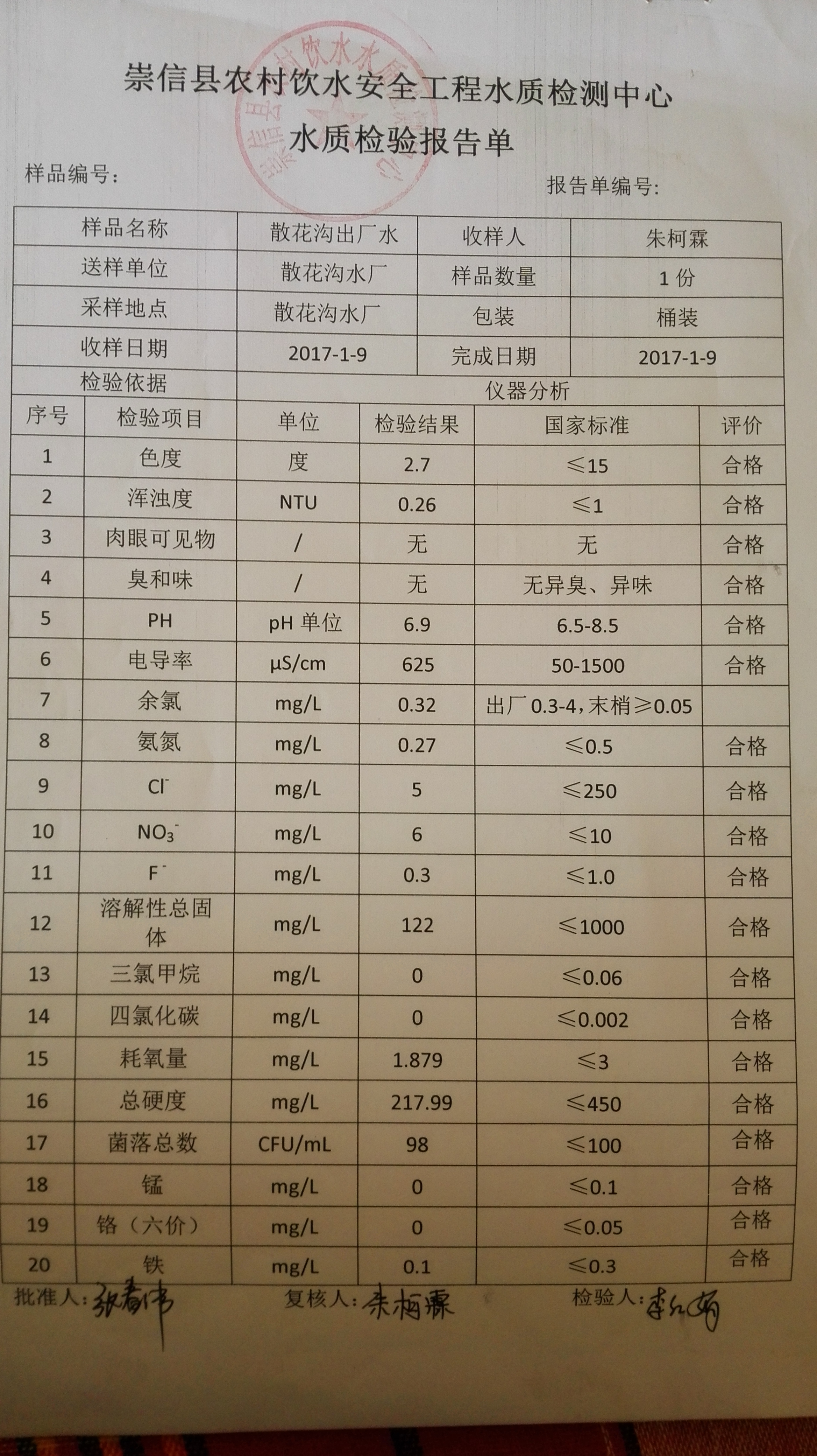 2017年1月散花沟水厂水质检测报告单 发文日期:2017-09-28 16:04 来源:崇信县水务局 作者:崇信水务局 编辑:崇信水务局 1506584508876 1506584554968 1506584589430 1506584614848 1506584635369 1506584647973 1506584674792 1506584693884 1506584713188 扫一扫在手机打开当前页 上一篇: 2017年2月份散花沟水厂水质检测报告单 下一篇: 2017年6月份左营沟水厂水质检测报告单