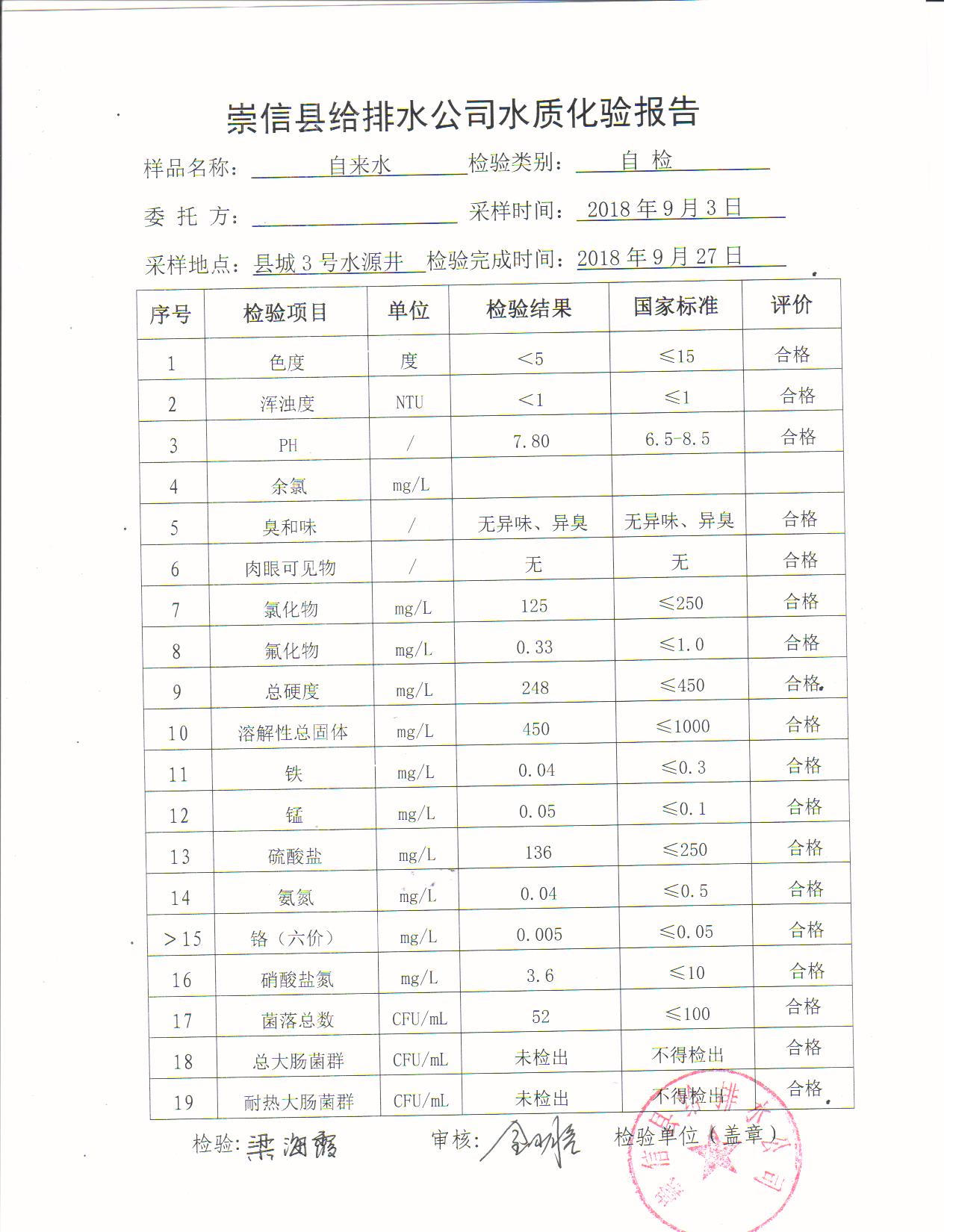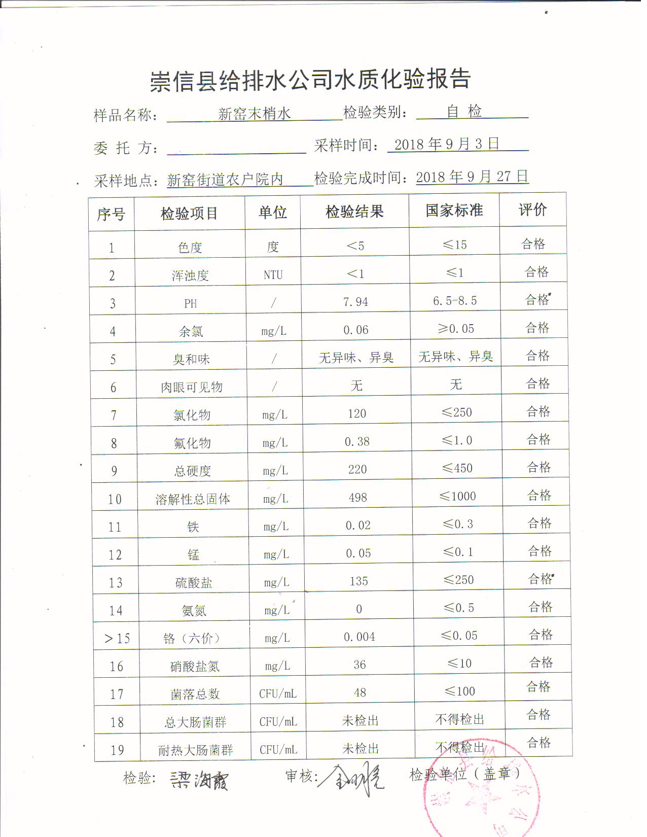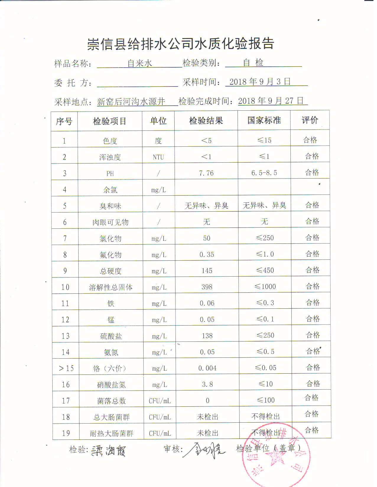 9月份水质化验报告 发文日期:2018-09-29 18:24 来源:崇信县住房和城乡建设局 作者:崇信住建局 编辑:崇信住建局 照片 001 照片 002 照片 003 照片 004 照片 005 照片 扫一扫在手机打开当前页 上一篇: 2018年新窑水厂10份水质检测报告单 下一篇: 2018年杜家沟水厂9月份水质检测报告单