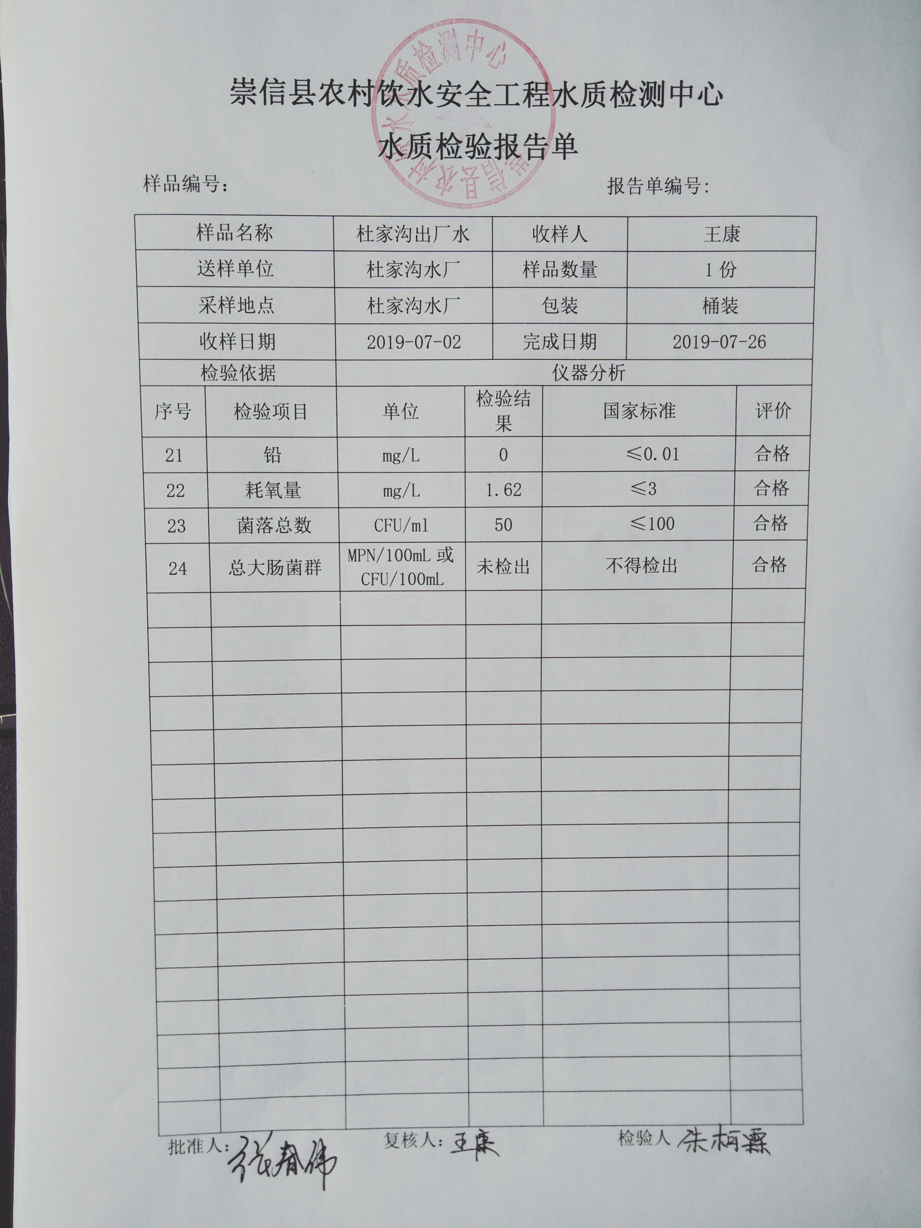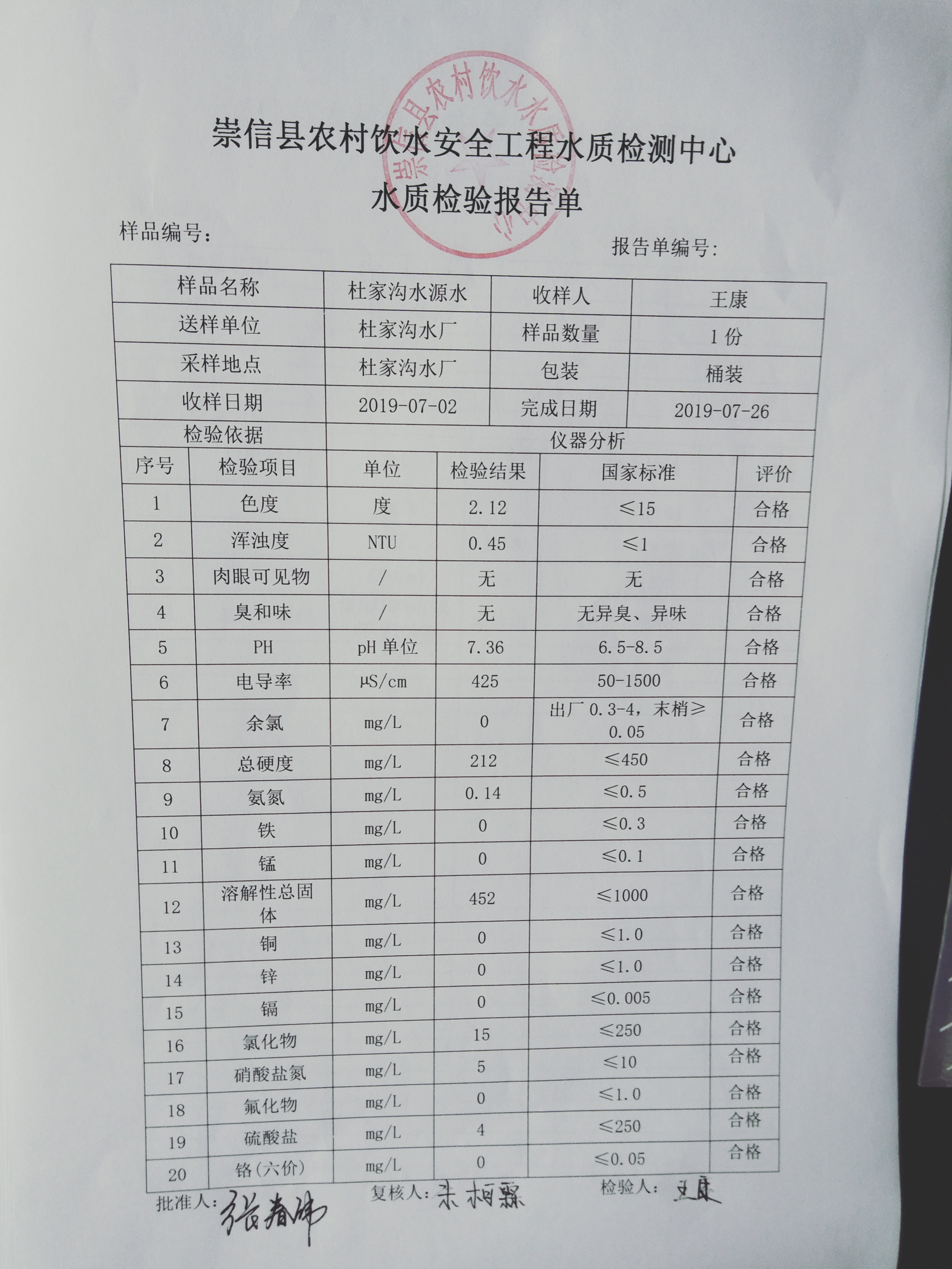 2019年7月份杜家沟水厂水质检测报告单 发文日期:2019-08-08 00:00 来源:崇信县水务局 作者:崇信水务局 编辑:崇信水务局 1565246376634 1565246397535 1565246427131 1565246448433 1565246464651 1565246483309 扫一扫在手机打开当前页 上一篇: 2019年7月份左营沟水厂水质检测报告单 下一篇: 2019年7月份新窑水厂水质检测报告单