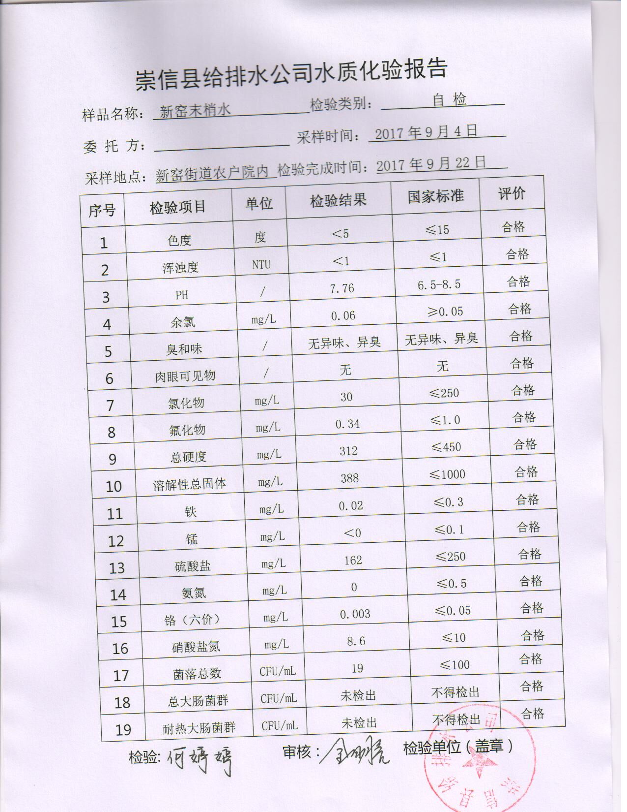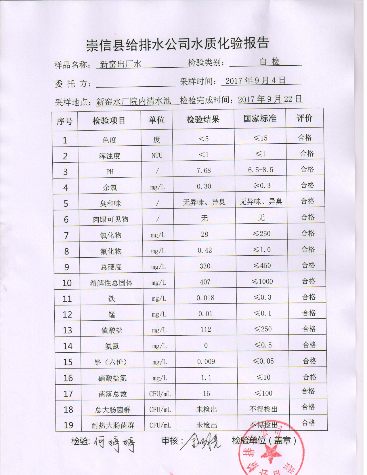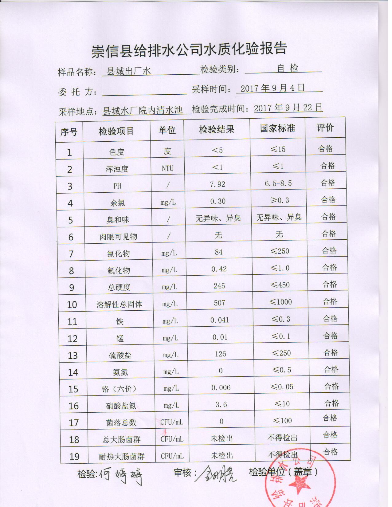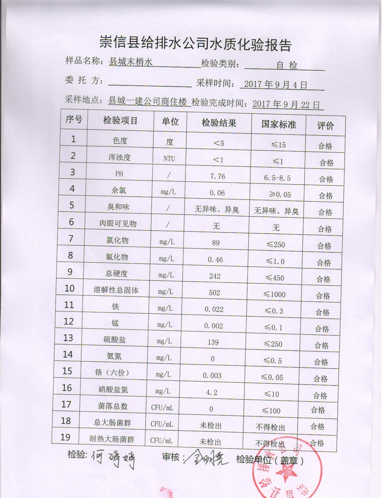 水质化验报告单 发文日期:2017-10-16 09:55 来源:崇信县住房和城乡建设局 作者:崇信住建局 编辑:崇信住建局 扫一扫在手机打开当前页 上一篇: 2017年10月左营沟水厂水质检测报告单 下一篇: 崇信县2017年农村饮水安全项目公示表