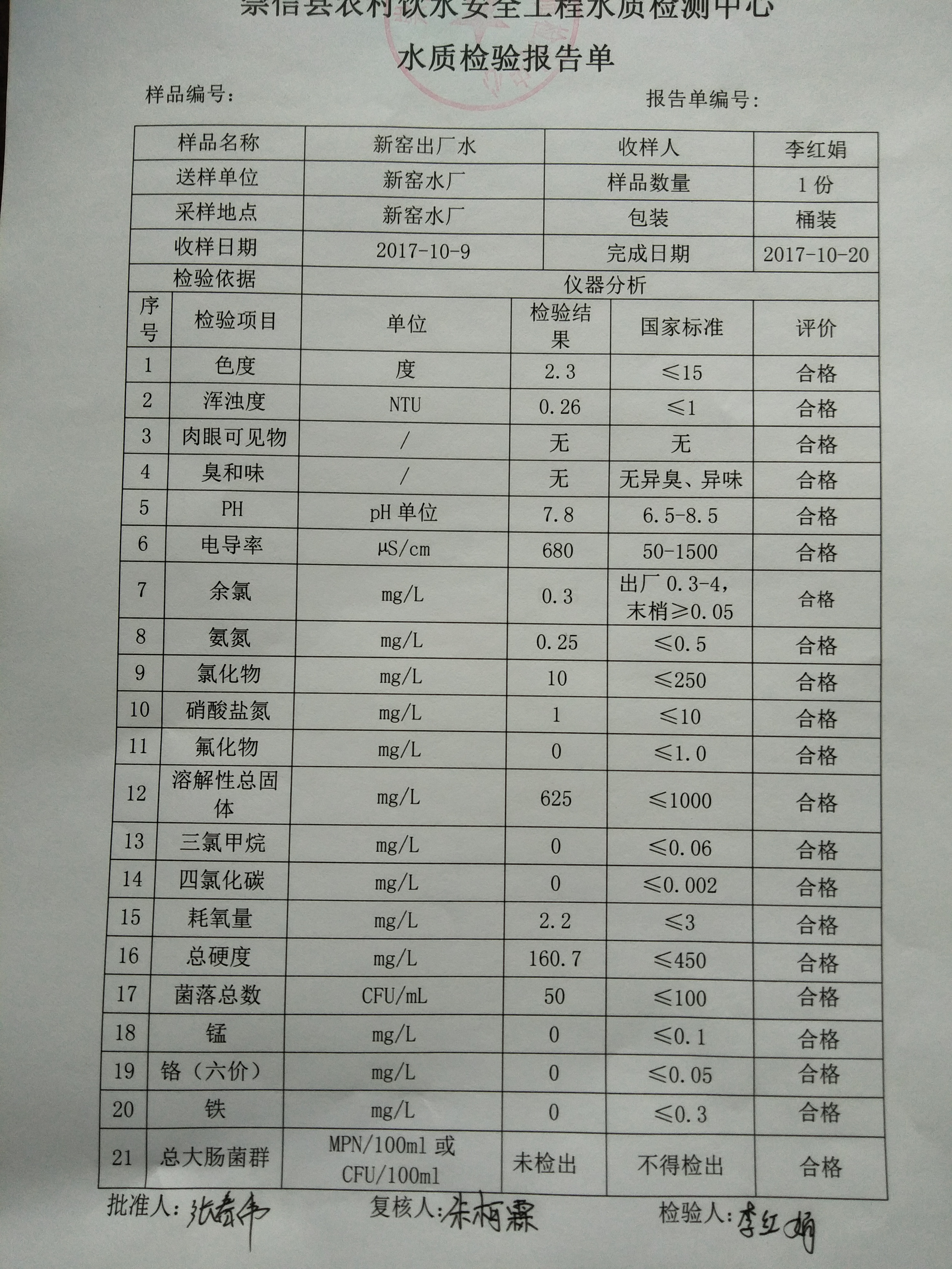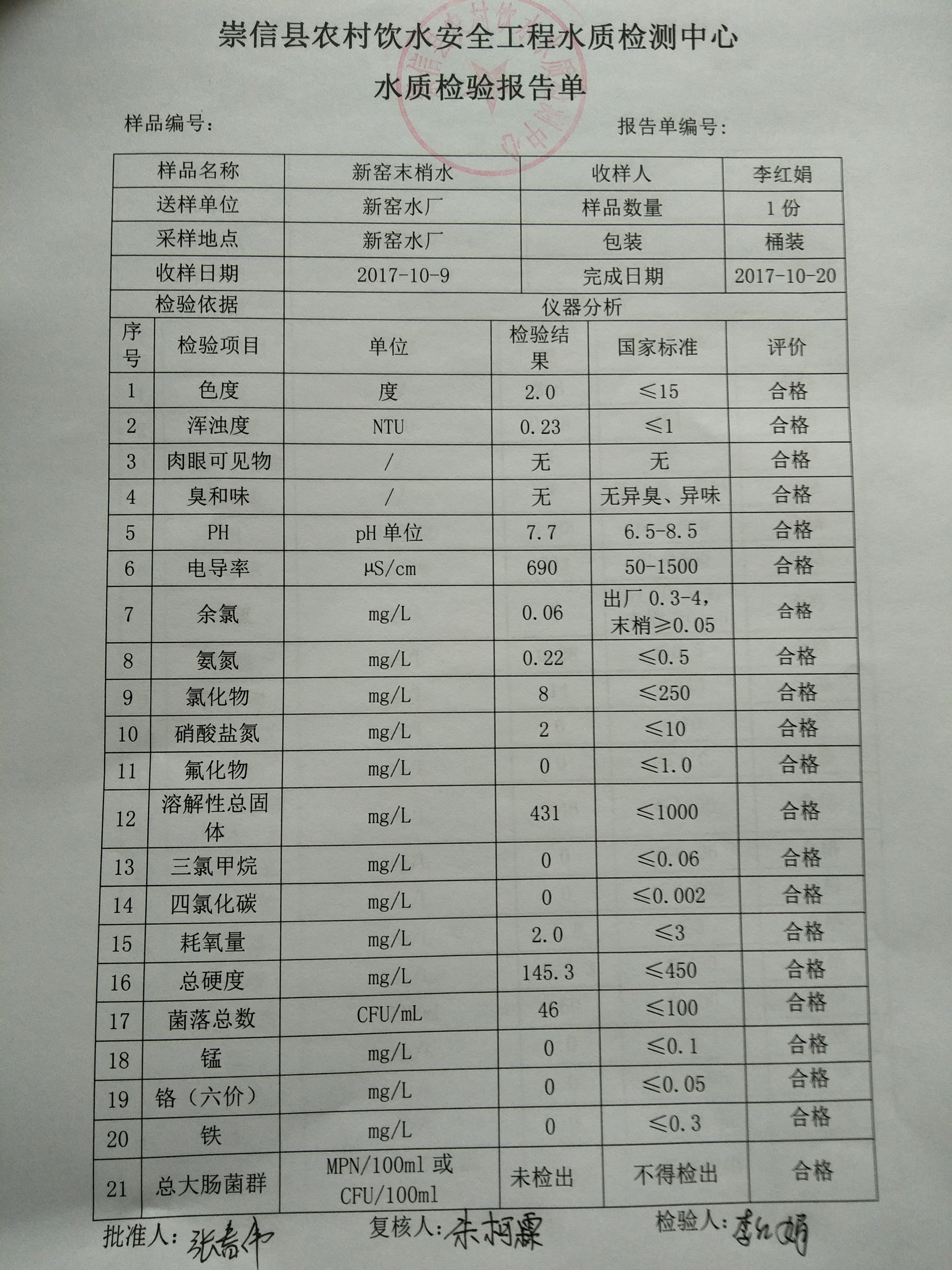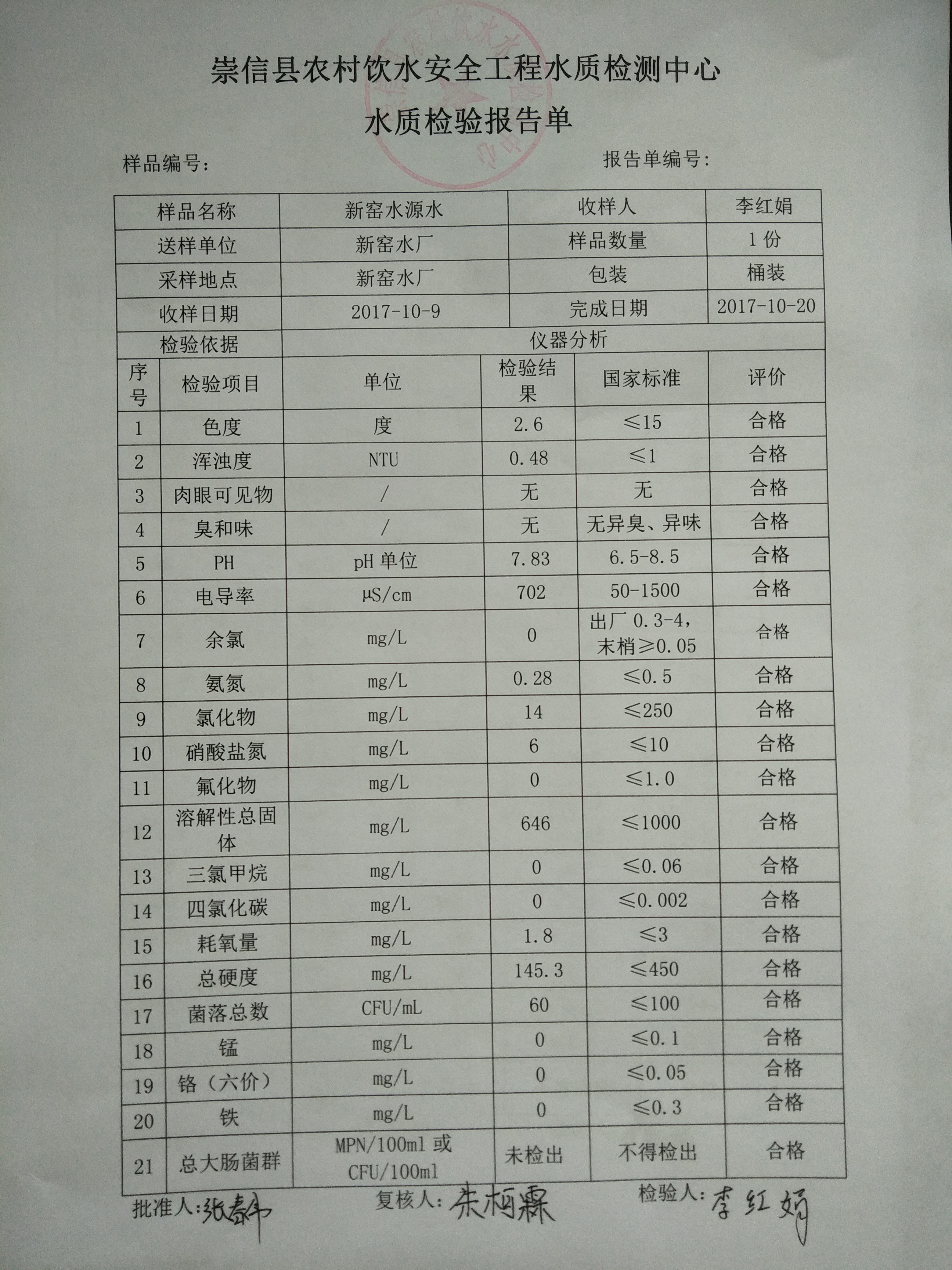 2017年10月新窑水厂水质检测报告单 发文日期:2017-11-01 12:37 来源:崇信县水务局 作者:崇信水务局 编辑:崇信水务局 1509421337101 1509421345583 1509510388223 扫一扫在手机打开当前页 上一篇: 2017年10月杜家沟水厂水质检测报告单 下一篇: 2017年10月左营沟水厂水质检测报告单