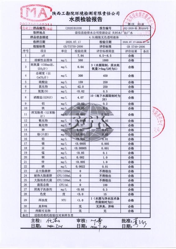 第三方水质化验检测报告 发文日期:2020-08-11 00:00 来源:崇信县住房和城乡建设局 作者:崇信住建局 编辑:崇信住建局 02 01 扫一扫在手机打开当前页 上一篇: 2020年8月份水质化验报告单 下一篇: 2020年7月份水质化验报告单