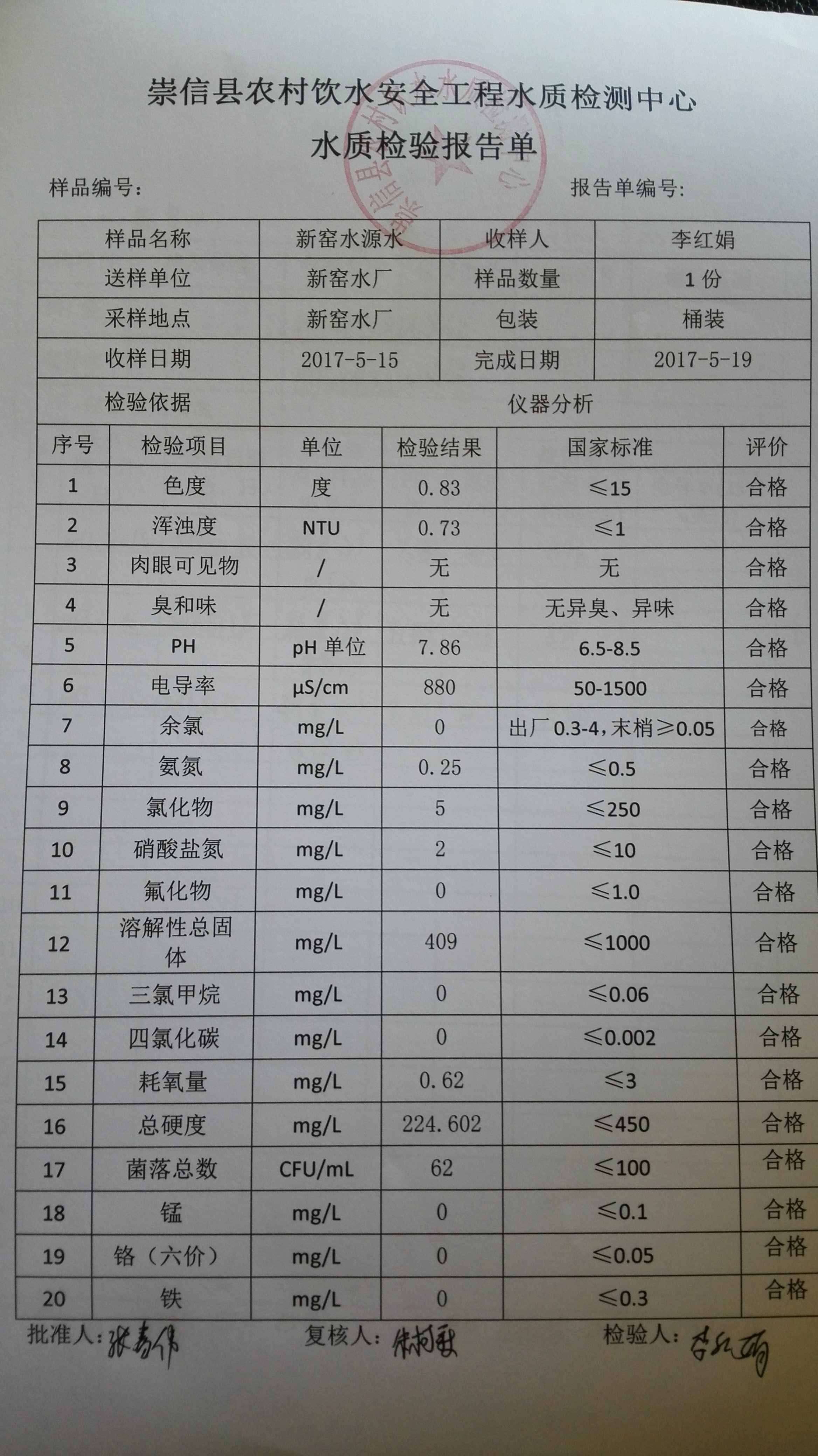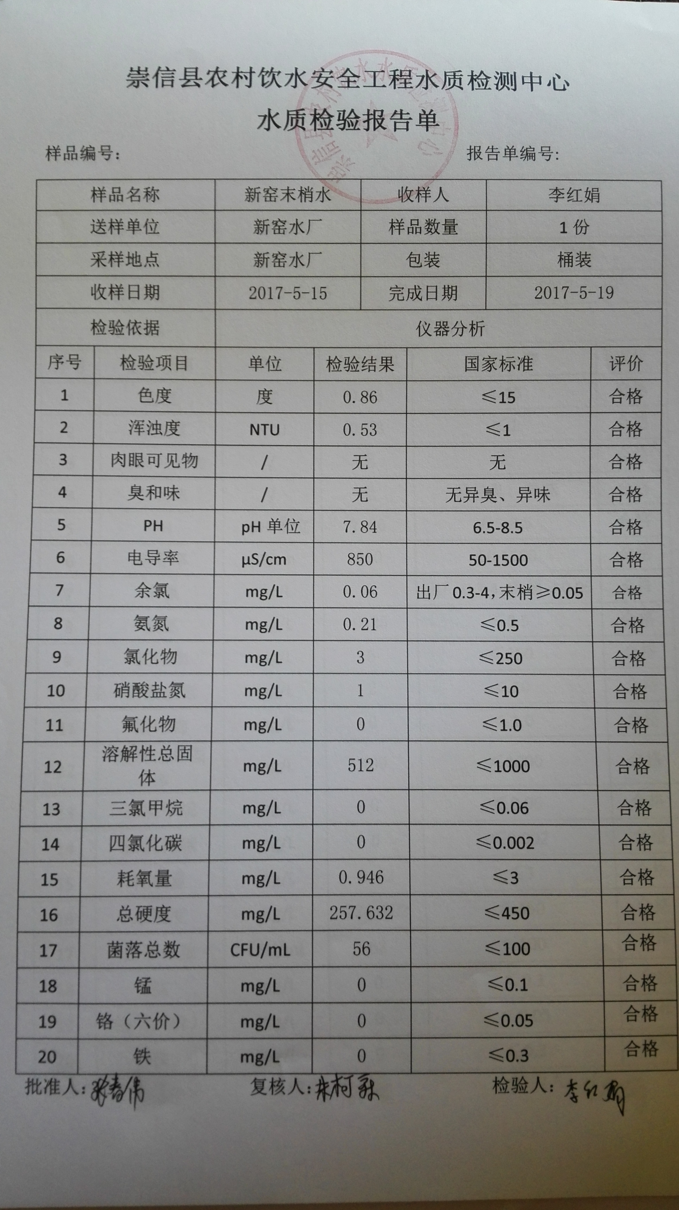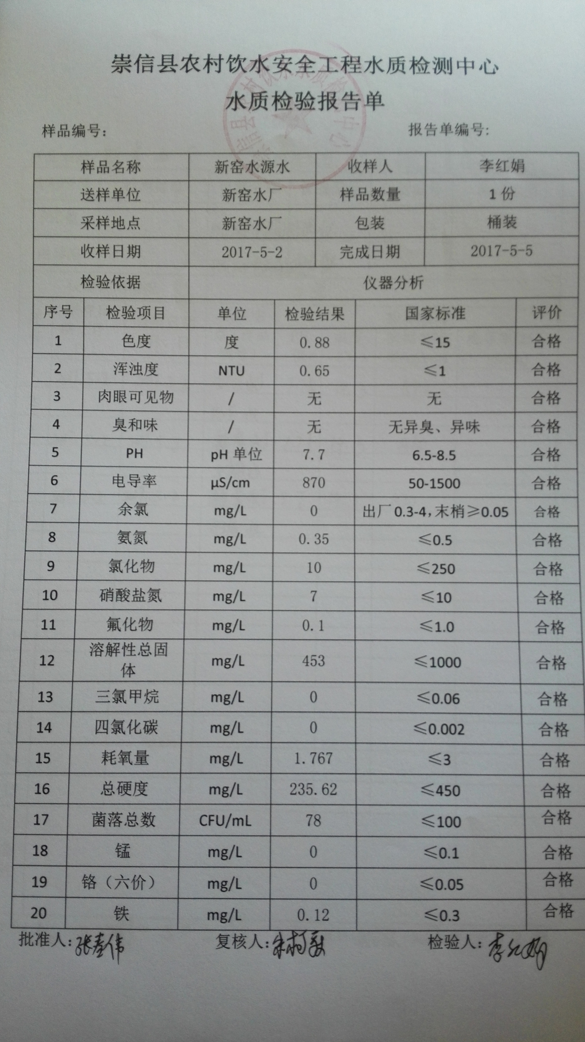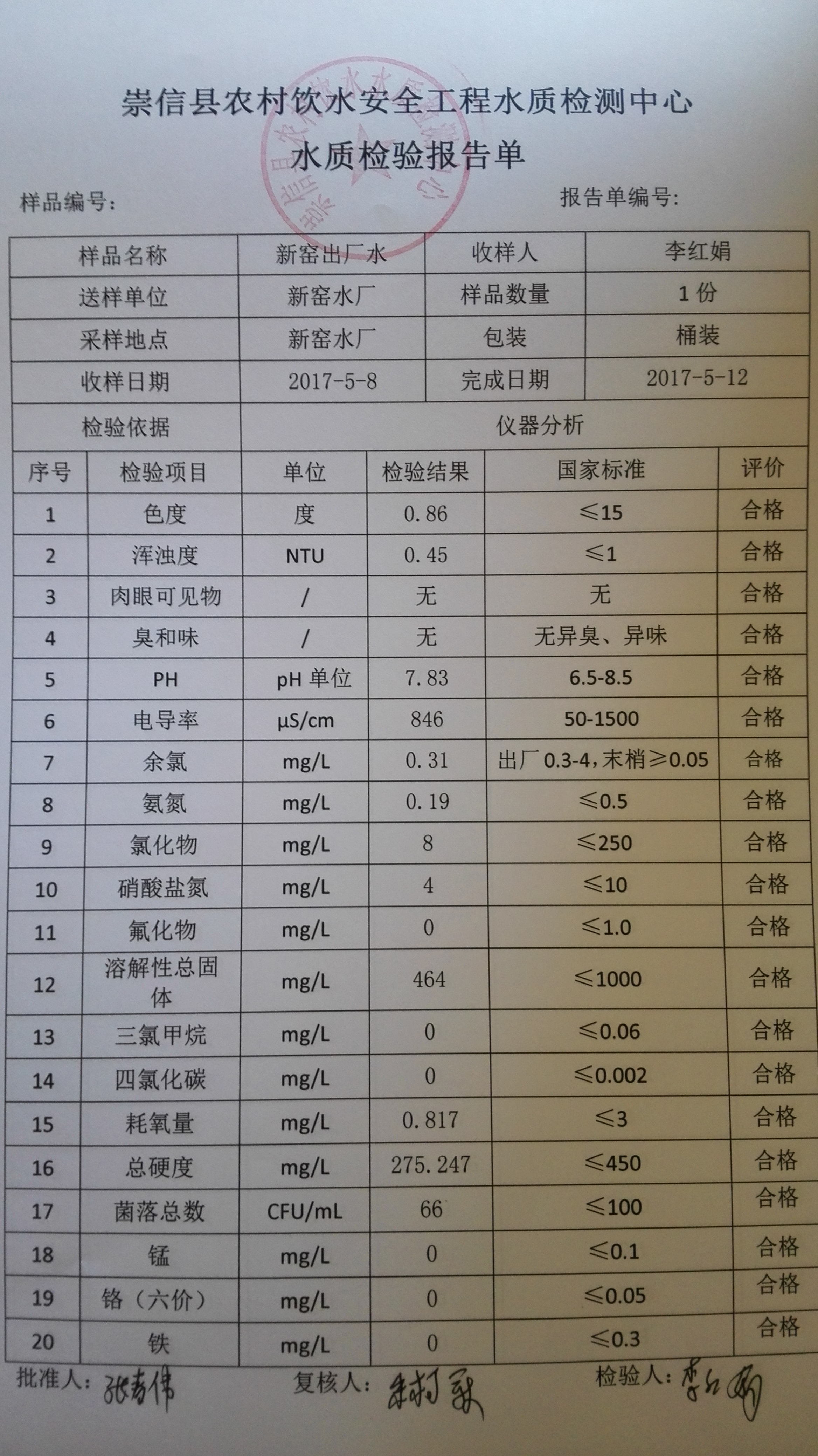 2017年5月份新窑水厂水质检测报告单 发文日期:2017-09-28 12:05 来源:崇信县水务局 作者:崇信水务局 编辑:崇信水务局 1506569522888 1506569543415 1506569594032 1506569615634 1506569670365 1506569716120 1506569742270 1506569439468 1506569469942 扫一扫在手机打开当前页 上一篇: 2017年6月份新窑水厂水质检测报告单 下一篇: 2017年4月份新窑水厂水质检测报告单