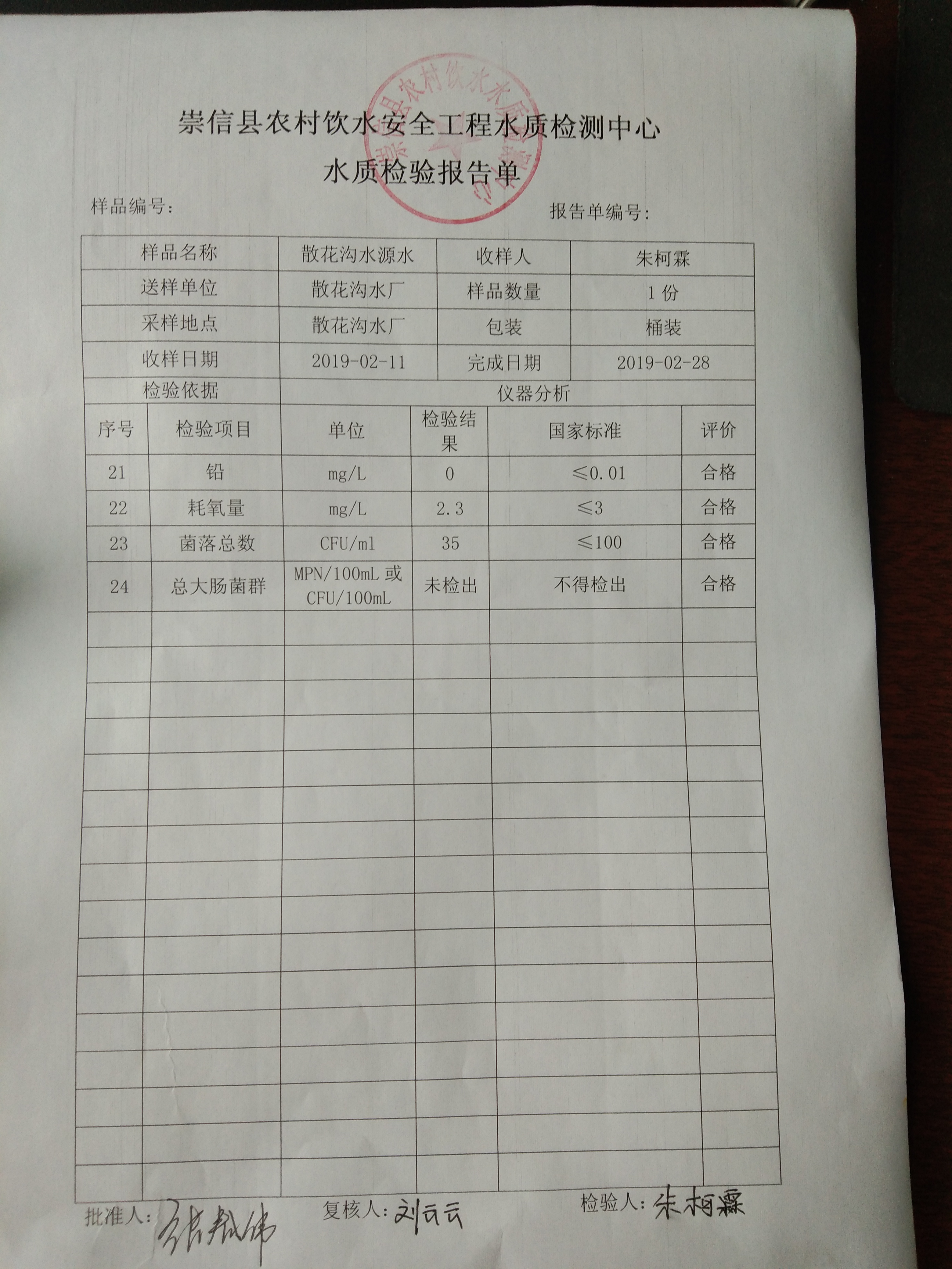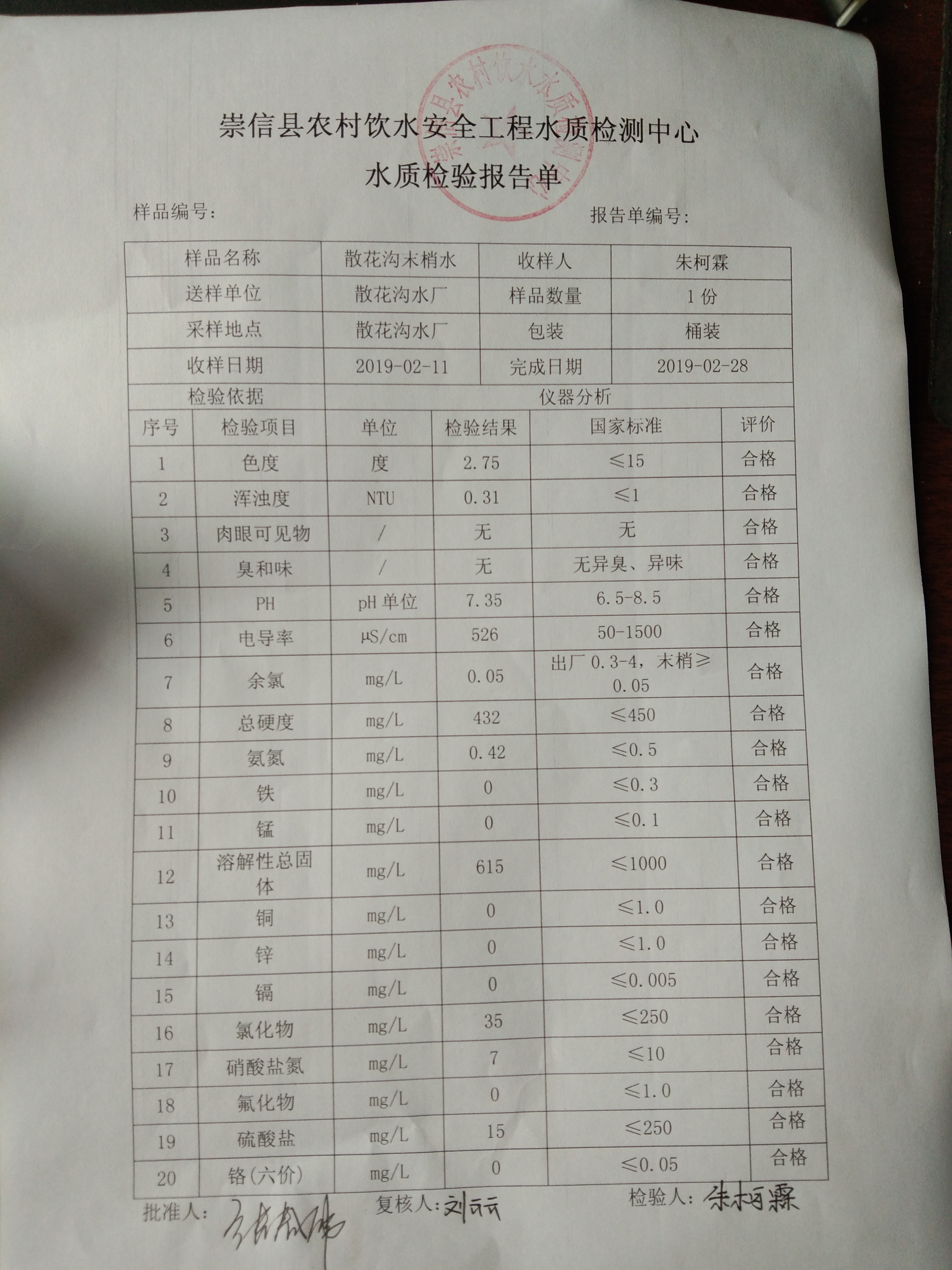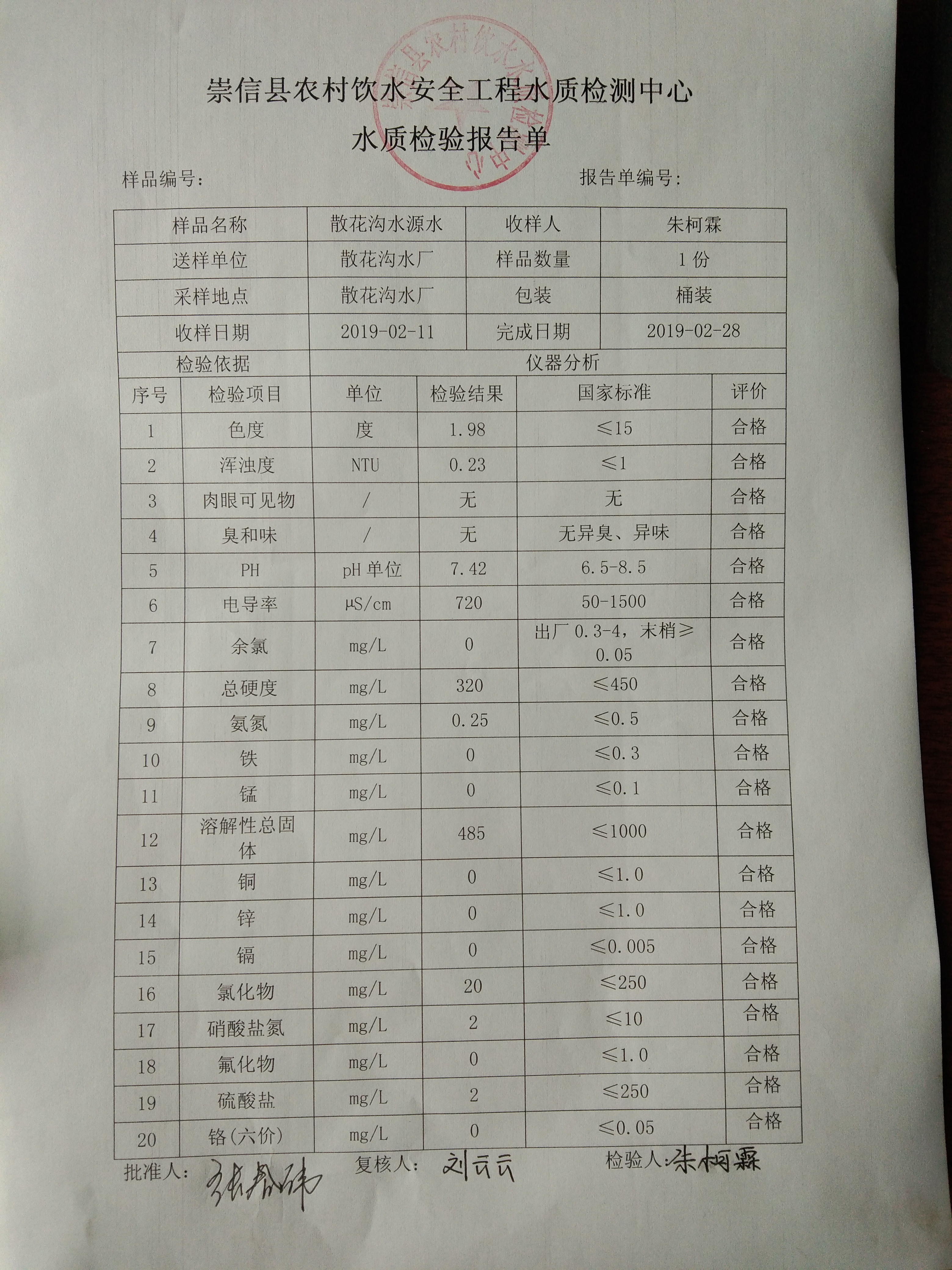 2019年2月份散花沟水厂水质检测报告单 发文日期:2019-03-08 17:30 来源:崇信县水务局 作者:崇信水务局 编辑:崇信水务局 IMG_20190308_172231 IMG_20190308_172243 IMG_20190308_172250 IMG_20190308_172258 IMG_20190308_172304 IMG_20190308_172314 扫一扫在手机打开当前页 上一篇: 2019年2月份杜家沟水厂水质检测报告单 下一篇: 2019年2月份新窑水质检测报告单