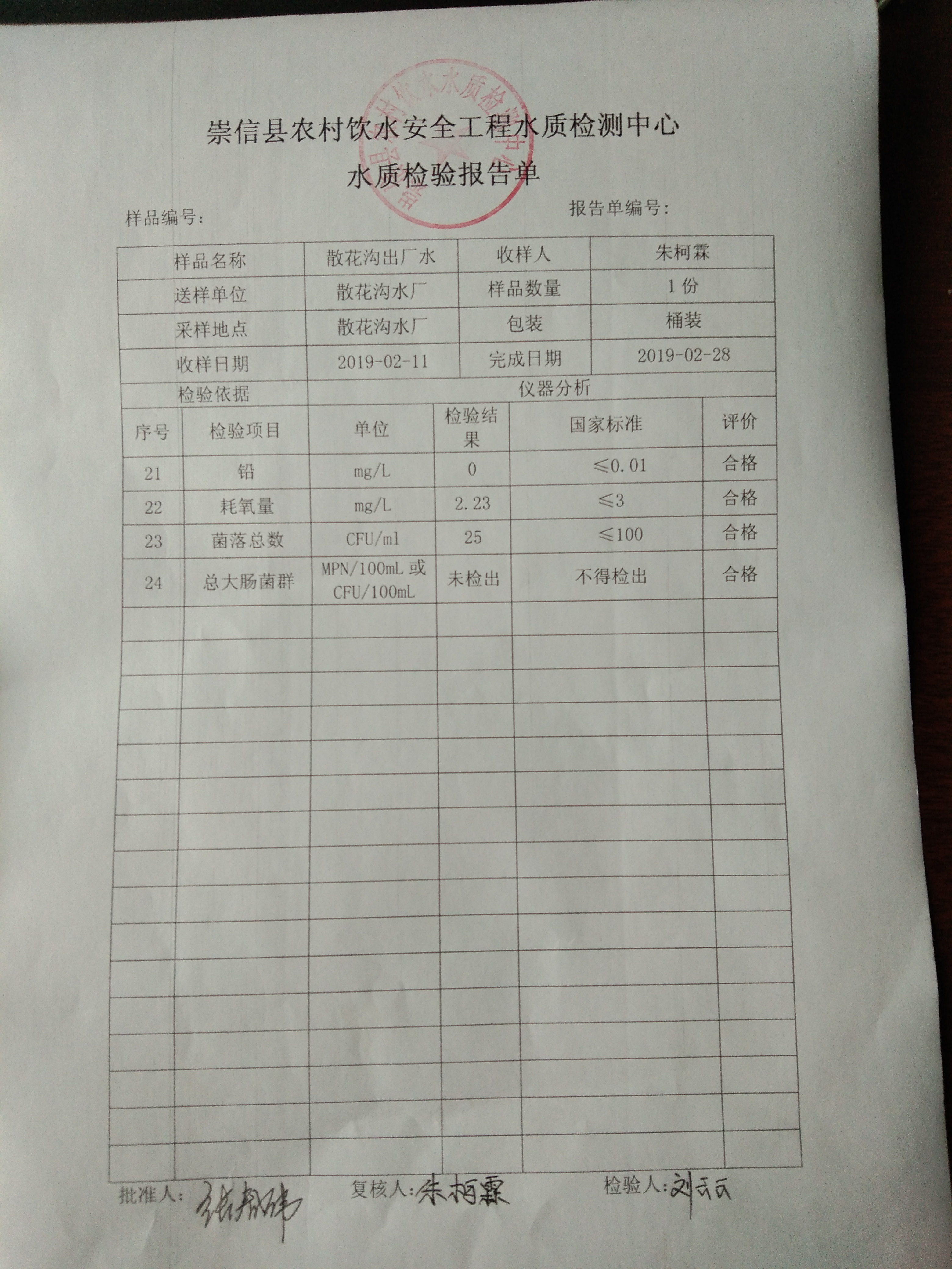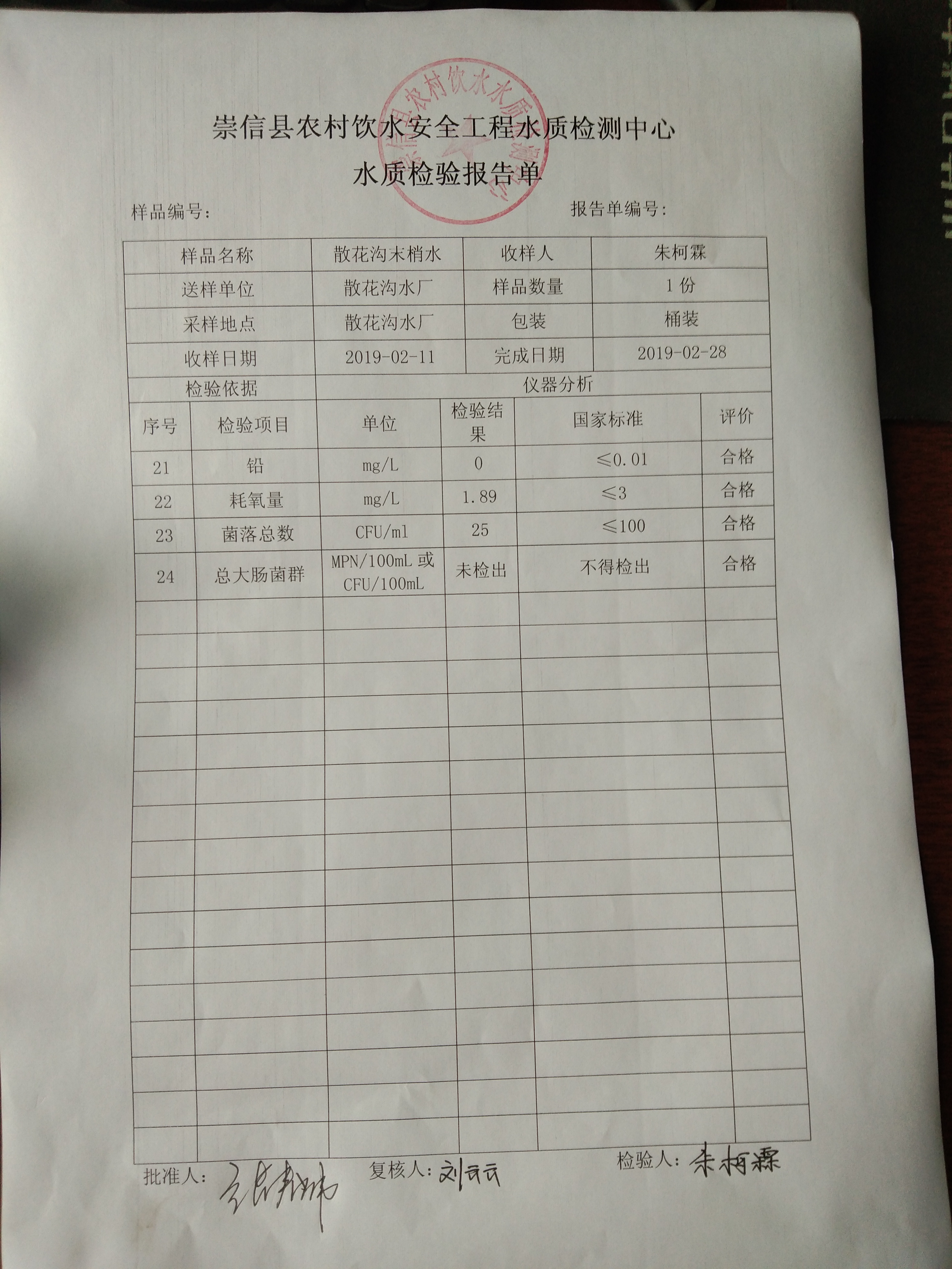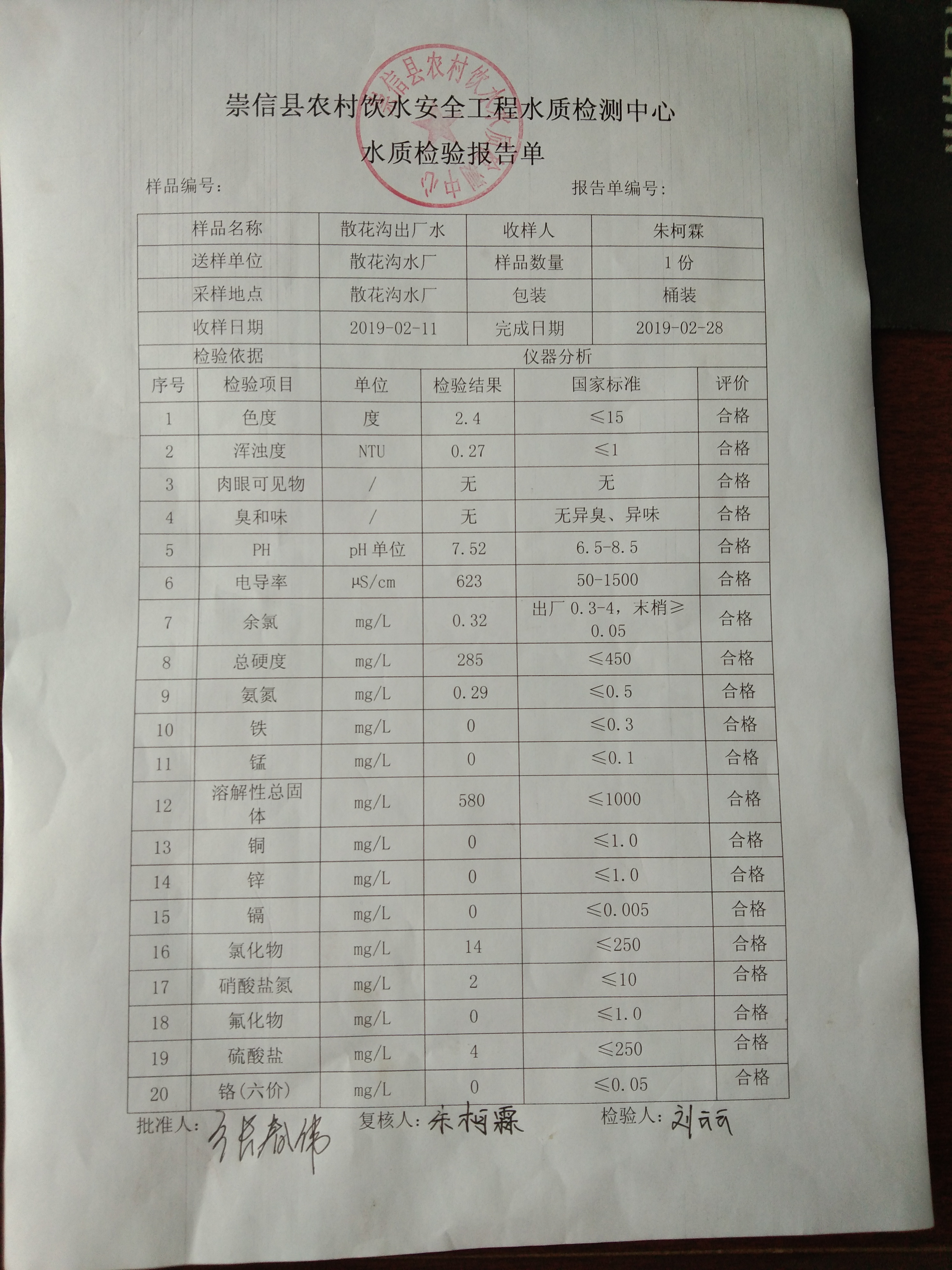 2019年2月份散花沟水厂水质检测报告单 发文日期:2019-03-08 17:30 来源:崇信县水务局 作者:崇信水务局 编辑:崇信水务局 IMG_20190308_172231 IMG_20190308_172243 IMG_20190308_172250 IMG_20190308_172258 IMG_20190308_172304 IMG_20190308_172314 扫一扫在手机打开当前页 上一篇: 2019年2月份杜家沟水厂水质检测报告单 下一篇: 2019年2月份新窑水质检测报告单
