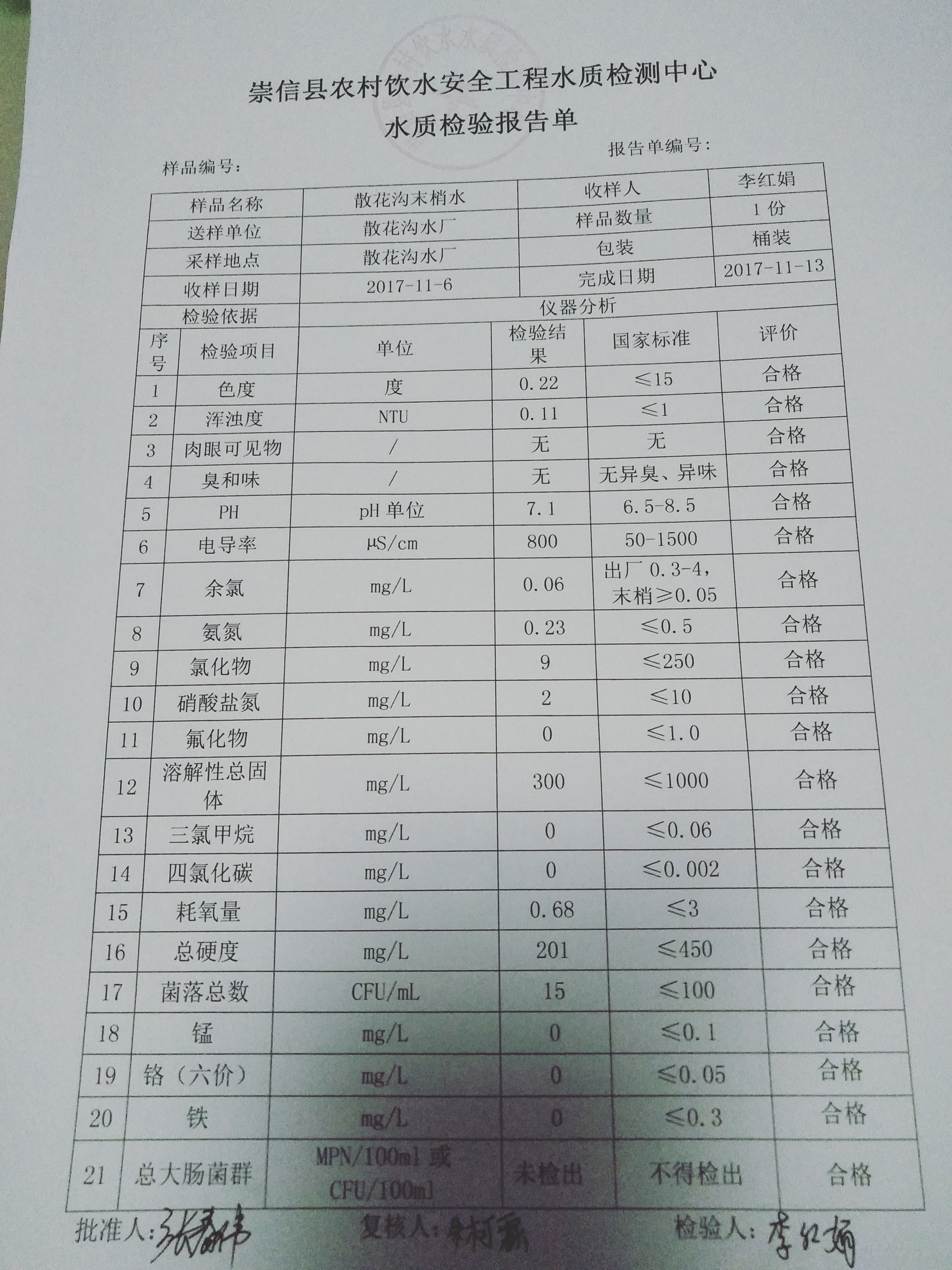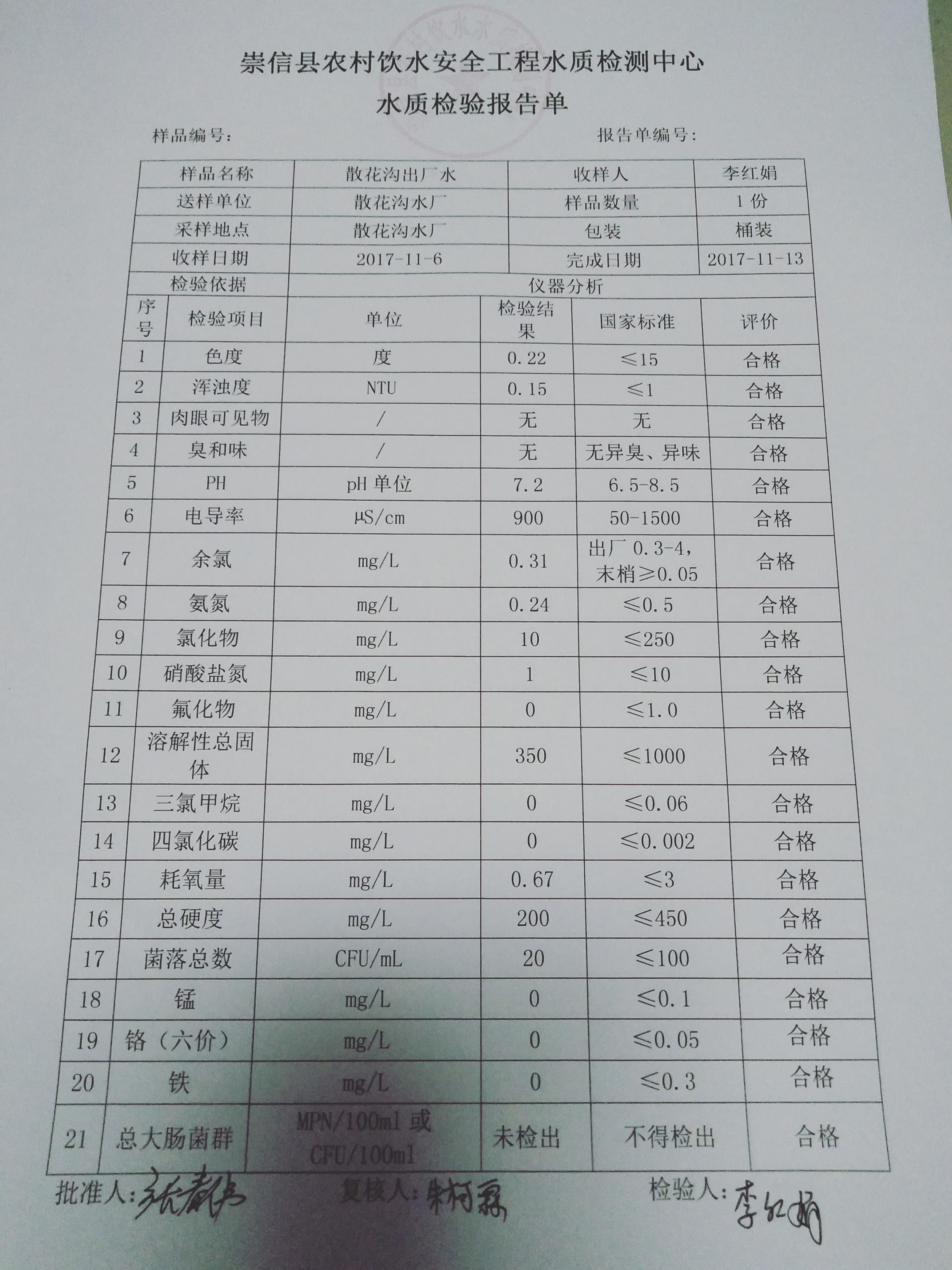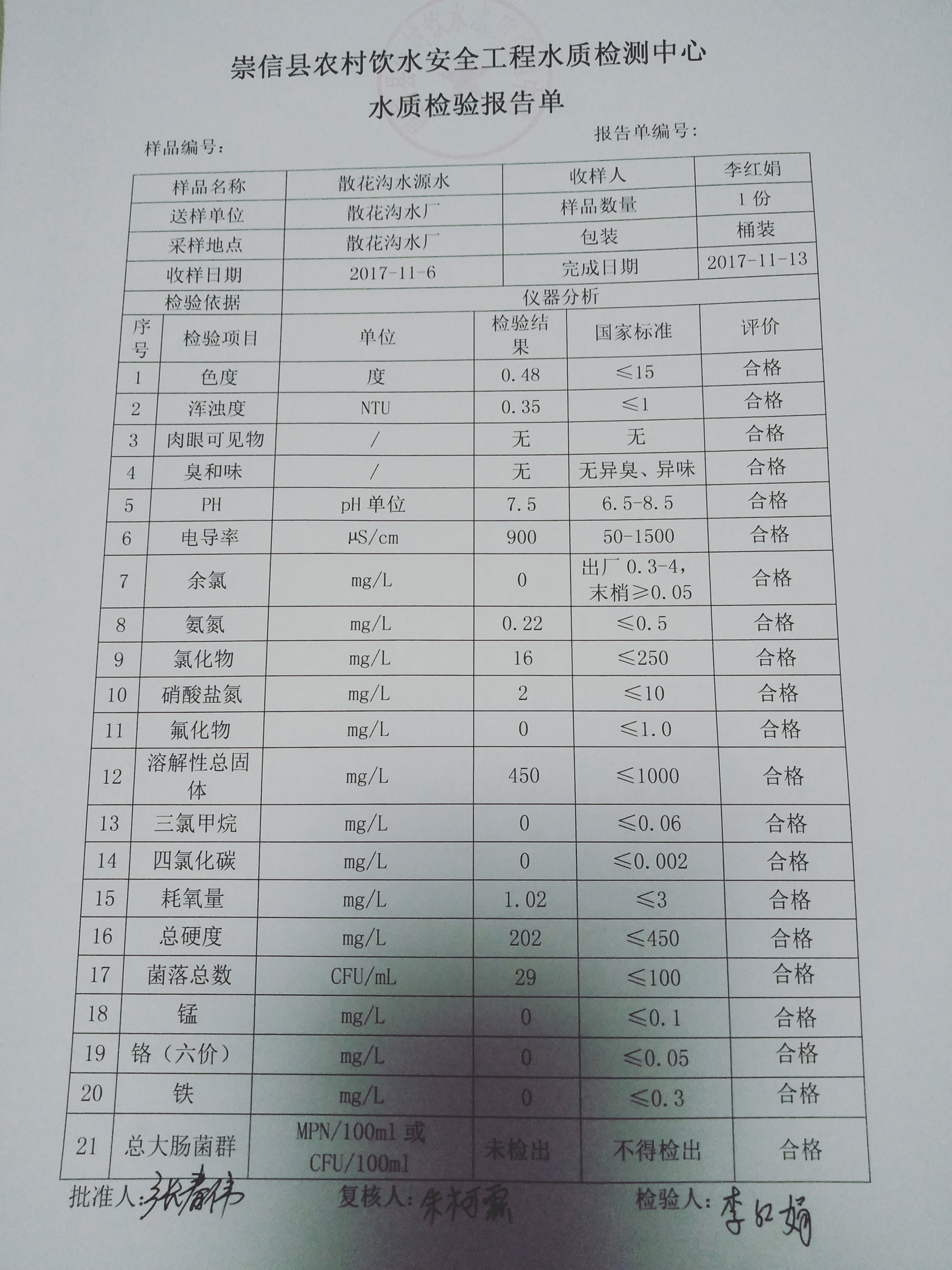 2017年11月份散花沟水厂水质检测报告单 发文日期:2018-01-30 22:59 来源:崇信县水务局 作者:崇信水务局 编辑:崇信水务局 IMG20180130222242 IMG20180130222305 IMG20180130222318 扫一扫在手机打开当前页 上一篇: 2017年12月份左营沟水厂水质检测报告单 下一篇: 2017年11月杜家沟水厂水质检测报告单