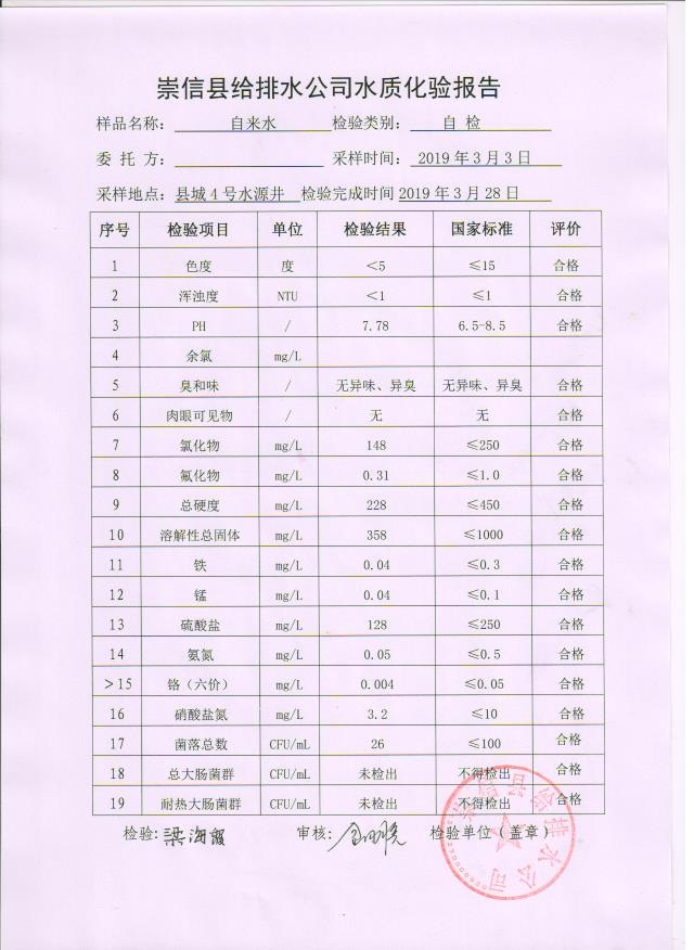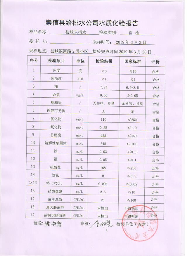 2019年3月水质化验报告单 发文日期:2019-05-08 00:00 来源:崇信县住房和城乡建设局 作者:崇信住建局 编辑:崇信住建局 1 2 3 4 5 6 扫一扫在手机打开当前页 上一篇: 2019年5月散花沟水厂水质检测报告 下一篇: 2019年左营沟水厂水质检测报告