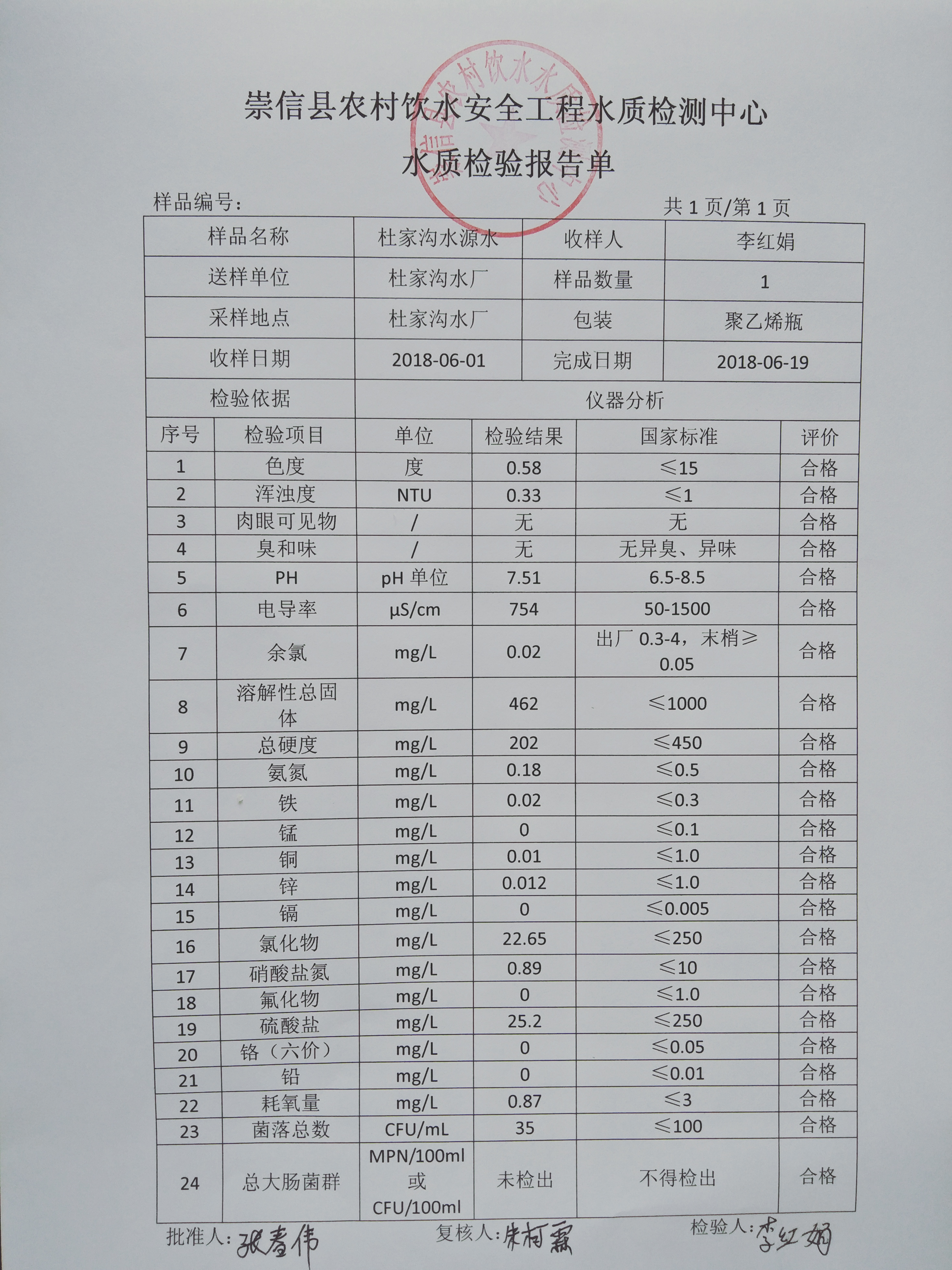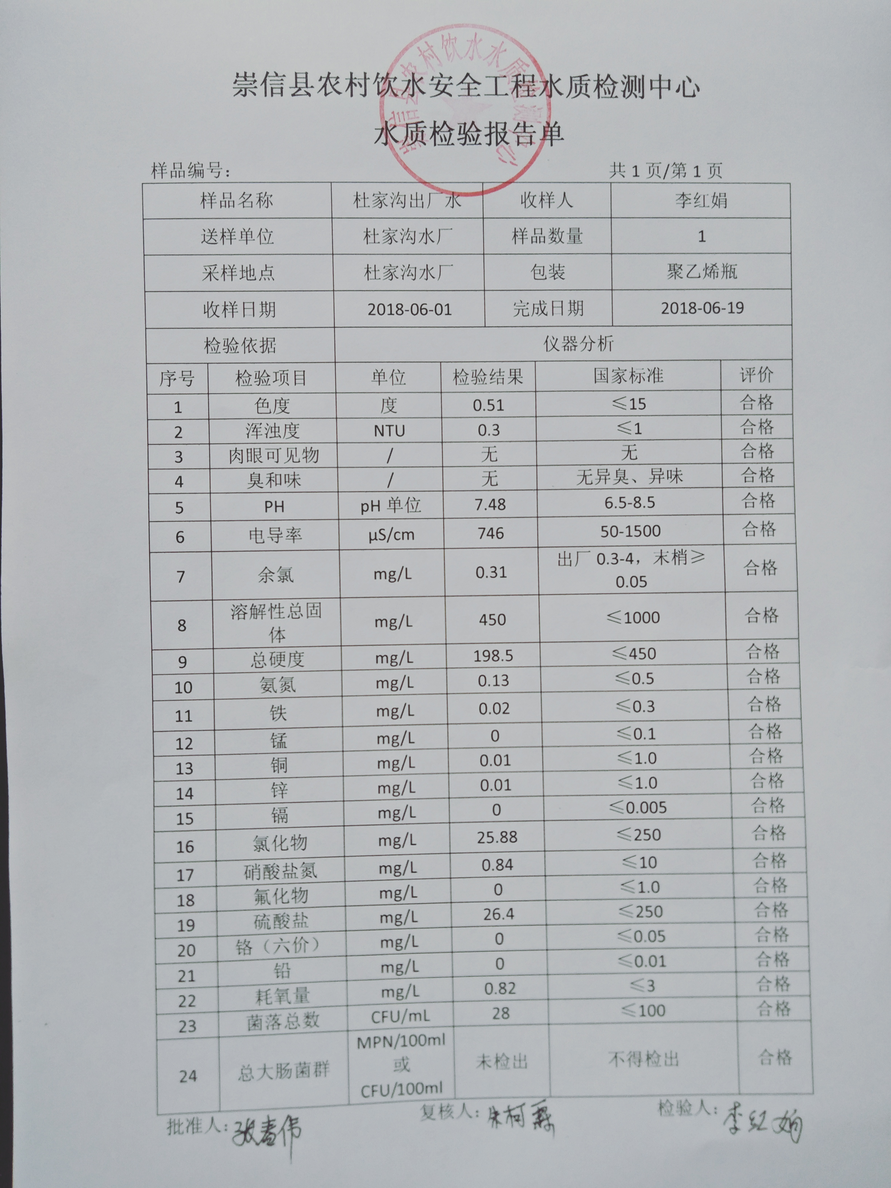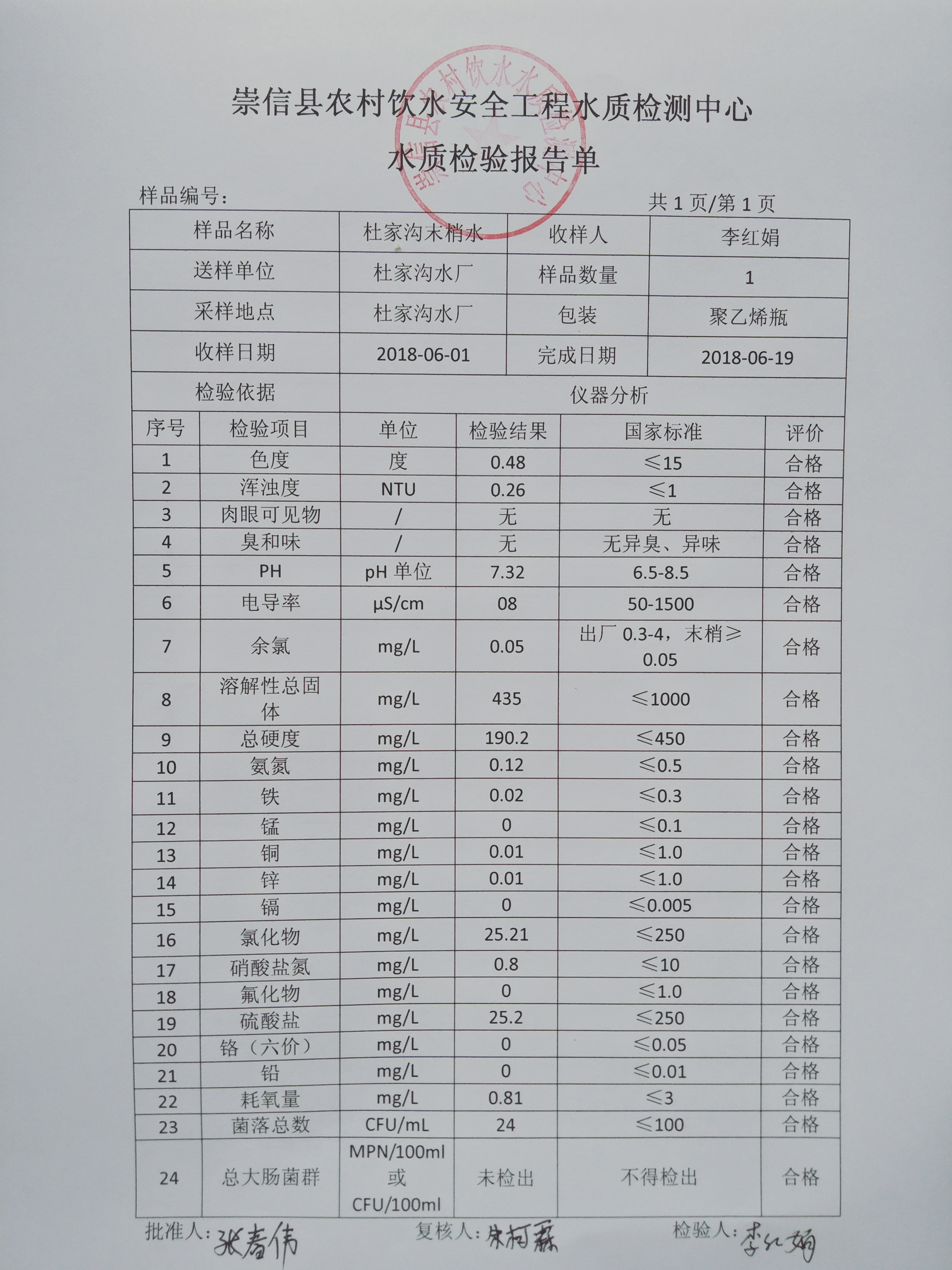2018年6月份杜家沟水厂水质检测报告单 发文日期:2018-06-28 16:39 来源:崇信县水务局 作者:崇信水务局 编辑:崇信水务局 IMG20180620134543 IMG20180620134551 IMG20180620134601 扫一扫在手机打开当前页 上一篇: 2018年6月份水质化验报告 下一篇: 2018年6月份散花沟水厂水质检测报告单