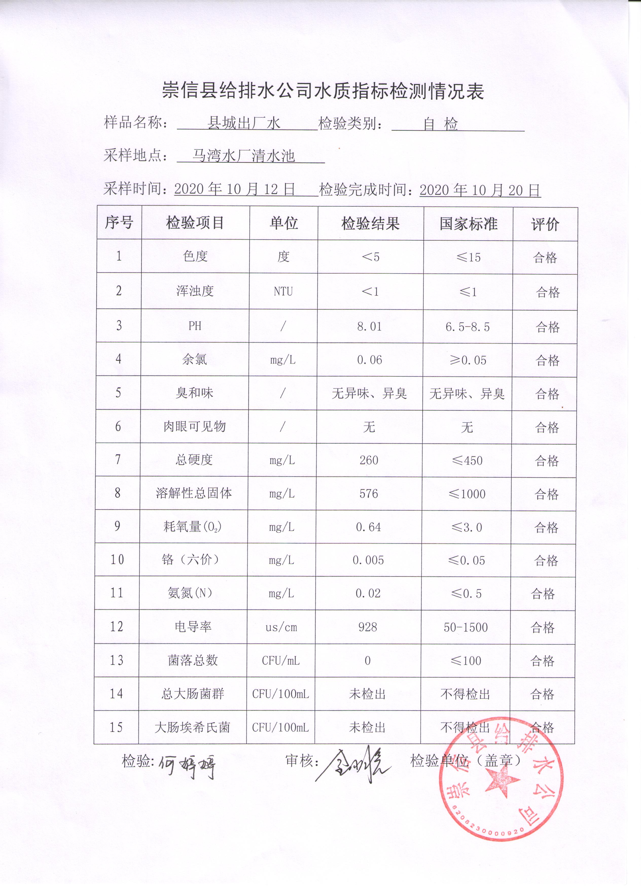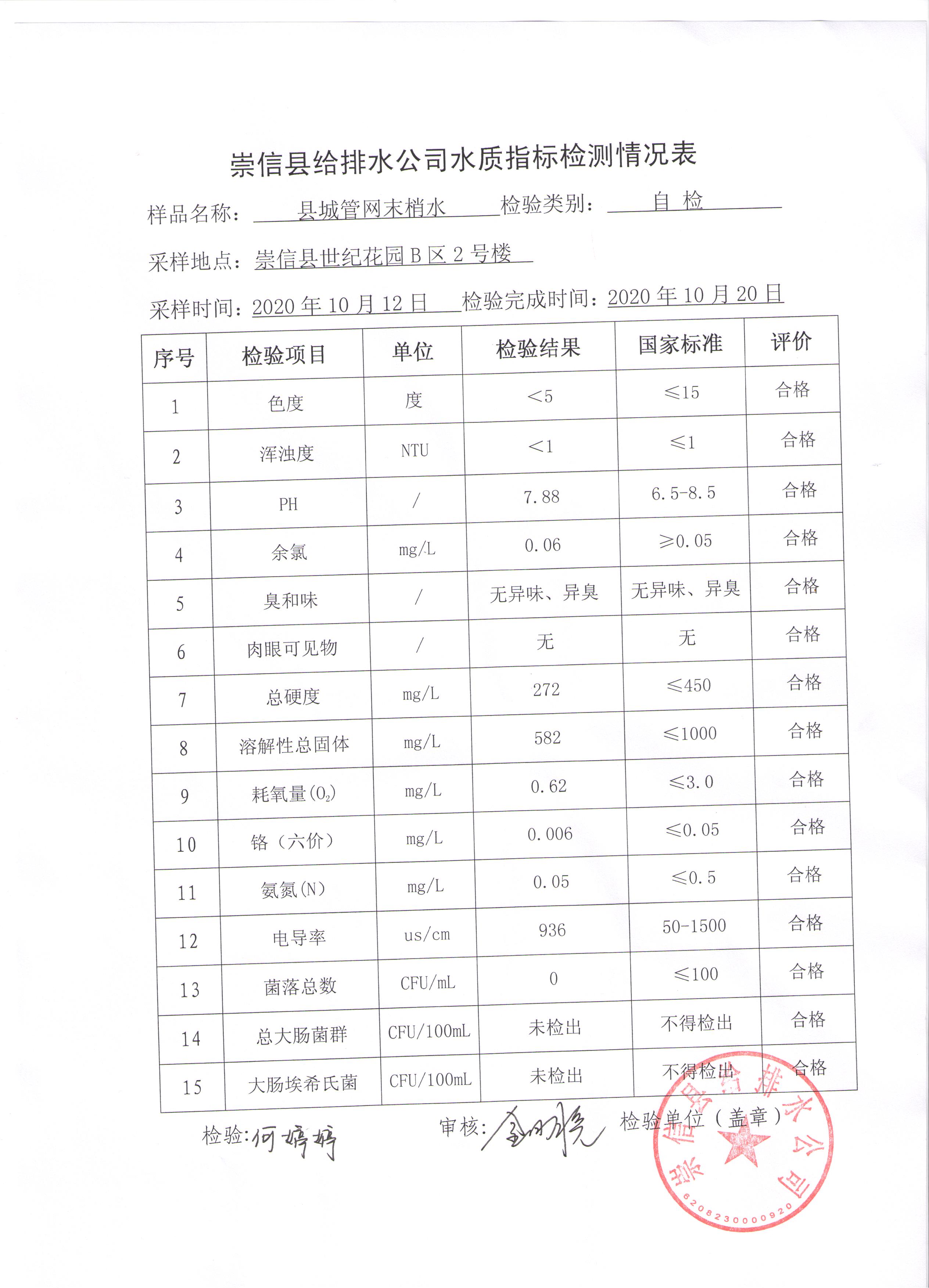 2020年10月份水质化验报告单 发文日期:2020-11-06 00:00 来源:崇信县住房和城乡建设局 作者:崇信住建局 编辑:崇信住建局 1 2 3 4 5 扫一扫在手机打开当前页 上一篇: 2020年案件信息公开表 (第三批) 下一篇: 崇信县市场监督管理局执法检查人员名册