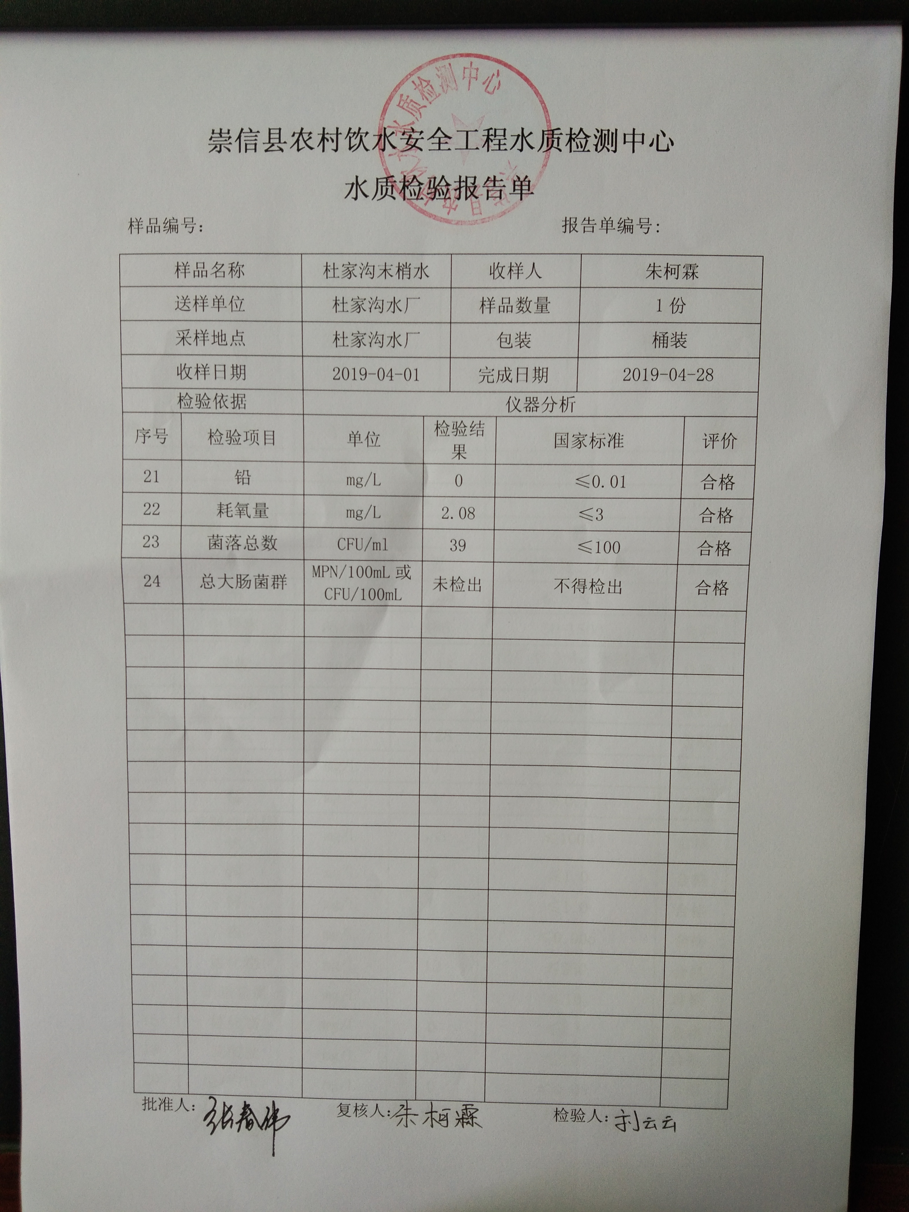 2019年4月杜家沟水厂水质检测报告 发文日期:2019-04-30 00:00 来源:崇信县水务局 作者:崇信水务局 编辑:星云科技 IMG_20190430_100340 IMG_20190430_100348 IMG_20190430_100357 IMG_20190430_100403 IMG_20190430_100411 IMG_20190430_100417 扫一扫在手机打开当前页 上一篇: 2019年4月散花沟水厂水质检测报告 下一篇: 2019年4月新窑水厂水质检测报告