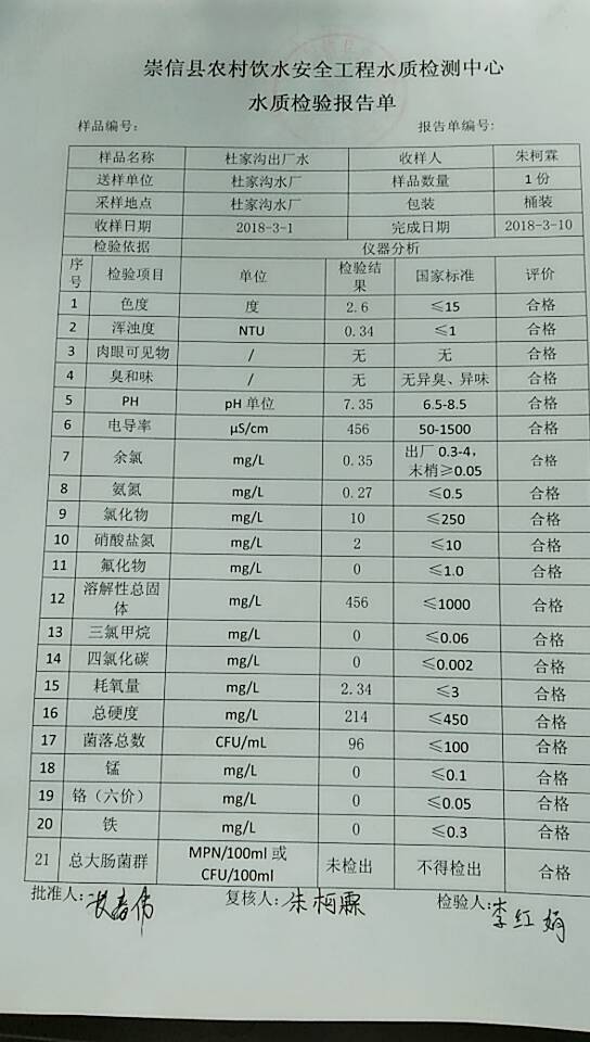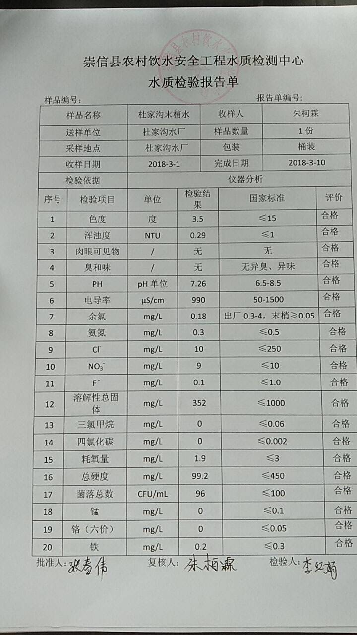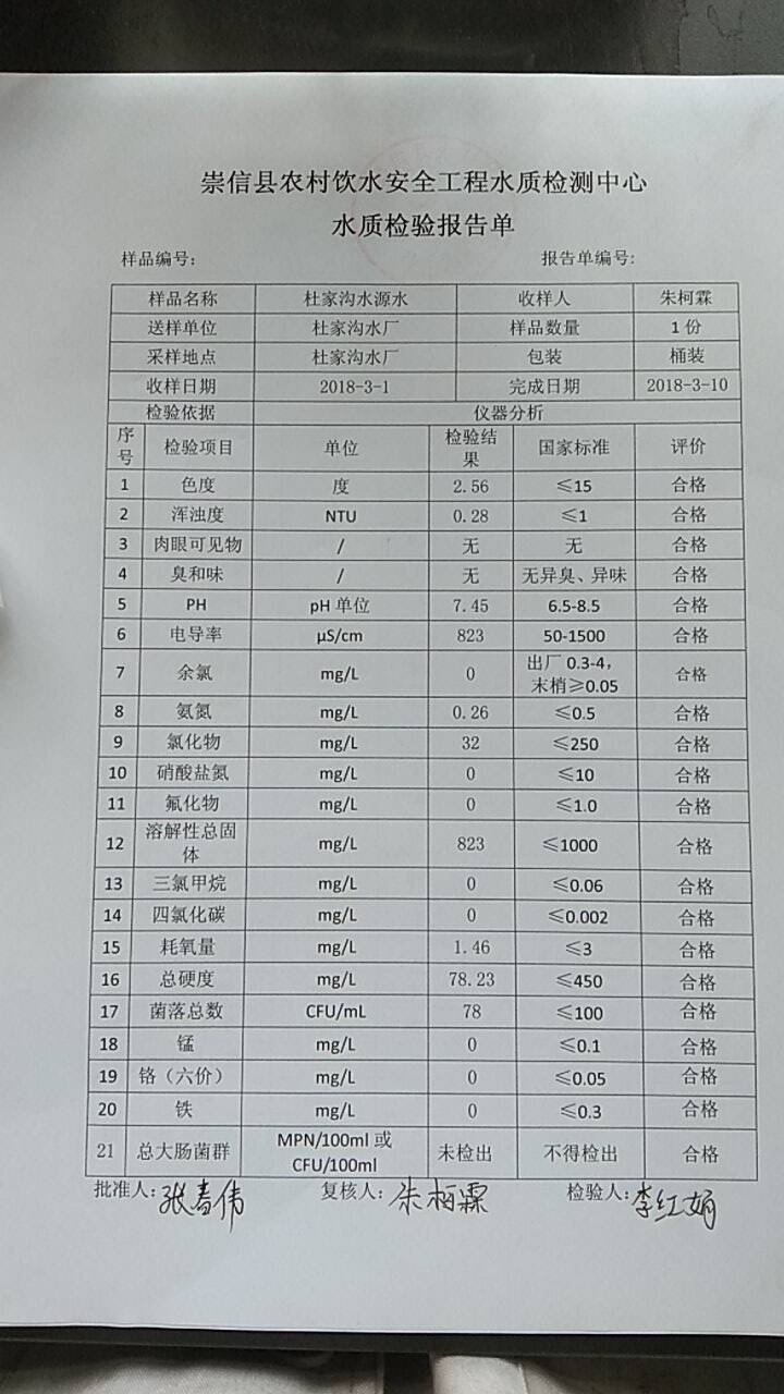 2018年杜家沟水厂3月水质检测报告单 发文日期:2018-05-25 15:54 来源:崇信县水务局 作者:崇信水务局 编辑:崇信水务局 3820E96BE5FFEB91149B0A9252ED973D 45737E1E79275D08186051EE28B2DECC 71794C5A011C8A8C854658BFB82CCE84 扫一扫在手机打开当前页 上一篇: 2018年杜家沟水厂4月水质检测报告单 下一篇: 3月份水质检查报告