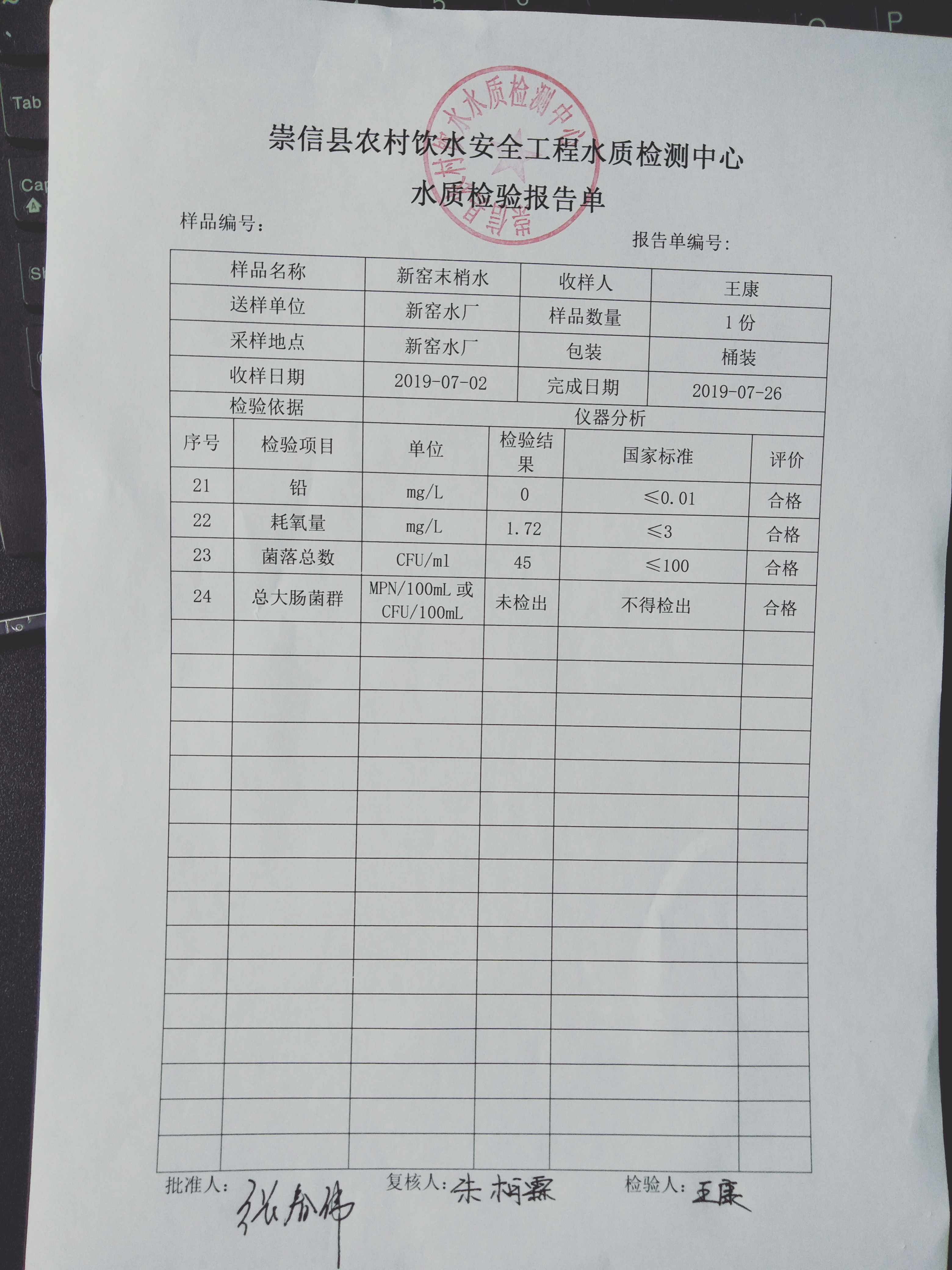2019年7月份新窑水厂水质检测报告单 发文日期:2019-08-08 00:00 来源:崇信县水务局 作者:崇信水务局 编辑:崇信水务局 1565246603264 1565246615600 扫一扫在手机打开当前页 上一篇: 2019年7月份杜家沟水厂水质检测报告单 下一篇: 公告