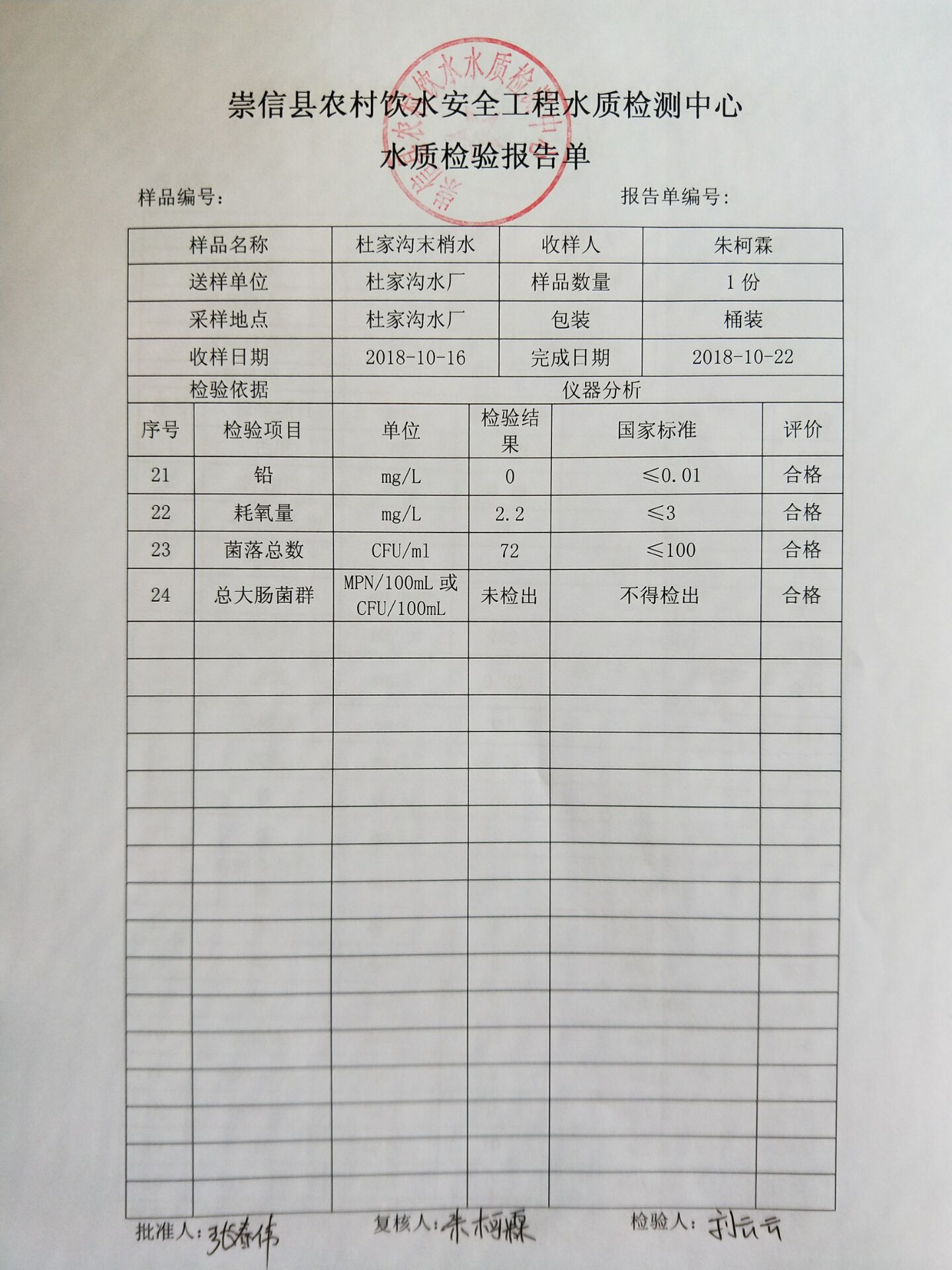 2018年杜家沟水厂10月份水质检测报告单 发文日期:2018-10-31 10:54 来源:崇信县水务局 作者:崇信水务局 编辑:崇信水务局 Cache_-7aeca8f0ea67b7bd. Cache_4c1c90aabcde5587. Cache_33c8a455b6311f0. Cache_54f93c3602690e2b. Cache_-261563a6e8a7f32a. Cache_57bf6764e7f89655. 扫一扫在手机打开当前页 上一篇: 2018年左营沟水厂10月份水质检测报告单 下一篇: 2018年新窑水厂10份水质检测报告单
