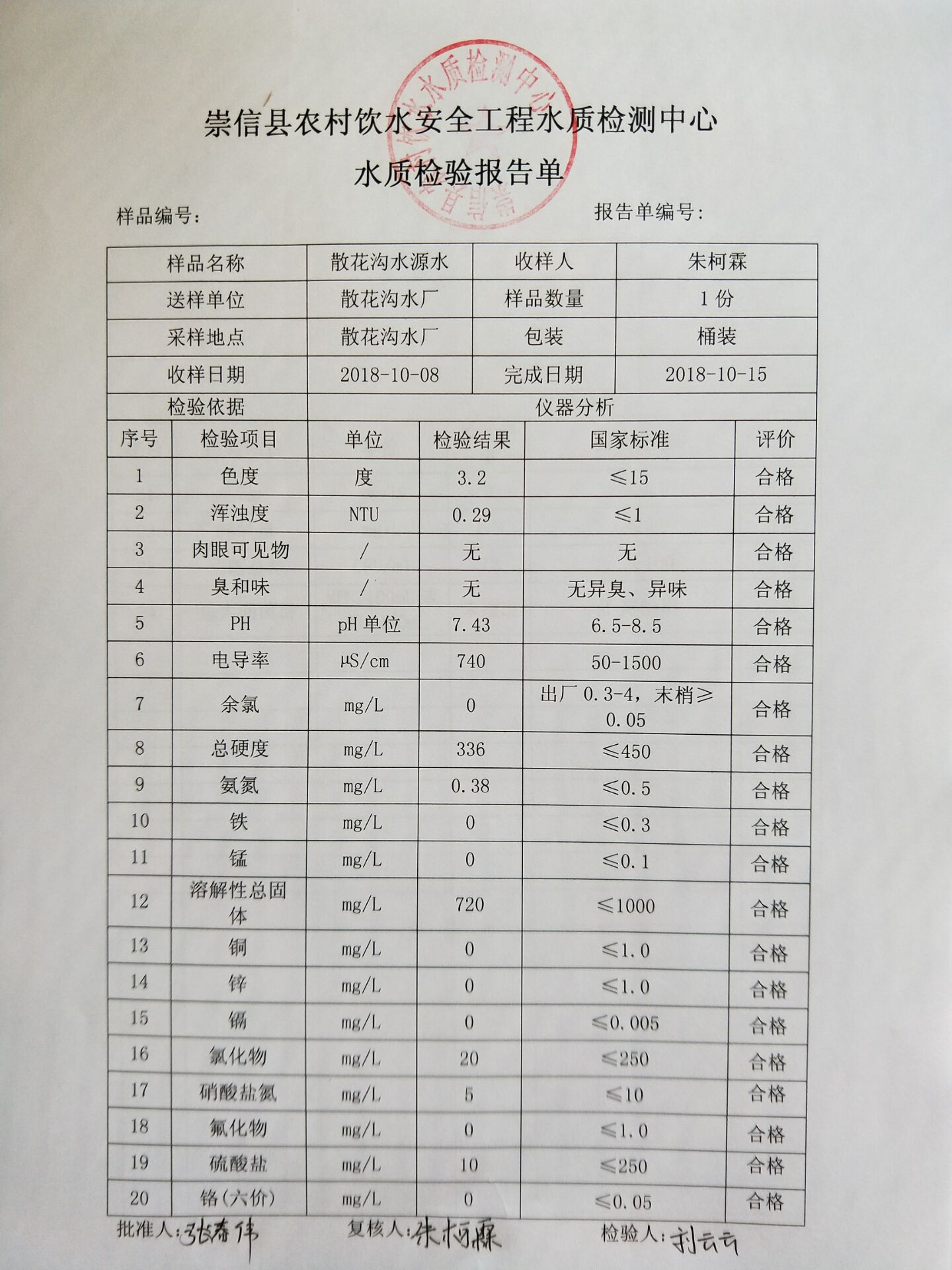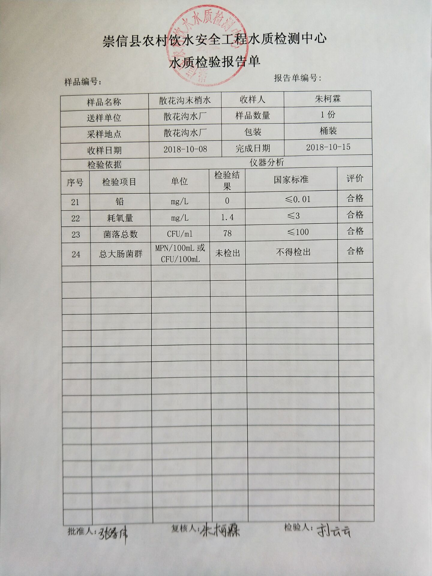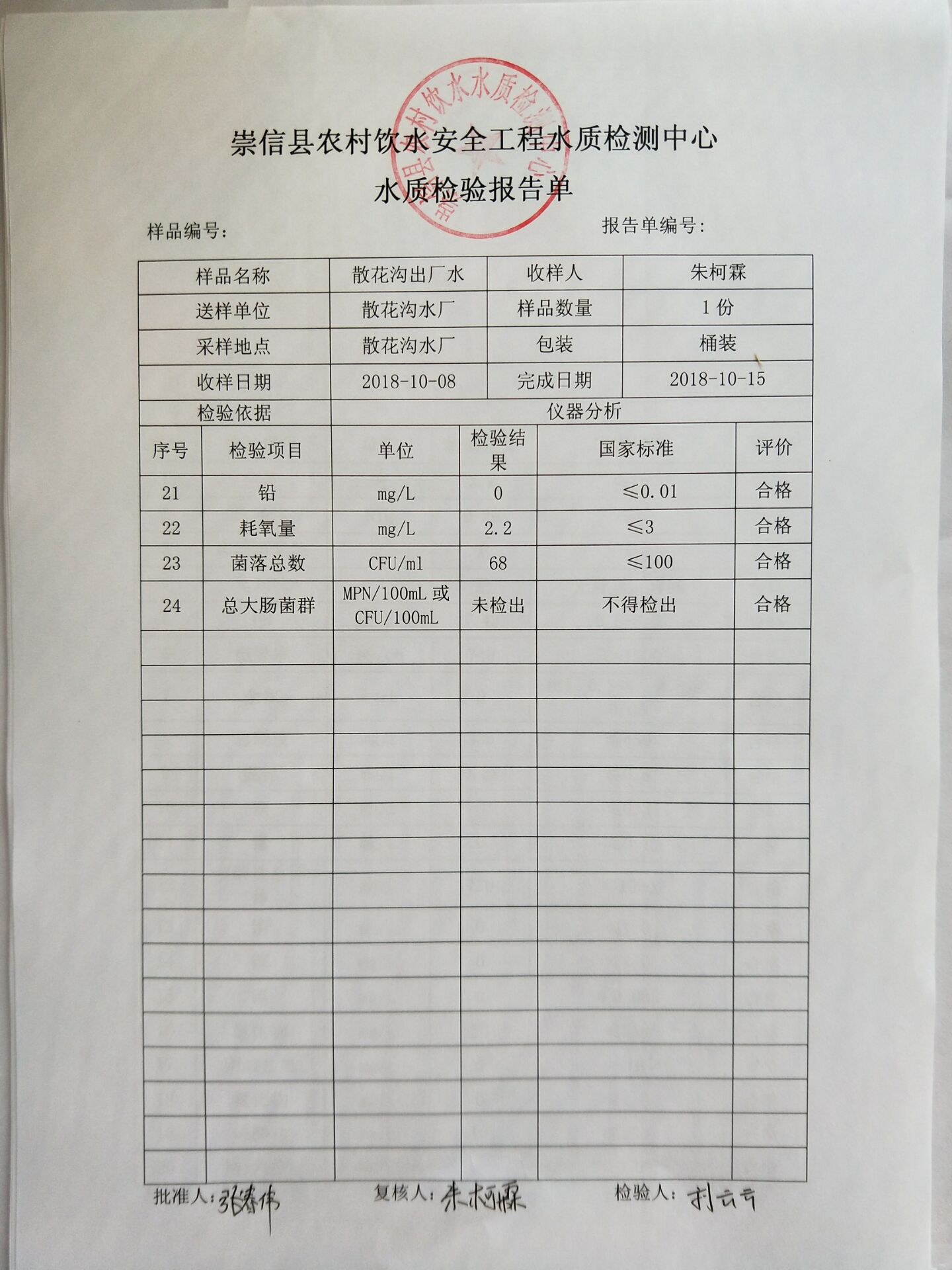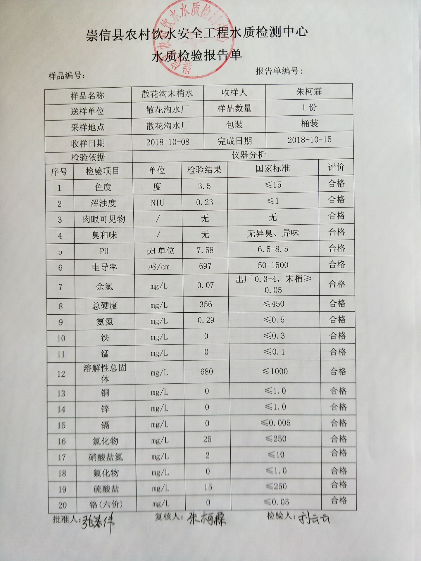 2018年散花沟水厂10月份水质检测报告单 发文日期:2018-10-31 11:07 来源:崇信县水务局 作者:崇信水务局 编辑:崇信水务局 Cache_13cc23b0f67a8944. Cache_26a4bdc2472e62a1. Cache_312b0f983fa56eec. Cache_661b21d86887afcd. Cache_-665d7930553a4030. Cache_-4723dadb636ed96c. 扫一扫在手机打开当前页 上一篇: 崇信县20108年脱贫攻坚农村饮水安全巩固提升项目进展情况公示表 下一篇: 2018年左营沟水厂10月份水质检测报告单