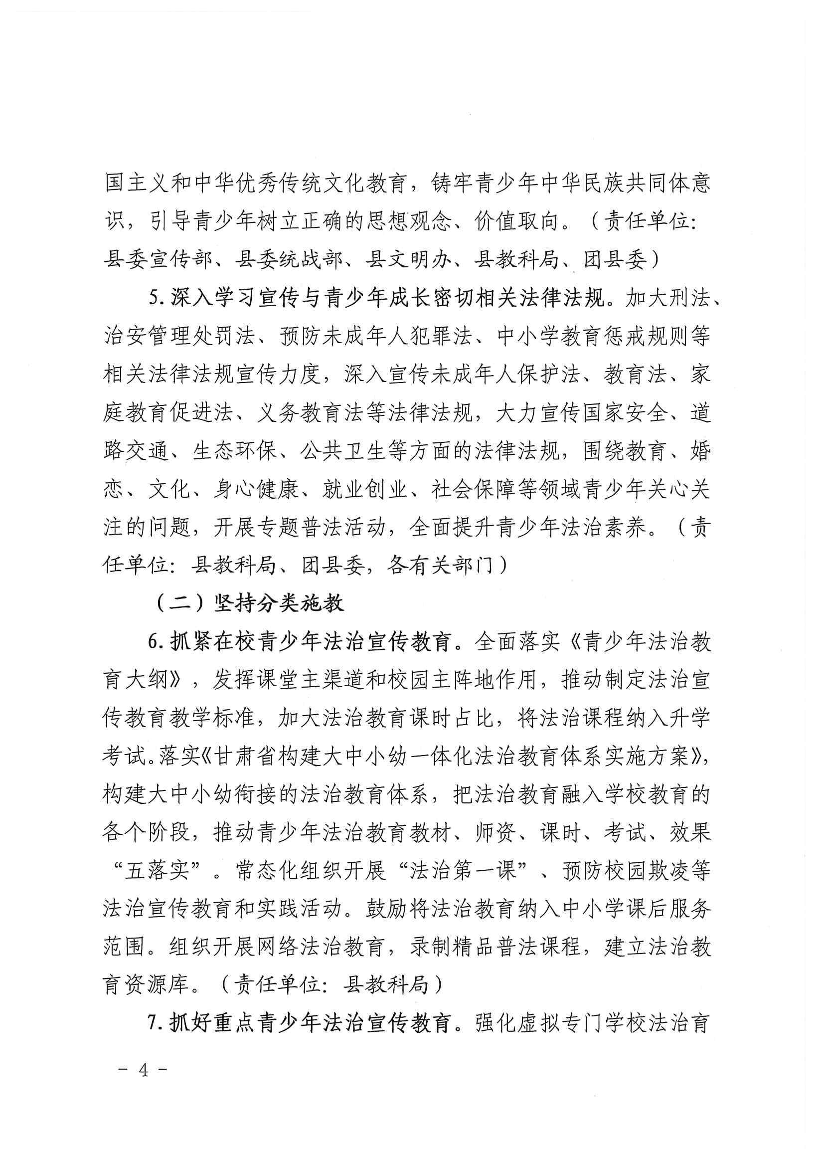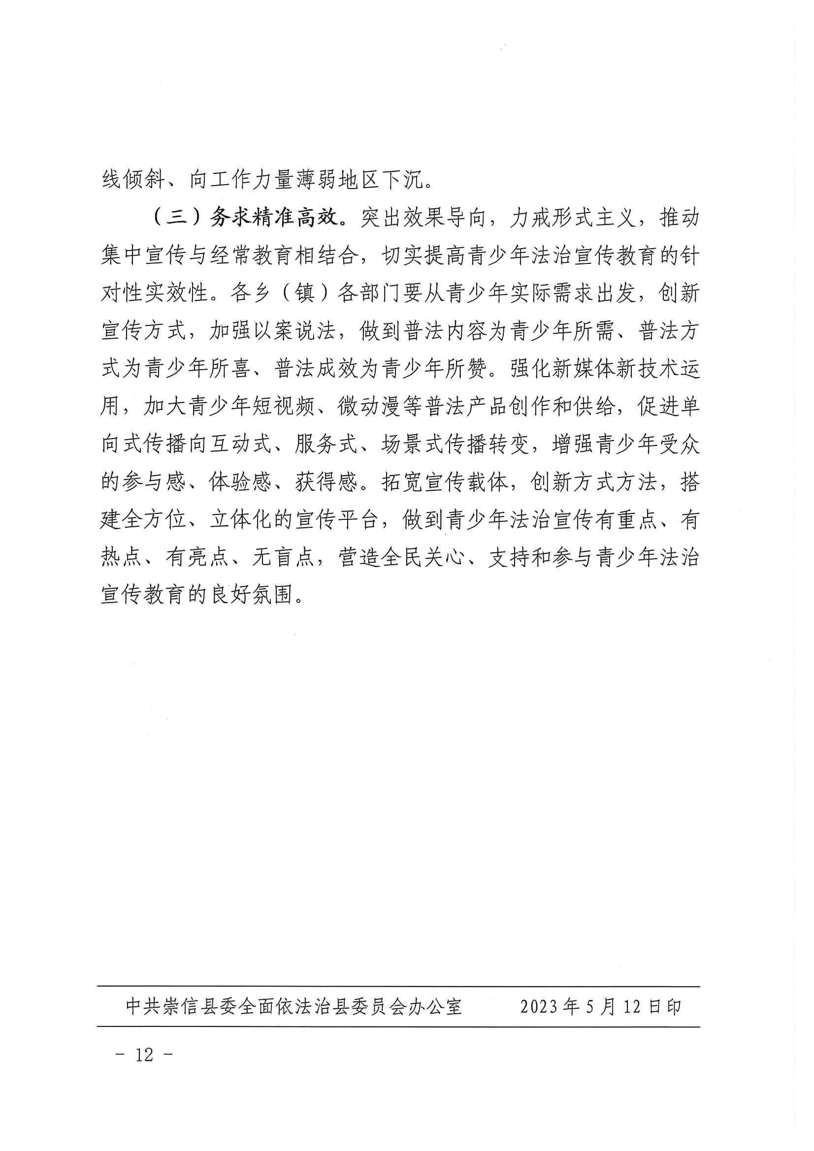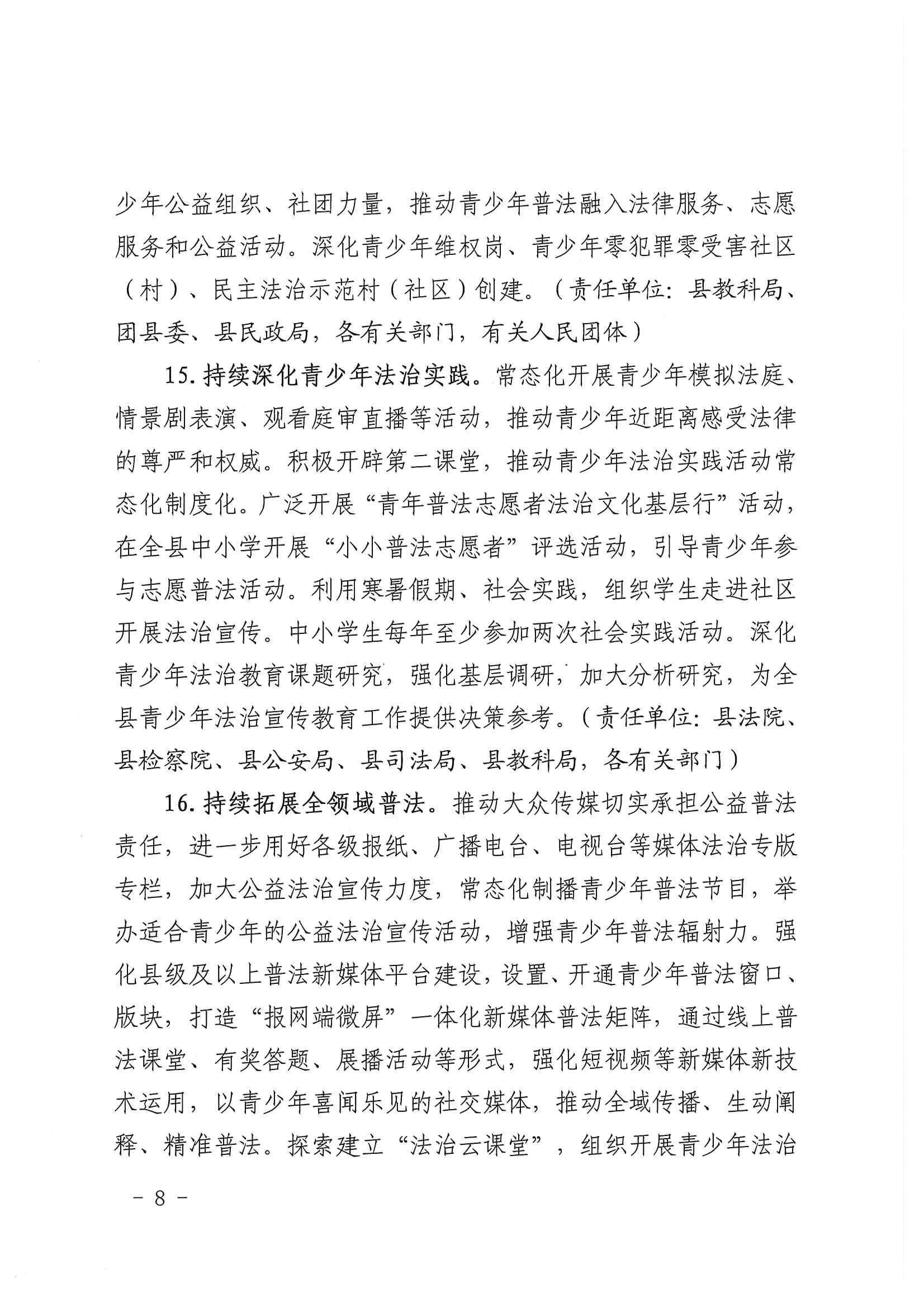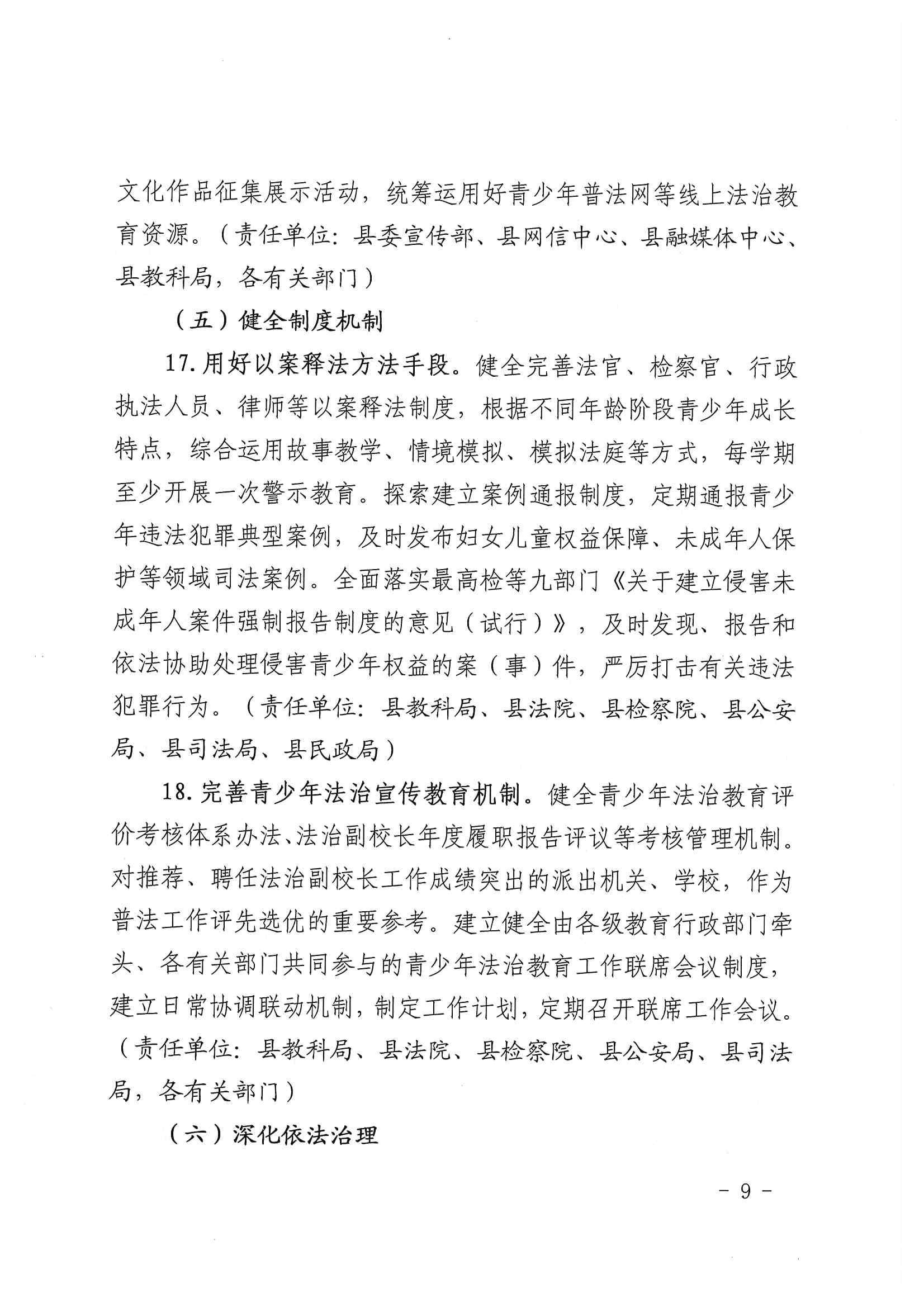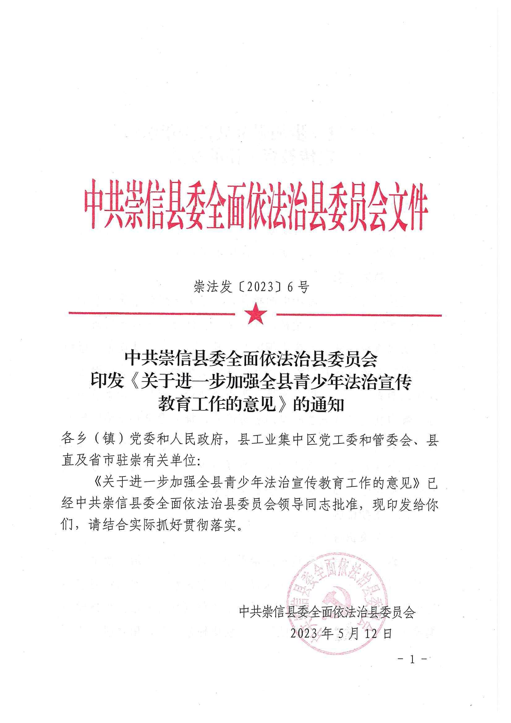 关于进一步加强青少年法治宣传教育工作的意见 发文日期:2023-05-30 10:32 来源:崇信县司法局 作者:张凡 编辑:张凡 扫一扫在手机打开当前页 上一篇: 崇信县司法局行政执法主体资格信息公示 下一篇: 2023年普法工作要点