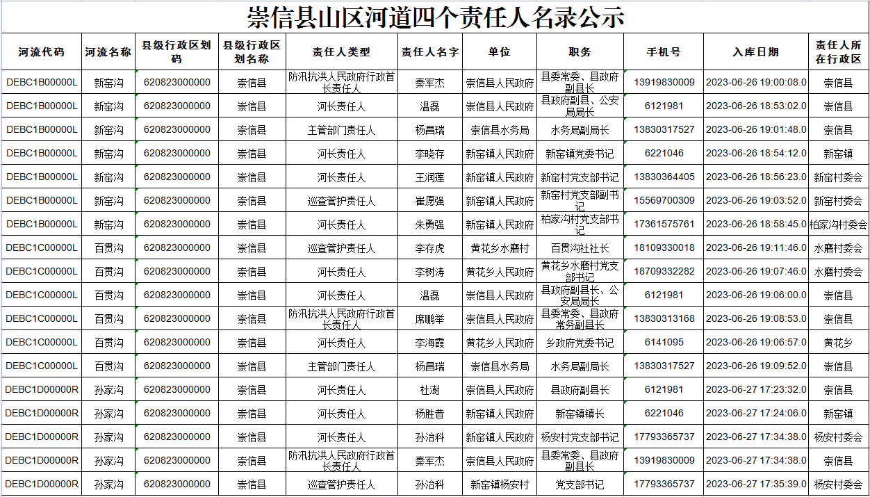 崇信县山区河道四个责任人名录公示 发文日期:2023-07-21 14:38 来源:崇信县水务局 作者:侯逾敏 编辑:侯逾敏 扫一扫在手机打开当前页 上一篇: 崇信县开展“美丽幸福河湖大家谈”进社区 主题宣讲活动 下一篇: 崇信县开展村有“规”民有“约”齐心共建幸福河活动