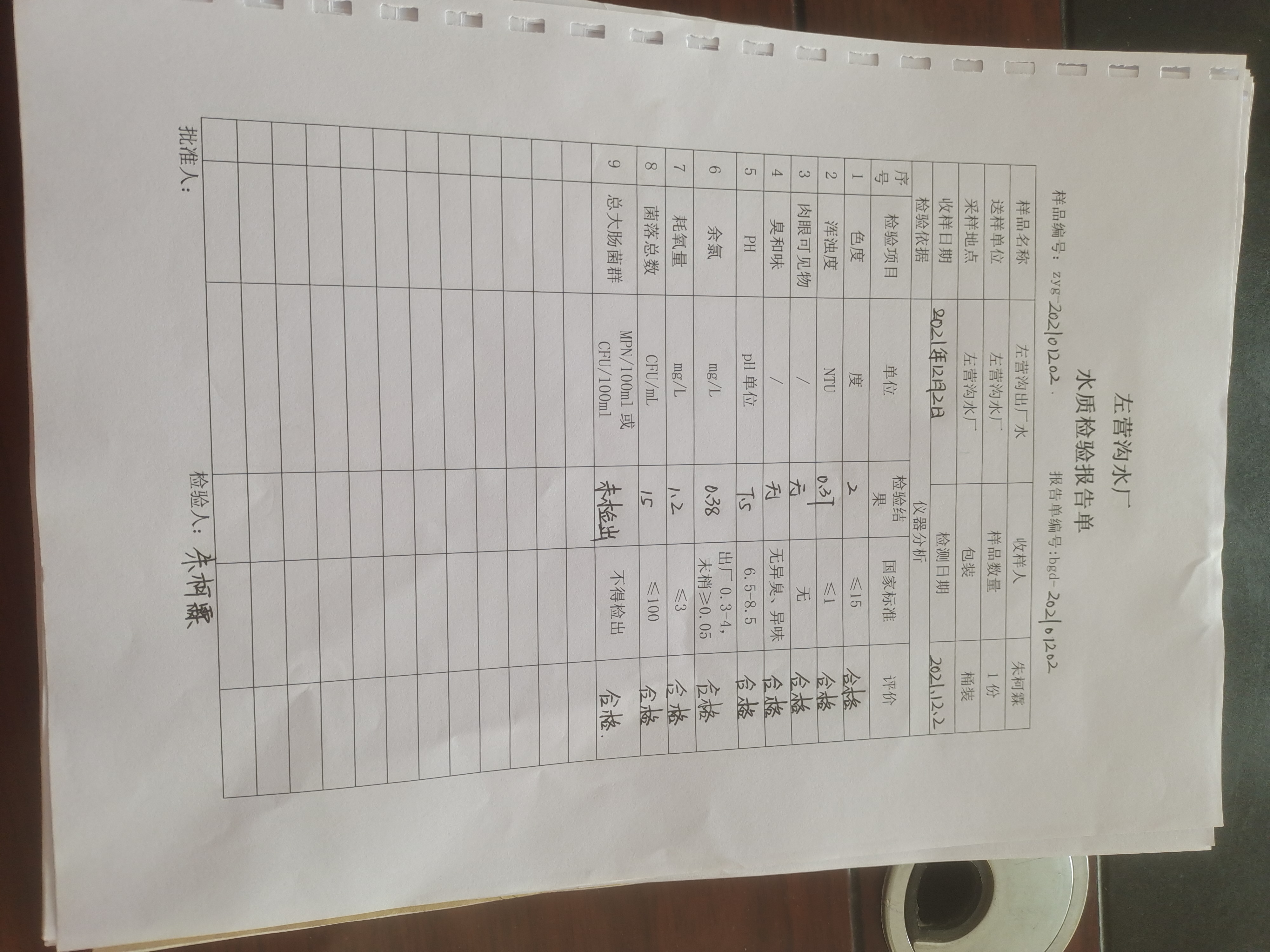 2021年12月左营沟水厂水质检测报告单 发文日期:2021-12-27 00:00 来源:崇信县水务局 作者:崇信水务局 编辑:星云科技 C:fakepathIMG_20211227_160107.jpg 扫一扫在手机打开当前页 上一篇: 2021年12月左营沟水厂水质检测报告单 下一篇: 2021年12月份左营沟水厂水质检测报告单