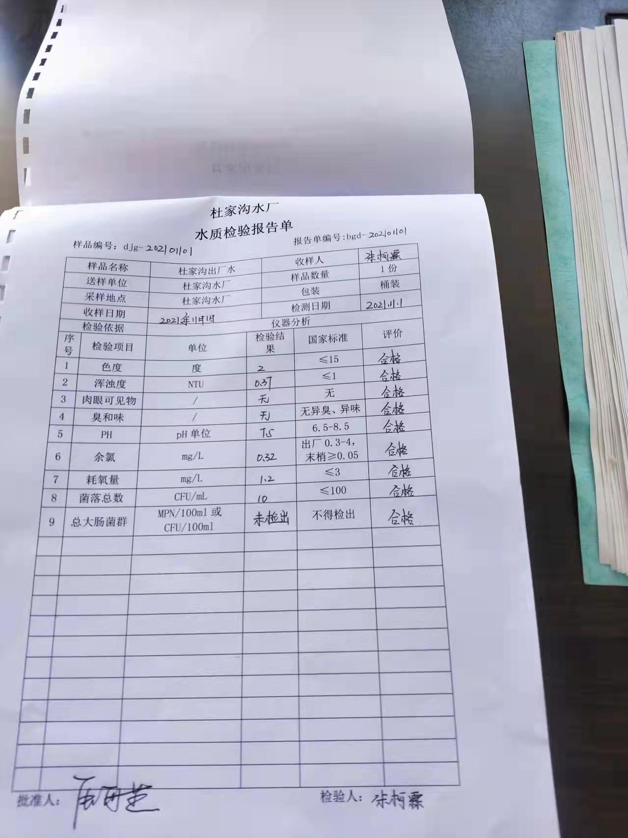2021年杜家沟水厂11月份水质检测报告单 发文日期:2021-11-12 00:00 来源:崇信县水务局 作者:崇信水务局 编辑:星云科技 C:fakepath09385ef5dde8e73dfcc4c6d557b2c82.jpg 扫一扫在手机打开当前页 上一篇: 崇信县汭河中型灌区续建配套与节水改造项目完成情况公示 下一篇: 2021年杜家沟水厂11月份水质检测报告单