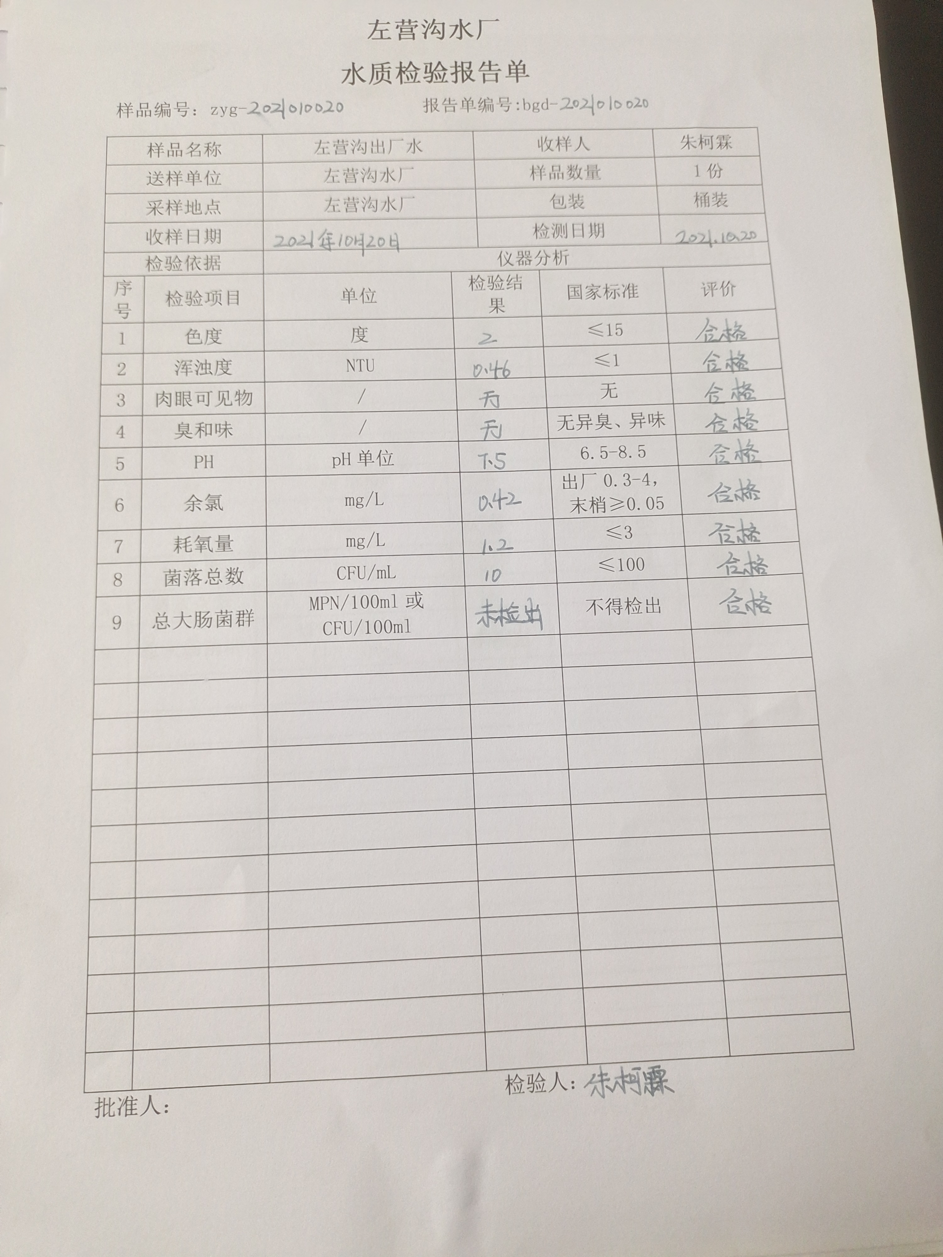 左营沟水厂10月份水质检测报告单 发文日期:2021-10-27 00:00 来源:崇信县水务局 作者:崇信水务局 编辑:星云科技 C:fakepathIMG_20211027_164358.jpg 扫一扫在手机打开当前页 上一篇: 左营沟水厂10月份水质检测报告单 下一篇: 左营沟水厂9月份水质检测报告单