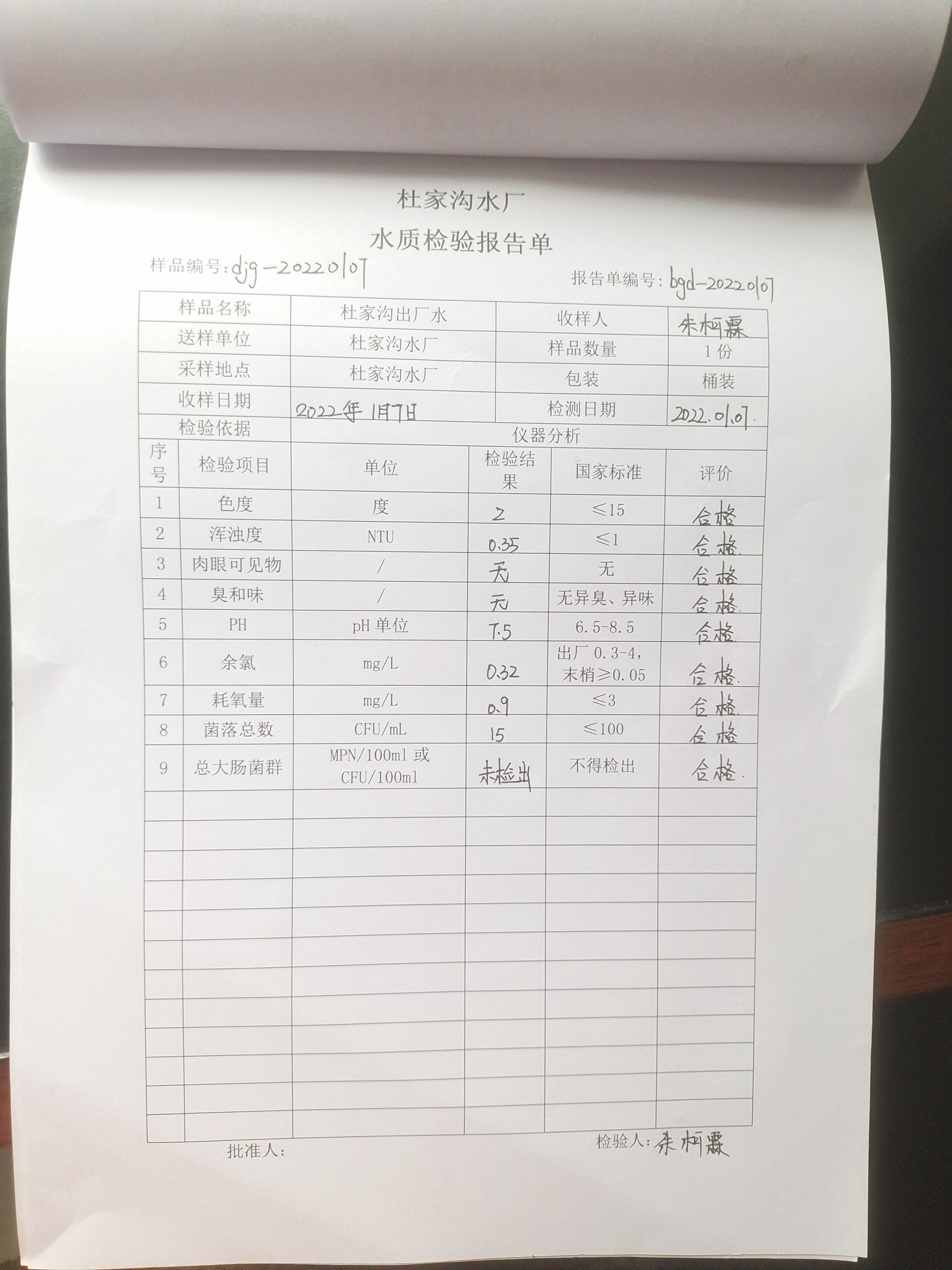 2022年杜家沟水厂1月份水质检测报告单 发文日期:2022-01-07 00:00 来源:崇信县水务局 作者:崇信水务局 编辑:星云科技 C:fakepathIMG_20220107_154656.jpg 扫一扫在手机打开当前页 上一篇: 2021年12月杜家沟水厂水质检测报告单 下一篇: 2021年杜家沟水厂12月份水质检测报告单