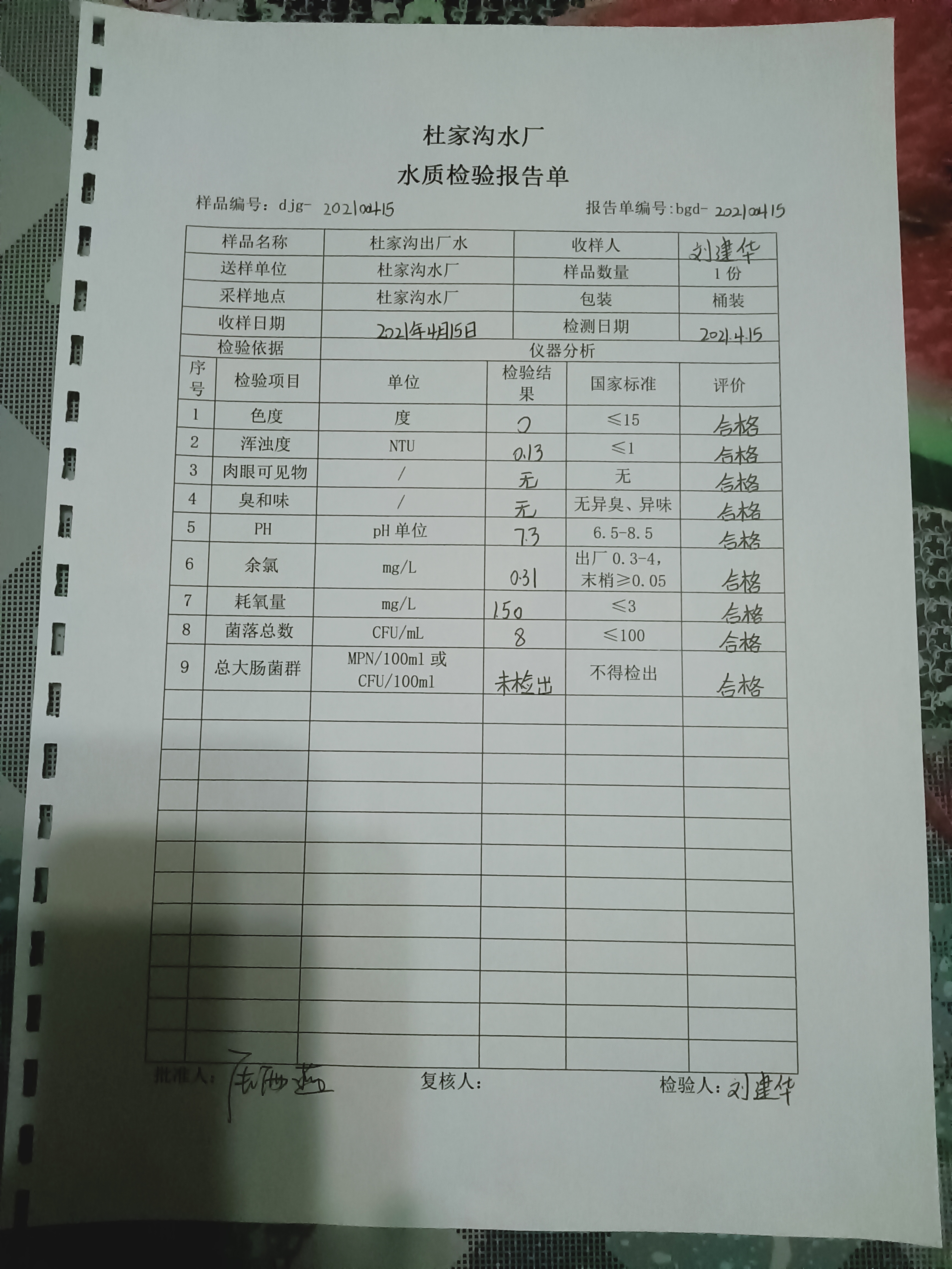 杜家沟水厂4月份水质检测报告单 发文日期:2021-08-23 00:00 来源:崇信县水务局 作者:崇信水务局 编辑:星云科技 C:fakepathQQ图片20210823154638.jpg 扫一扫在手机打开当前页 上一篇: 杜家沟水厂1月份水质检测报告单 下一篇: 杜家沟水厂1月份水质检测报告单