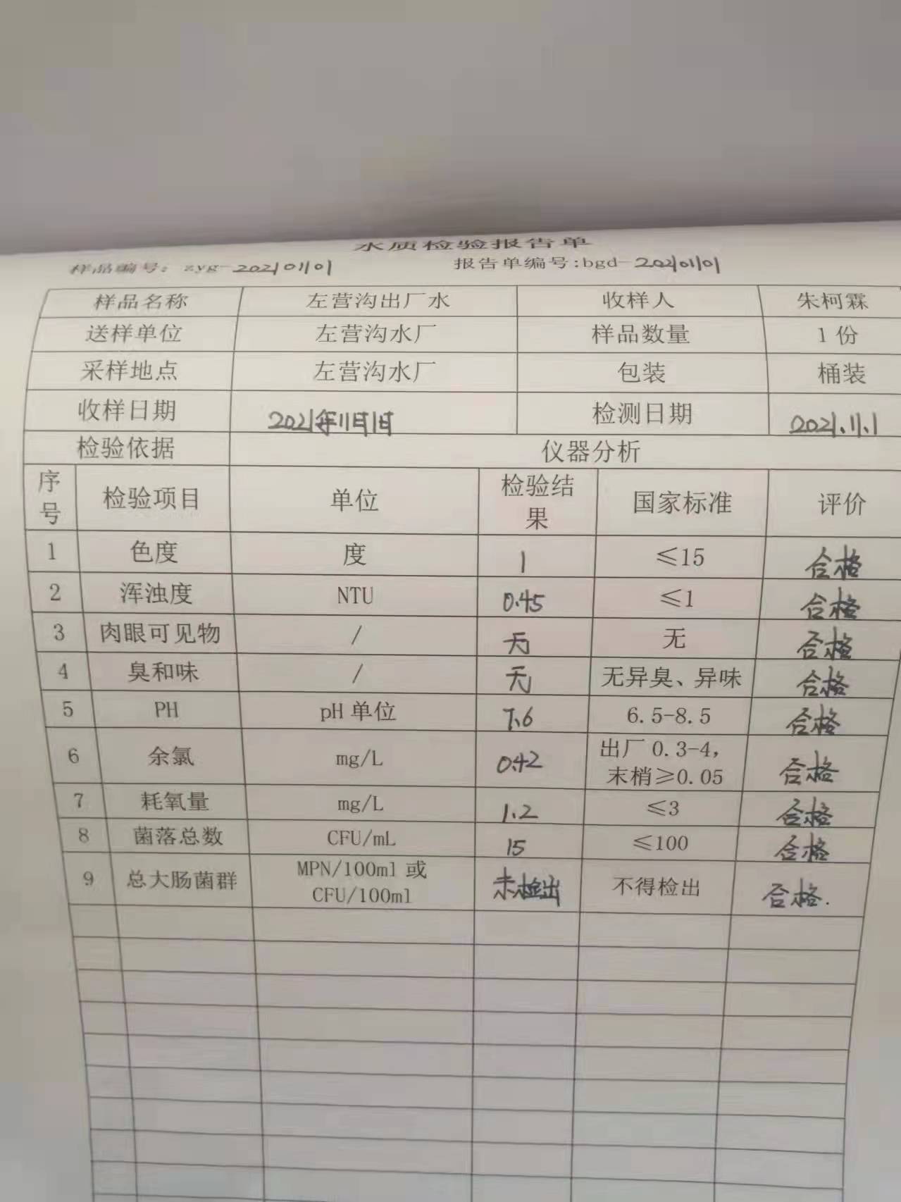 2021年左营沟水厂11月水质检测报告单 发文日期:2021-11-12 00:00 来源:崇信县水务局 作者:崇信水务局 编辑:星云科技 C:fakepathc60e687a03e083ebb8e95f2aaef0116.jpg 扫一扫在手机打开当前页 上一篇: 2021年左营沟水厂水质检测报告单 下一篇: 崇信县河道采砂许可证