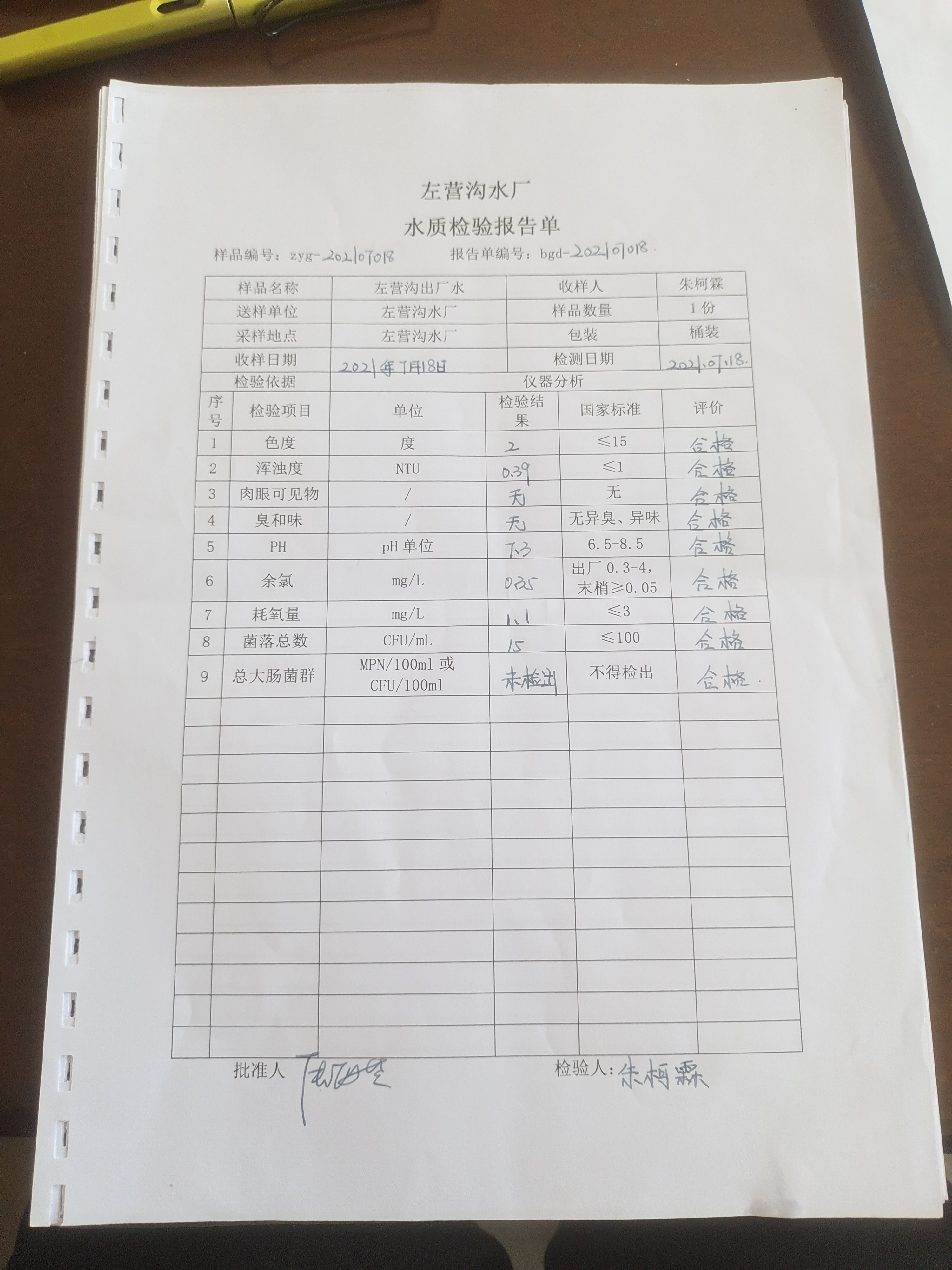 2021年左营沟水厂水质检测报告单 发文日期:2021-08-24 00:00 来源:崇信县水务局 作者:崇信水务局 编辑:星云科技 C:fakepathIMG_20210824_115514.jpg 扫一扫在手机打开当前页 上一篇: 2021年左营沟水厂6月份水质检测报告单 下一篇: 关于注销取水许可证的公示