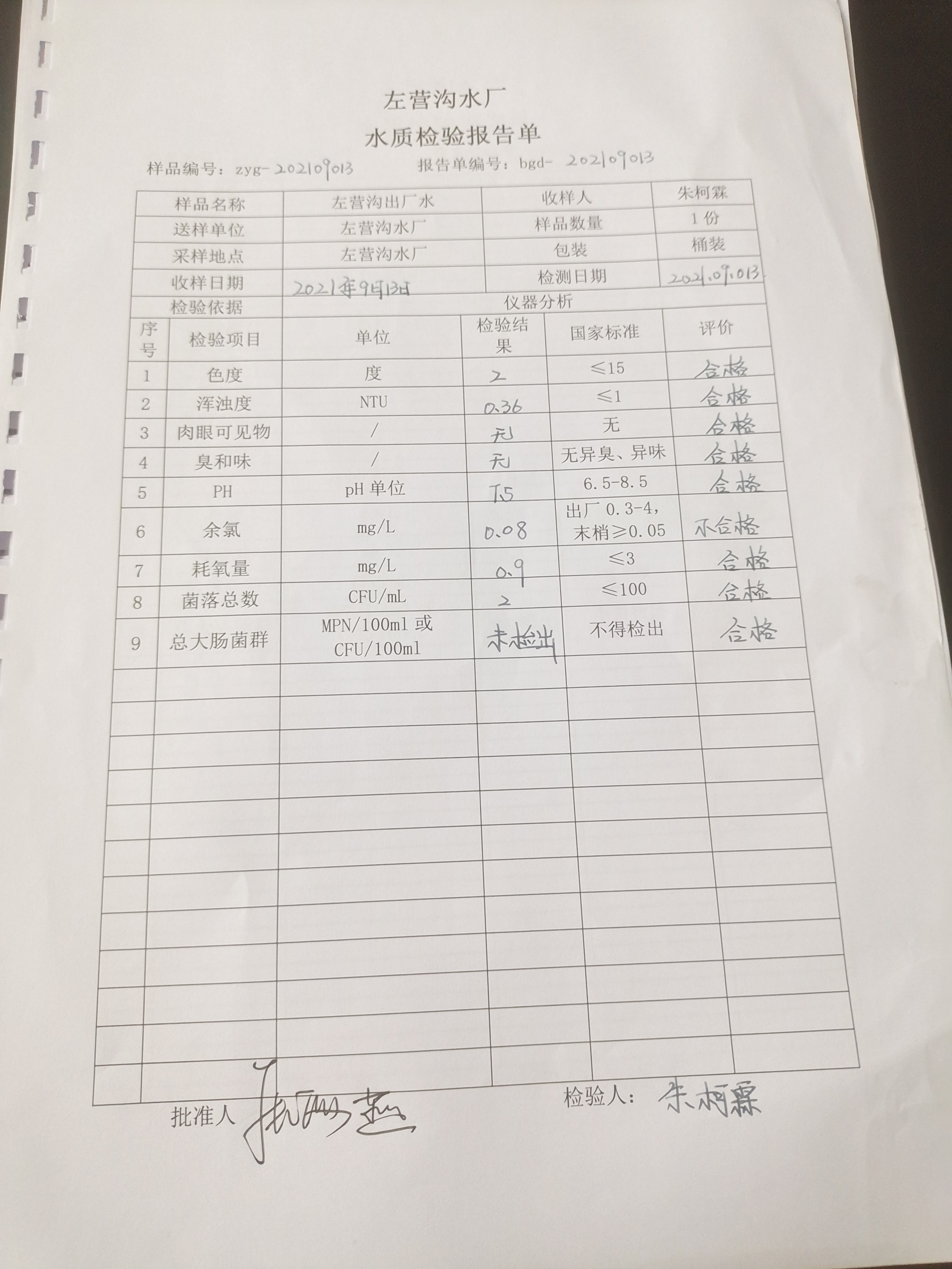 左营沟水厂9月份水质检测报告单 发文日期:2021-10-27 00:00 来源:崇信县水务局 作者:崇信水务局 编辑:星云科技 C:fakepathIMG_20211027_162848.jpg 扫一扫在手机打开当前页 上一篇: 崇信县取水许可信息台账汇总表 下一篇: 杜家沟水厂9月份水质检测报告单