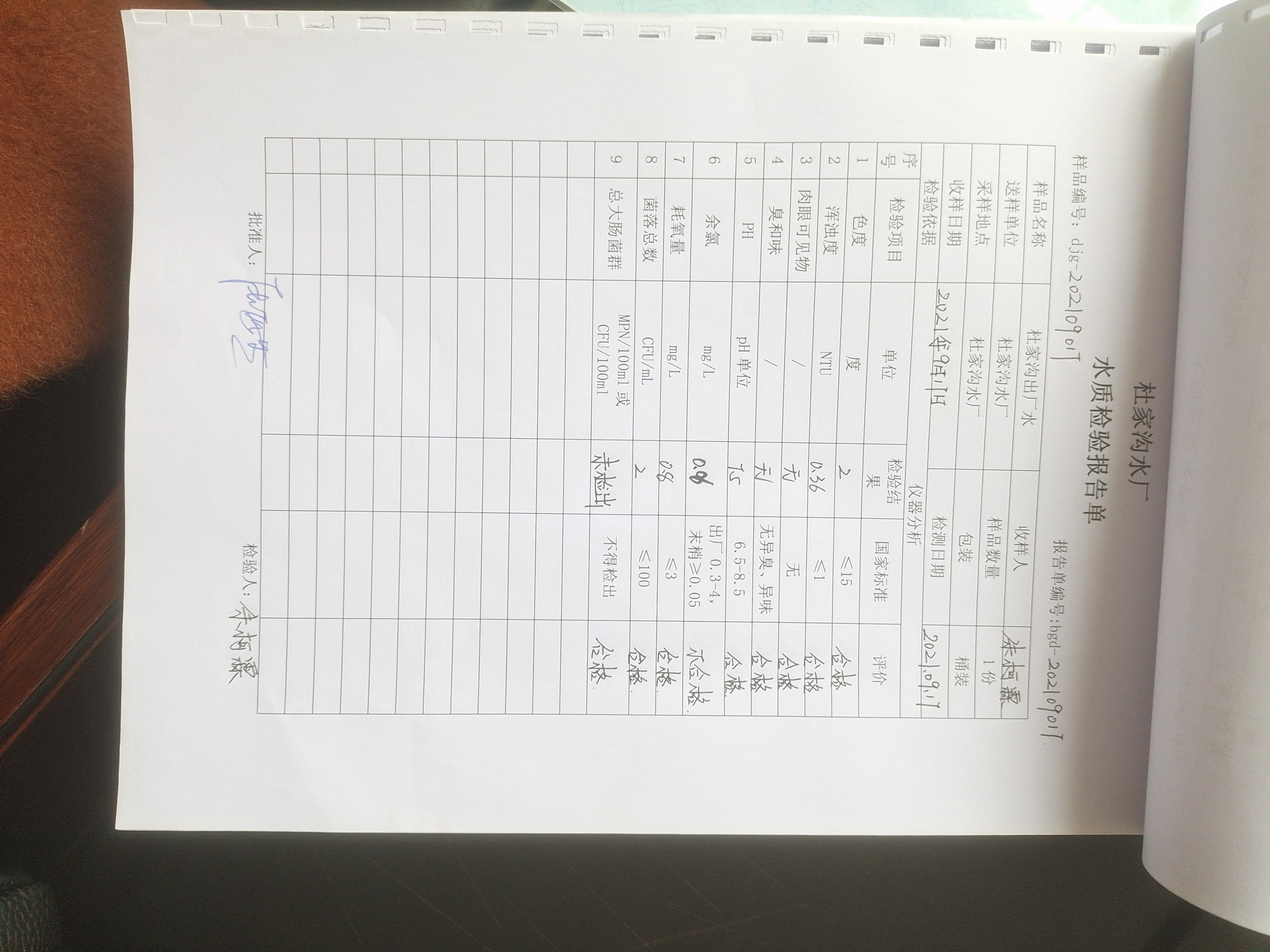 杜家沟水厂9月份水质检测报告单 发文日期:2021-10-27 00:00 来源:崇信县水务局 作者:崇信水务局 编辑:星云科技 C:fakepathIMG_20211027_154345.jpg 扫一扫在手机打开当前页 上一篇: 左营沟水厂9月份水质检测报告单 下一篇: 左营沟水厂10月份水质检测报告单