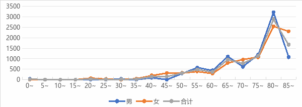 按发病年龄分析,男女性不同年龄组发病趋势基本一致,全癌种的发病率在0-44岁年龄组相对较低,从45-49岁年龄组开始显著增加,在80-84岁年龄组达到峰值,见图7。