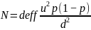 置信水平取95%(双侧),相应的u=1.96;概率p取全国糖尿病患病率9.7%;设计效率deff值取为3;相对误差r=20%,d=20%×9.7%。
