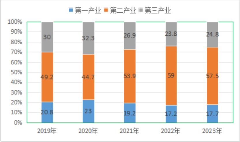图22019—2023年三次产业增加值占地区生产总值比重11