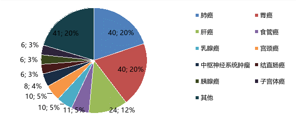5 | 中枢神经系统肿瘤 | 7 | 13.44 | 6.09 | 5 | 肝癌 | 8 | 16.47 | 7.77 |