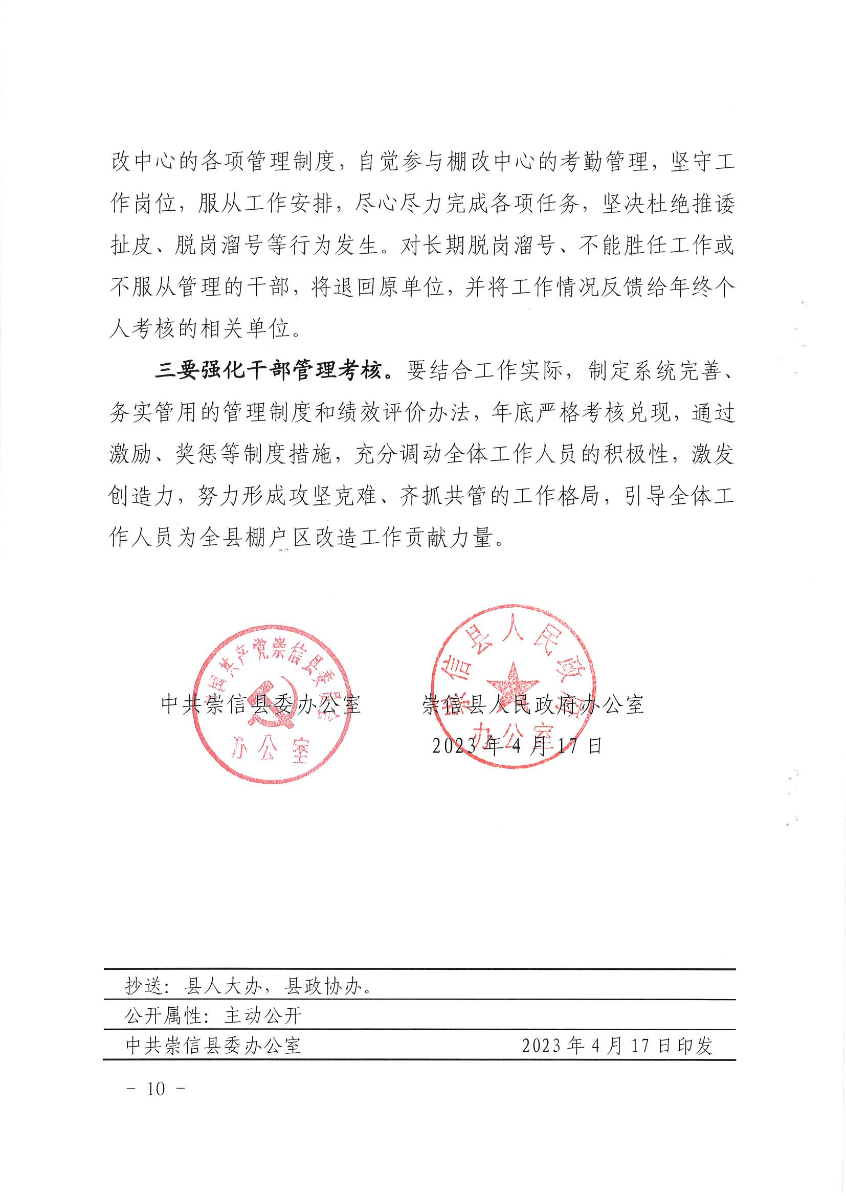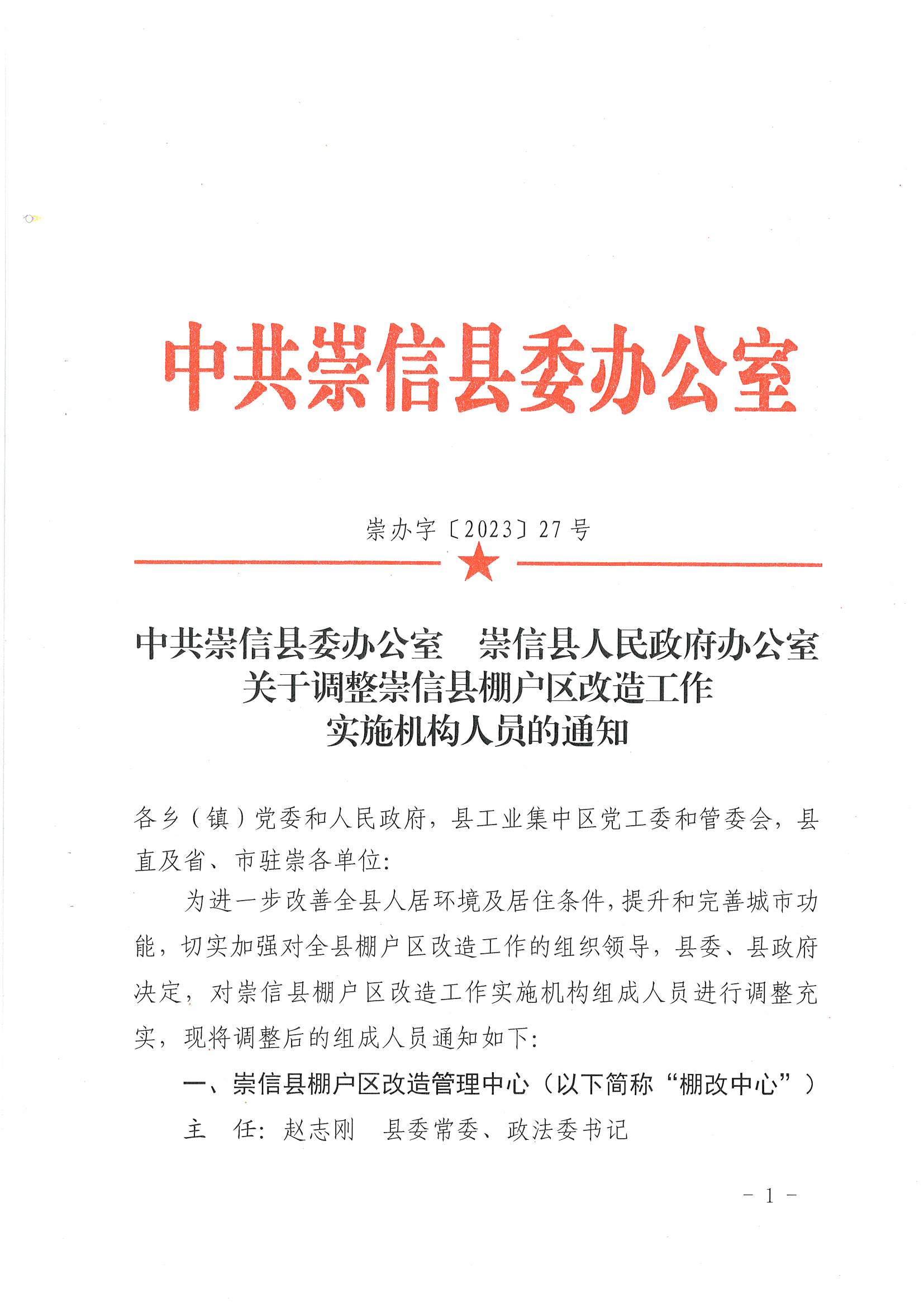 关于调整崇信县棚户区改造工作实施机构人员的通知 发文日期:2023-04-23 16:56 来源:崇信县住建局 作者:朱晶 编辑:朱晶 扫一扫在手机打开当前页 上一篇: 崇信县住房和城乡建设局 崇信县发展和改革局 崇信县财政局 关于印发《崇信县城市危旧房摸底调查工作方案》的通知 下一篇: 关于印发崇信县2022年9.18防空警报试鸣暨宣传活动实施方案的通知