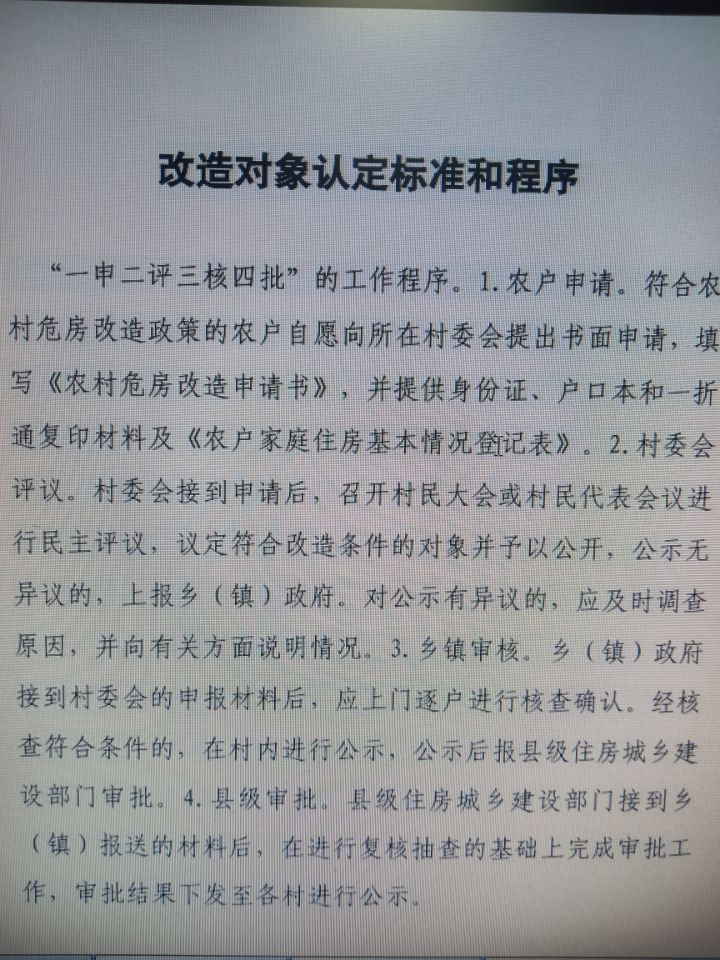 农村危房改造对象认定及申请程序 发文日期:2020-09-28 00:00 来源:崇信县住房和城乡建设局 作者:崇信住建局 编辑:崇信住建局 农村危房改造对象认定及申请程序 扫一扫在手机打开当前页 上一篇: 2018年棚户区改造实施方案 下一篇: 崇信县2020年第三季度城镇低收入家庭租赁补贴信息公示